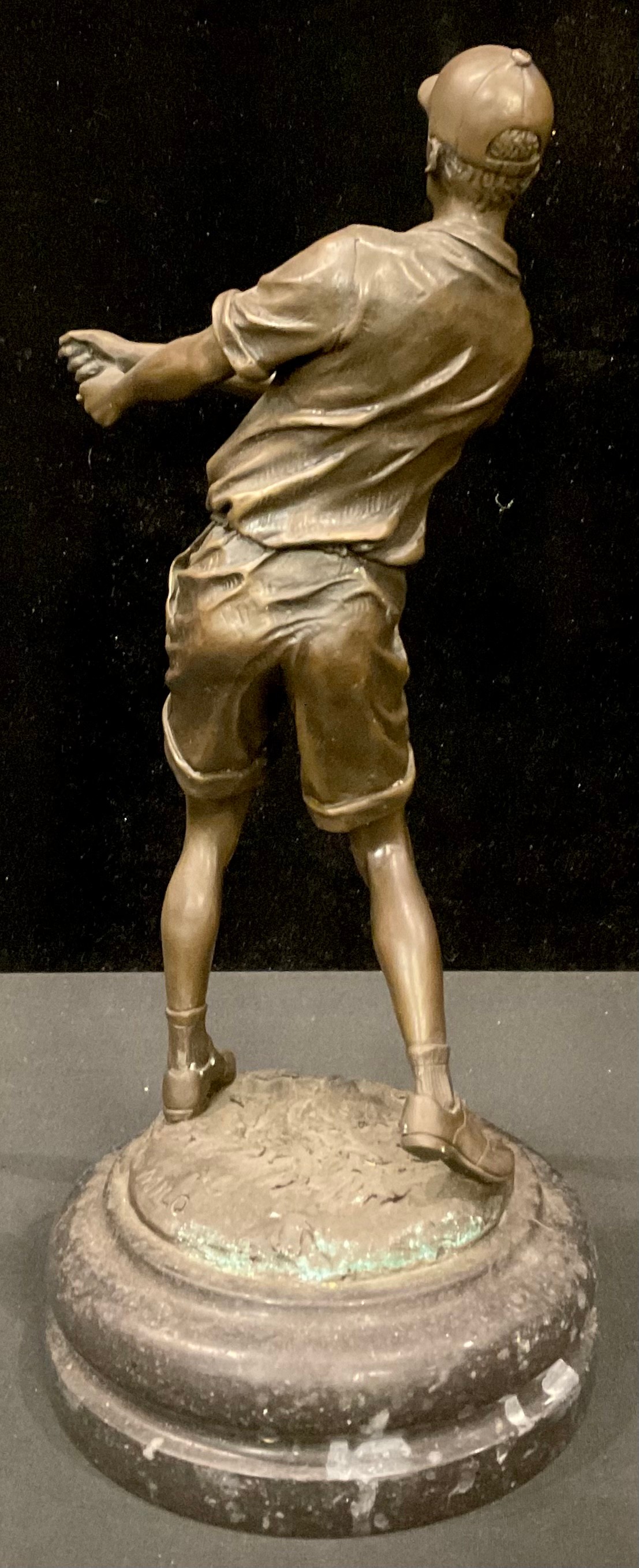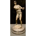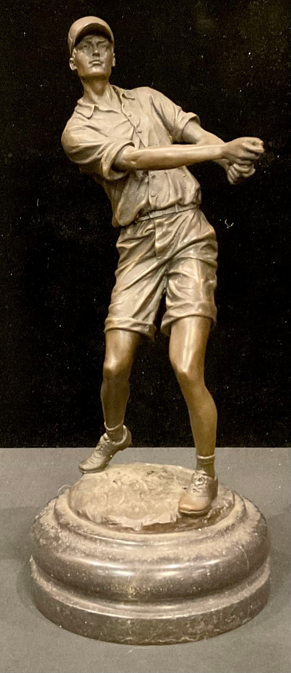A bronze figure of a golfer, after Milo, lacking club, 33.5cm high