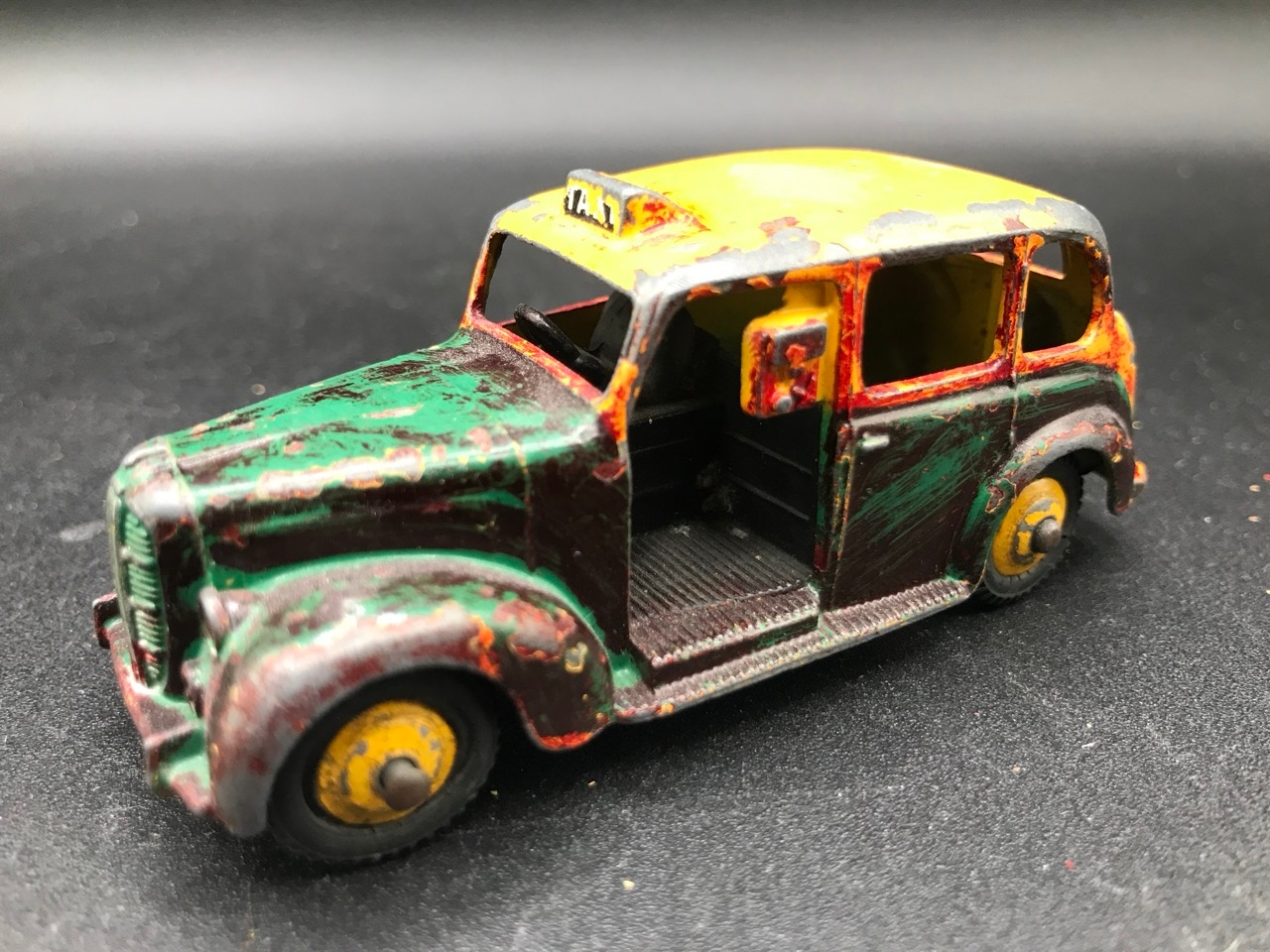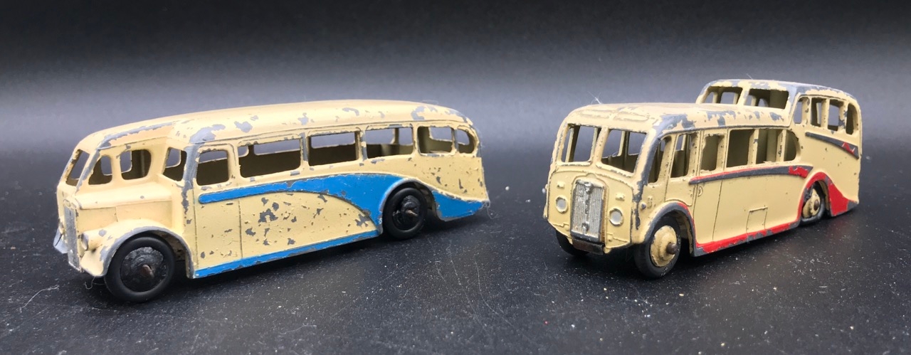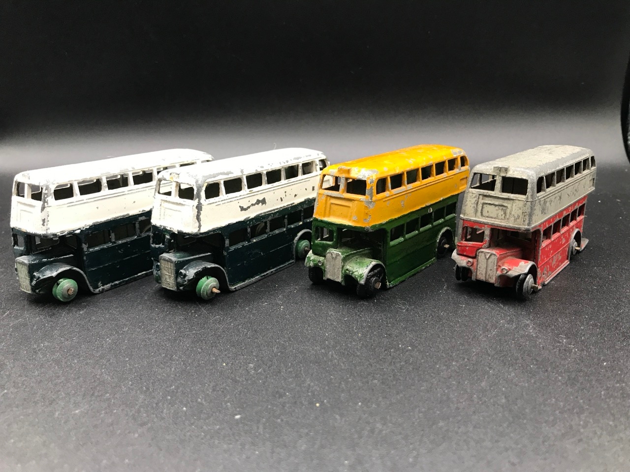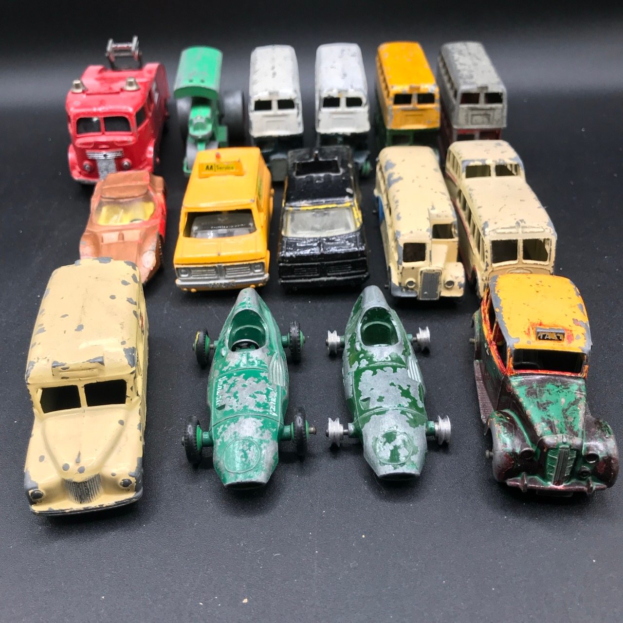 15 Dinky Die-cast Vehicles for Restoration, includes Dinky 252-G-2 Daimler Ambulance, 254 Austin Taxi, Two 239 Vanwall, Aveling Barford Road Roller, Four Double Decker Buses, Observation Coach, 29e Half Cab Coach Cream/Blue, Two Dinky Bedford Vans one re-painted and Dinky SuperToys Fire Engine 955 without ladder, 217 Alfar Romeo - Poor (15) 2000g