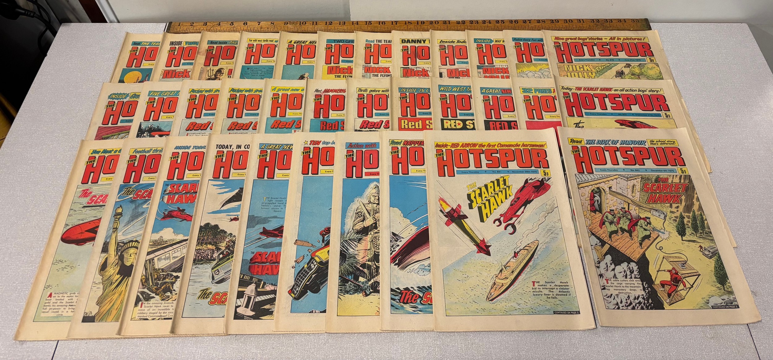 34 issues of Hotspur comics from March 1975- Dec 1975.
