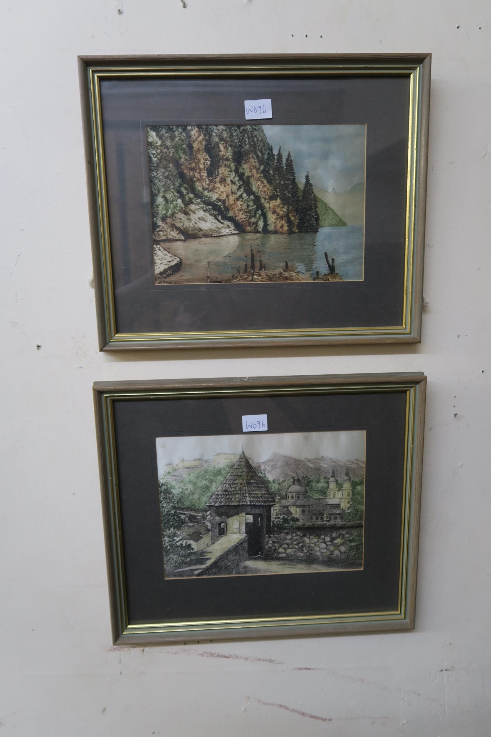 A lot of two framed pictorial silk prints (2)