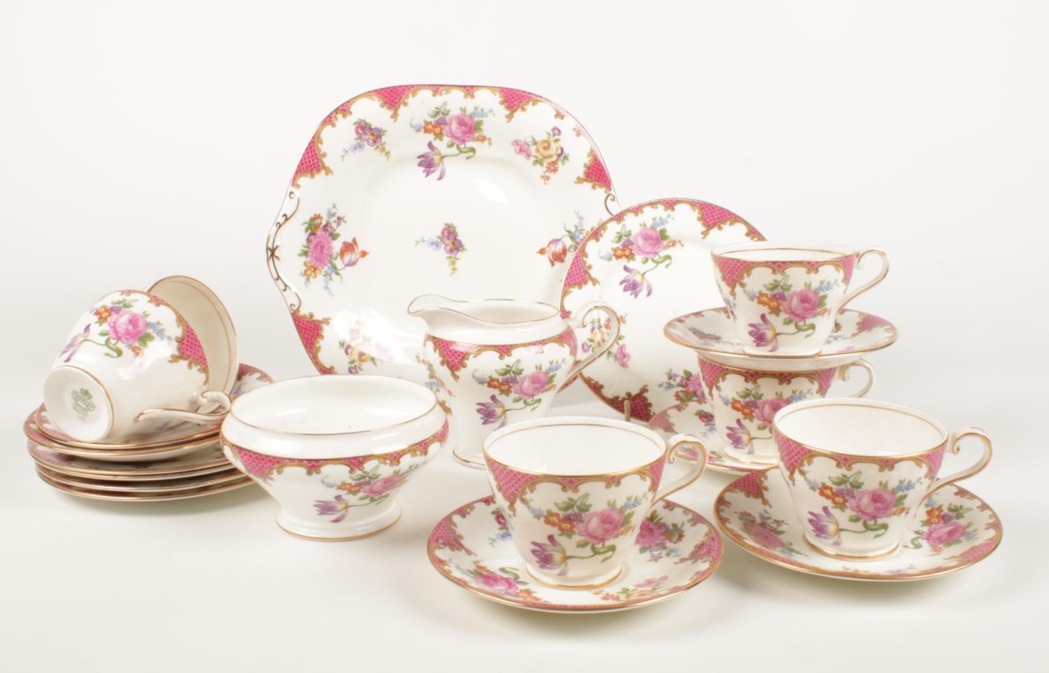 An Aynsley tea set. cups/saucers, milk jug, sugar bowl, examples etc.