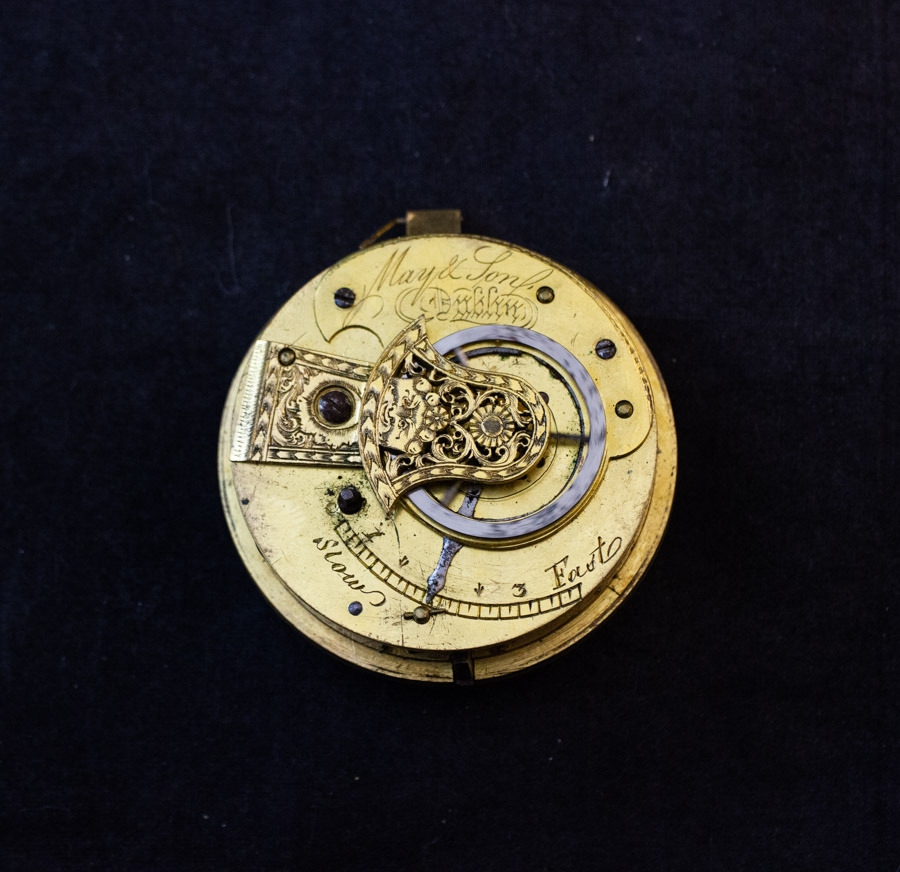 THREE EARLY 19TH-CENTURY DUBLIN VERGE POCKET WATCH MOVEMENTS, SIGNED ‘MAY & SONS’, ‘O’REILLY’, AND ‘THOS. JOHNSON’