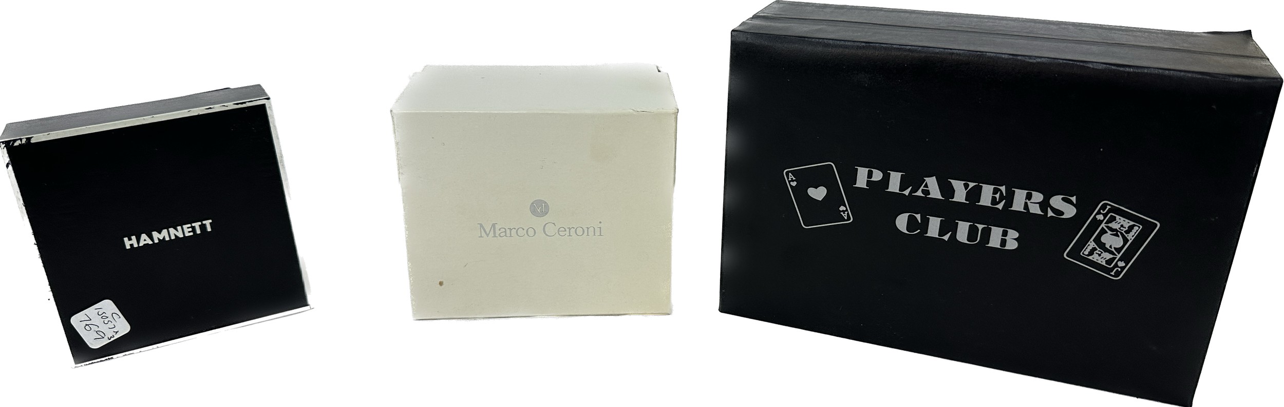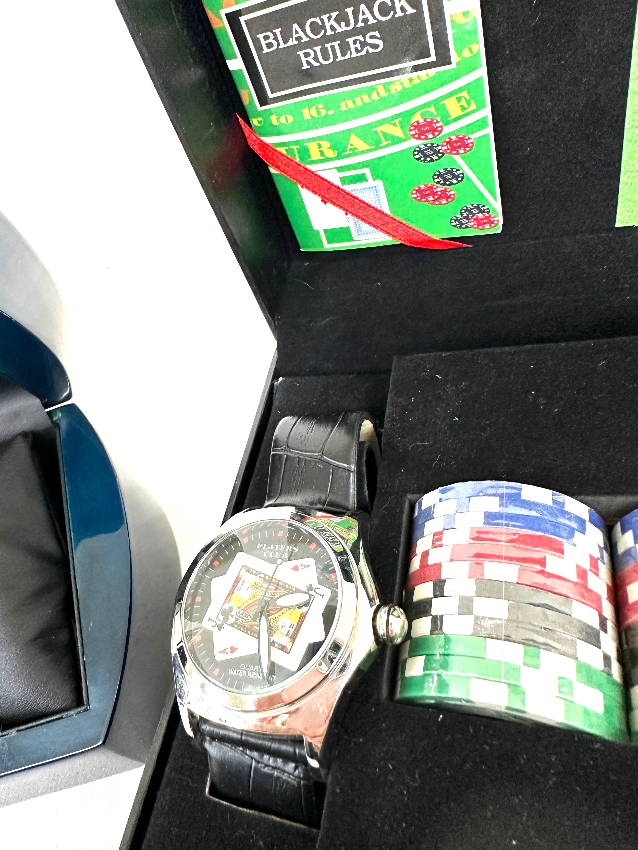 Selection of 6 cased mens wristwatches, to include Marco Ceroni, Hamnett, Players club watch, cards and tokens, Gianni Vecci, Hamnett wristwatch, Marco Ceroni, all untested