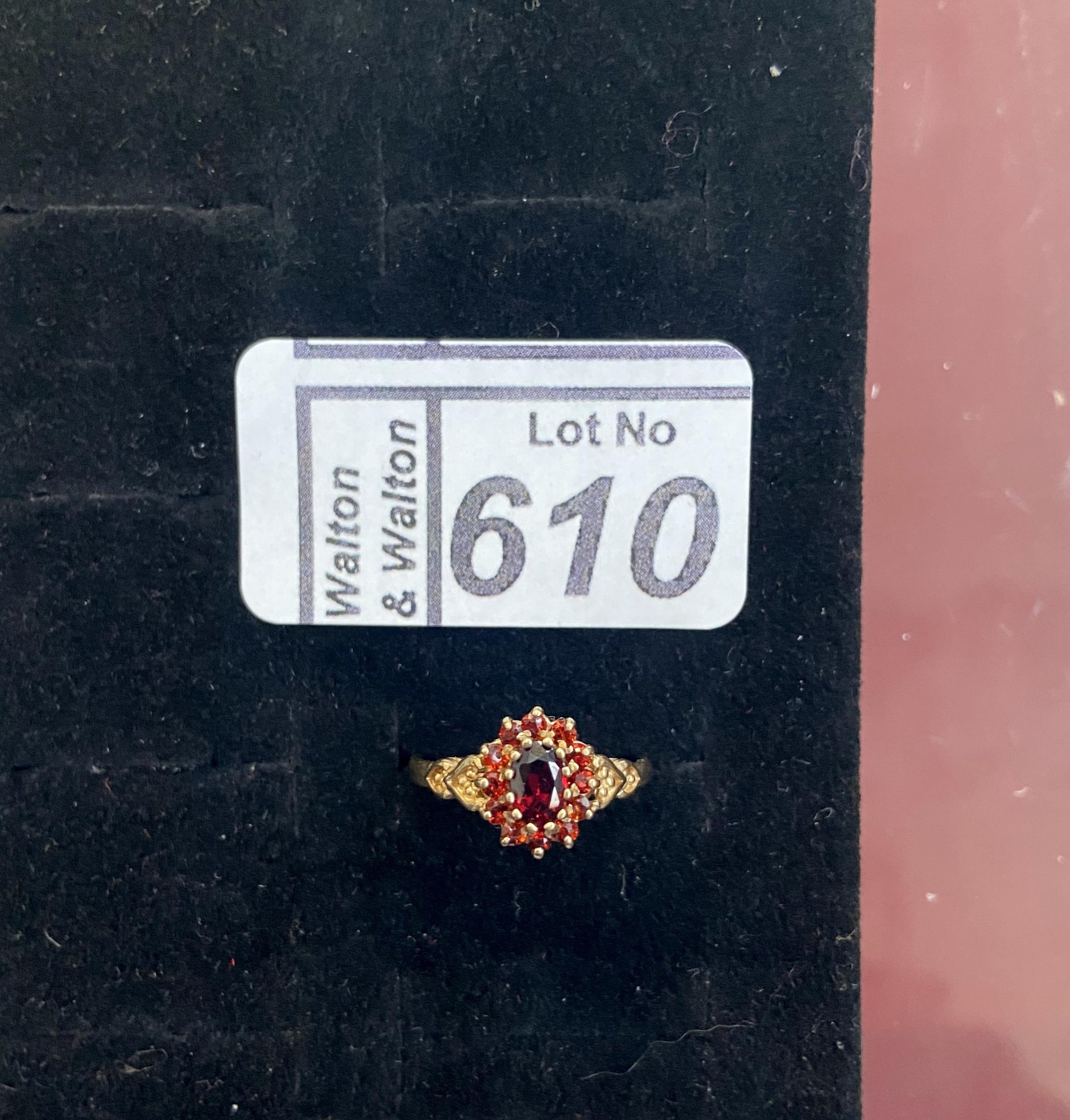 Ornate 9ct gold stone set ring, size M - Only 10% buyer's premium