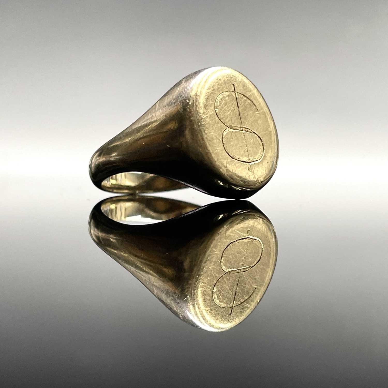 Sven Berlin's 9ct gold signet ring, engraved with his monogram, Birmingham 1967, size U, weight 10.3g. From the Estate of Julia & Sven Berlin