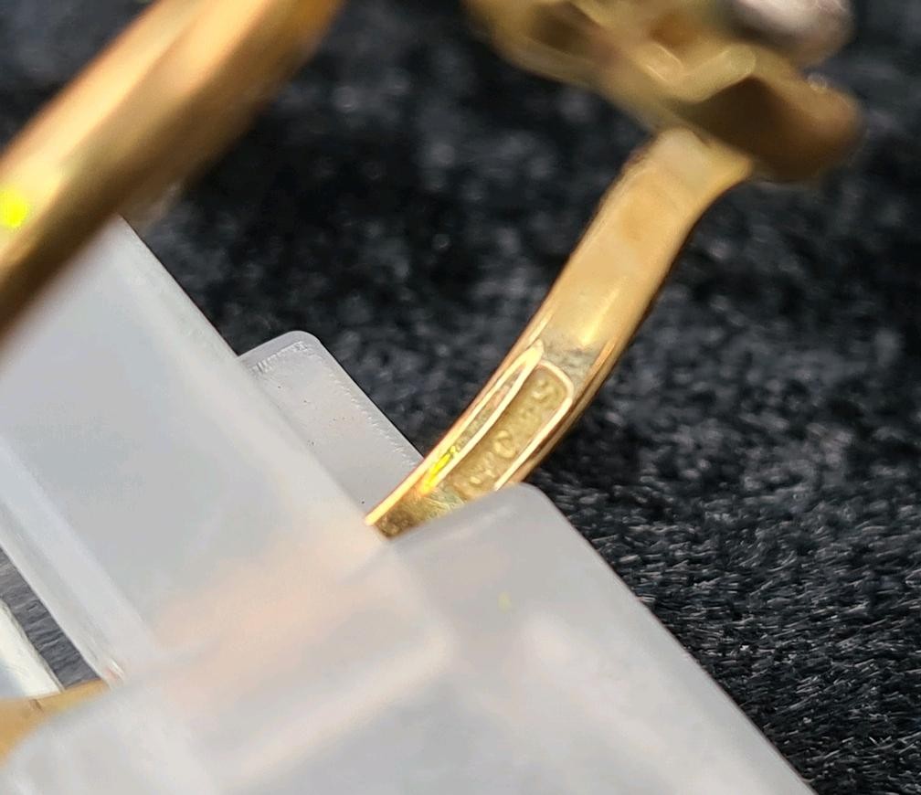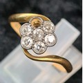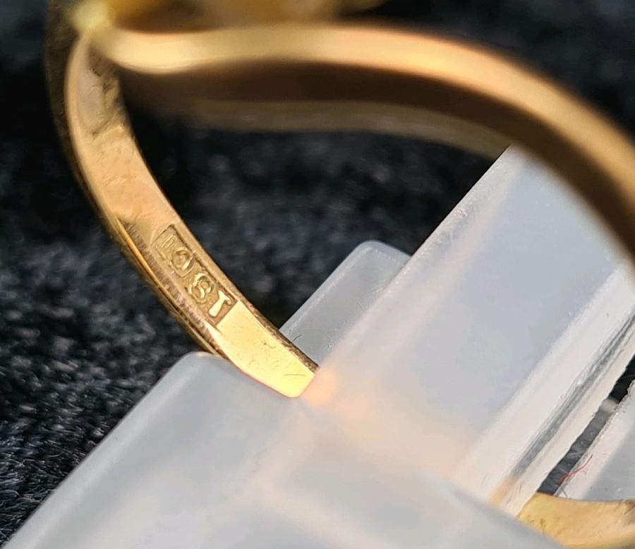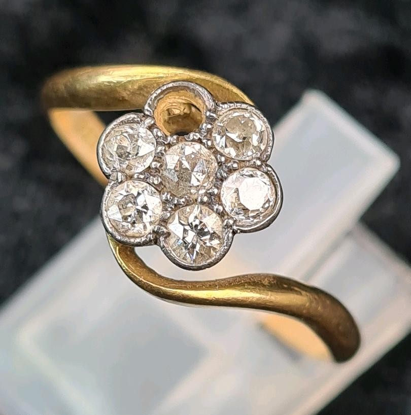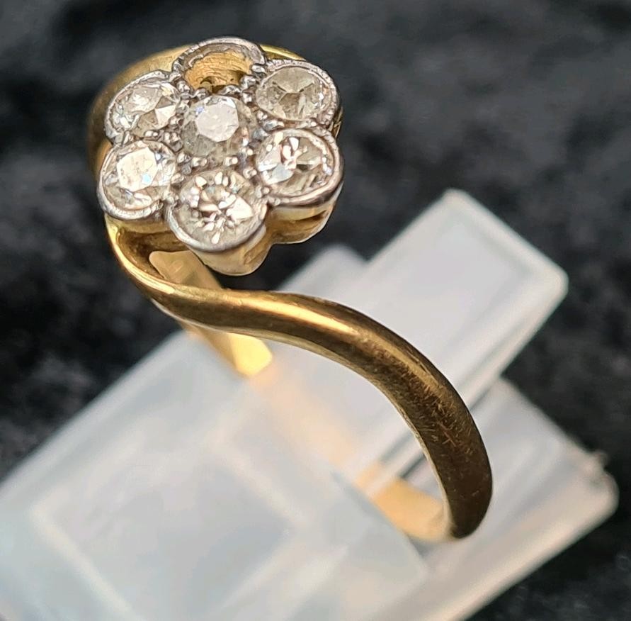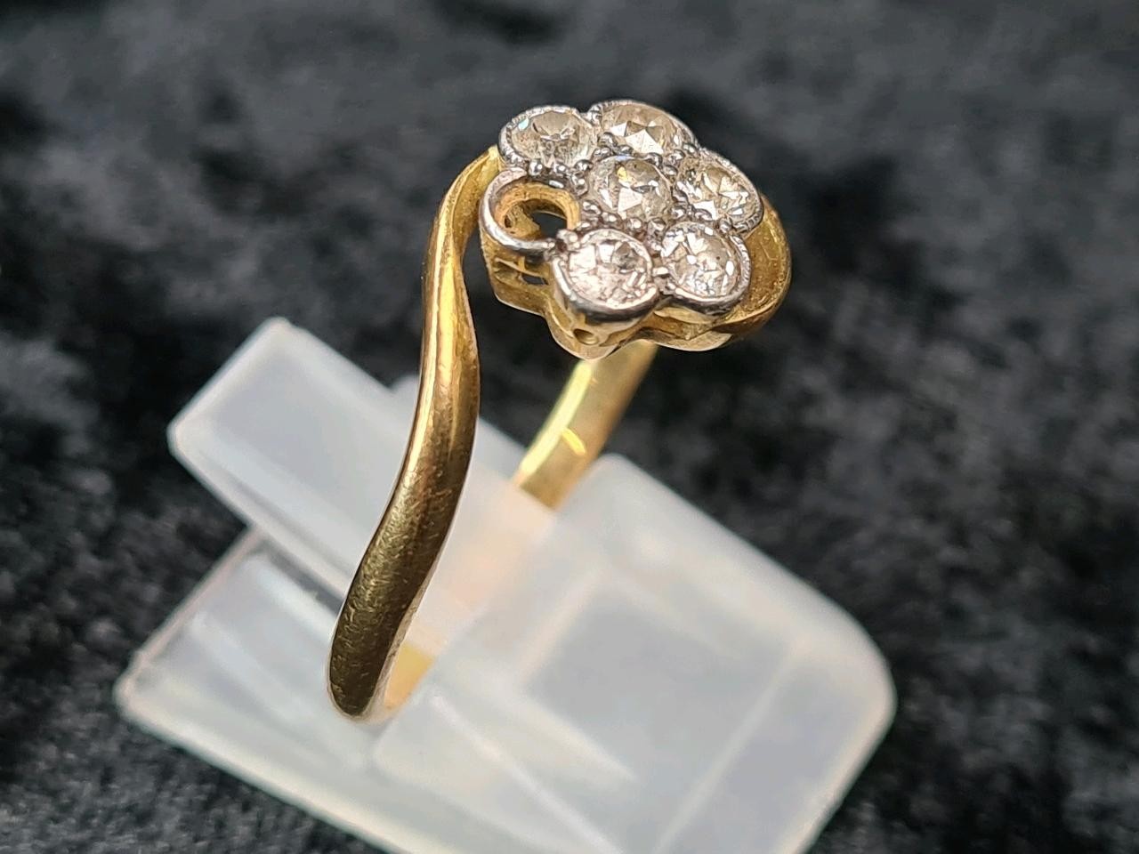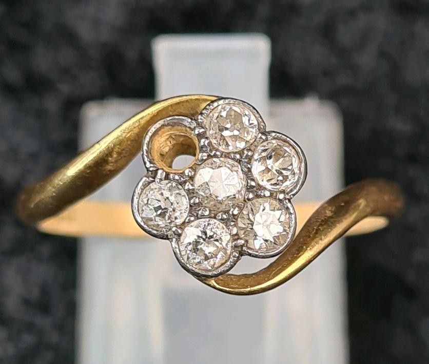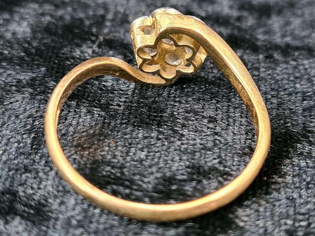 18ct gold and diamond ring (one diamond missing), size S, approx 2.9g