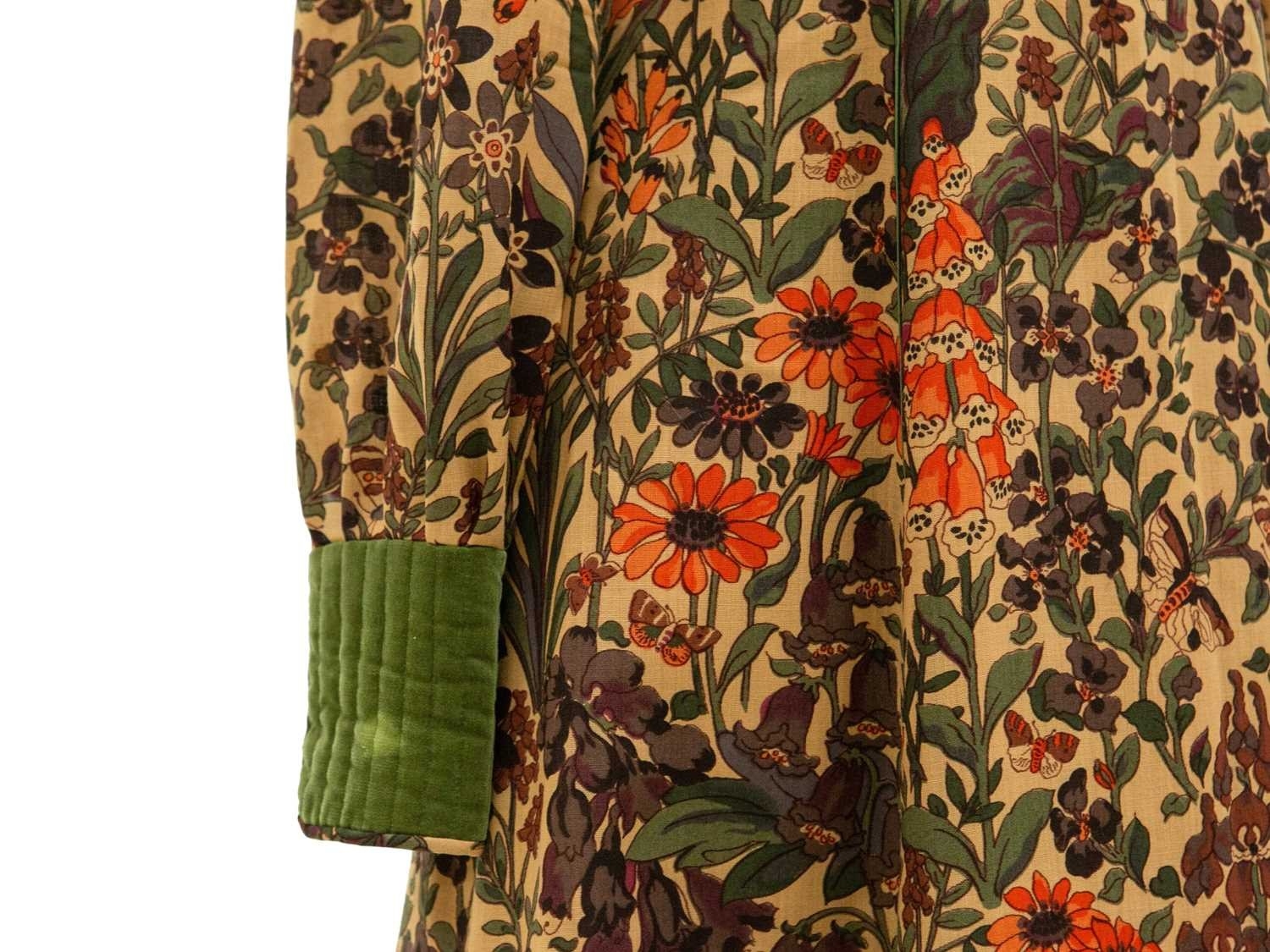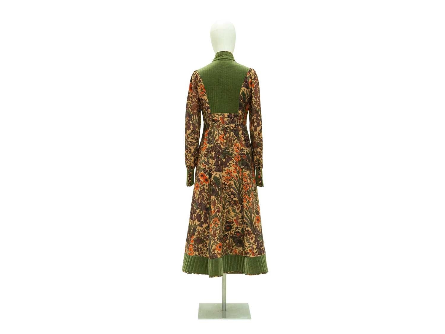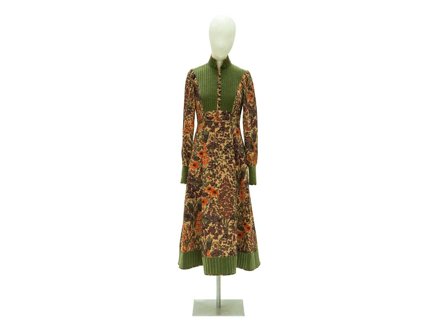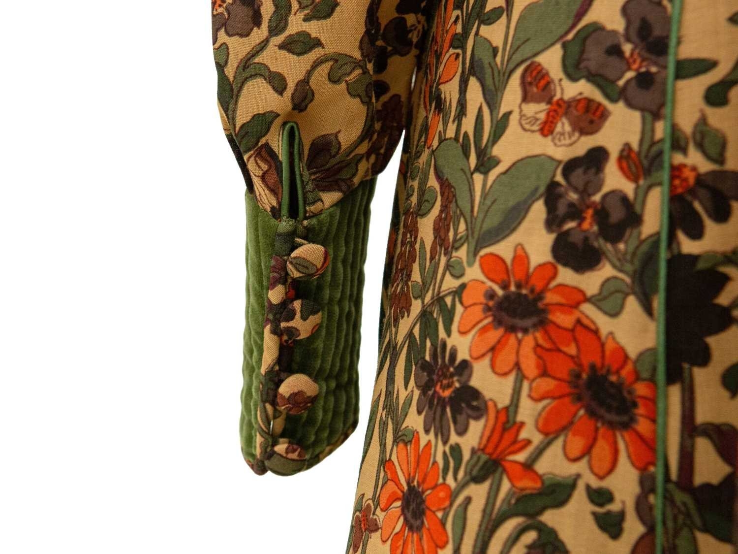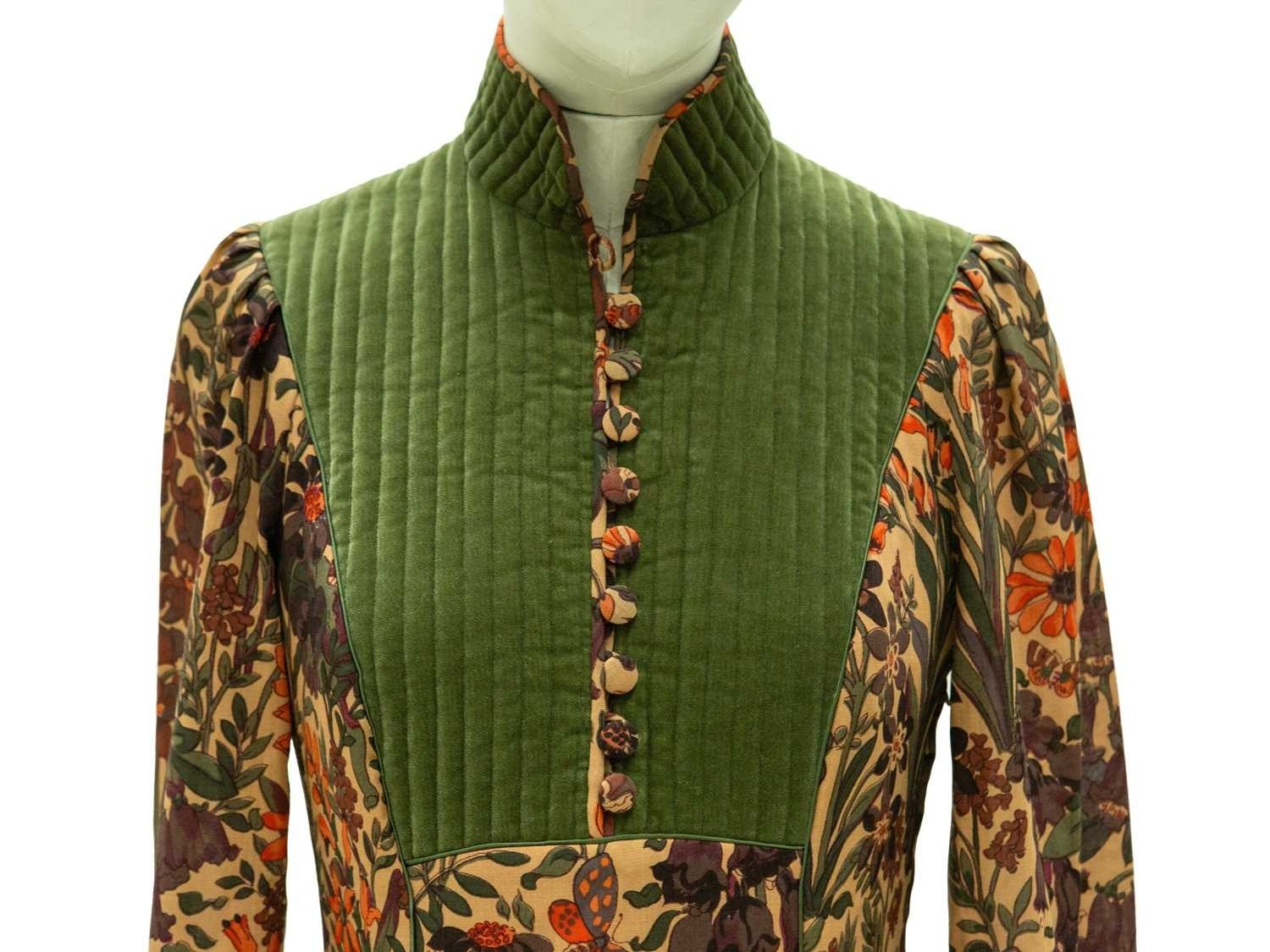 Anna Belinda of Oxford. A long sleeved midi dress, circa 1970, in Liberty 'Penelope' pattern printed cotton (lined), with velvet collar, cuffs and hem. Approximate size UK 8.