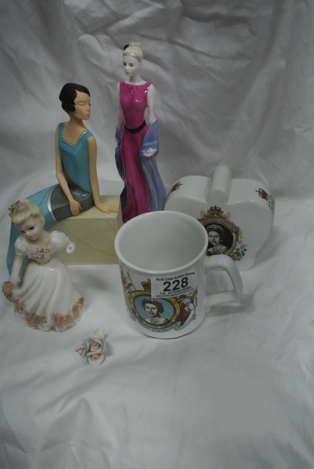 Two Pieces of Commemorative Ware and Two Figurines and a Coalport Figurine