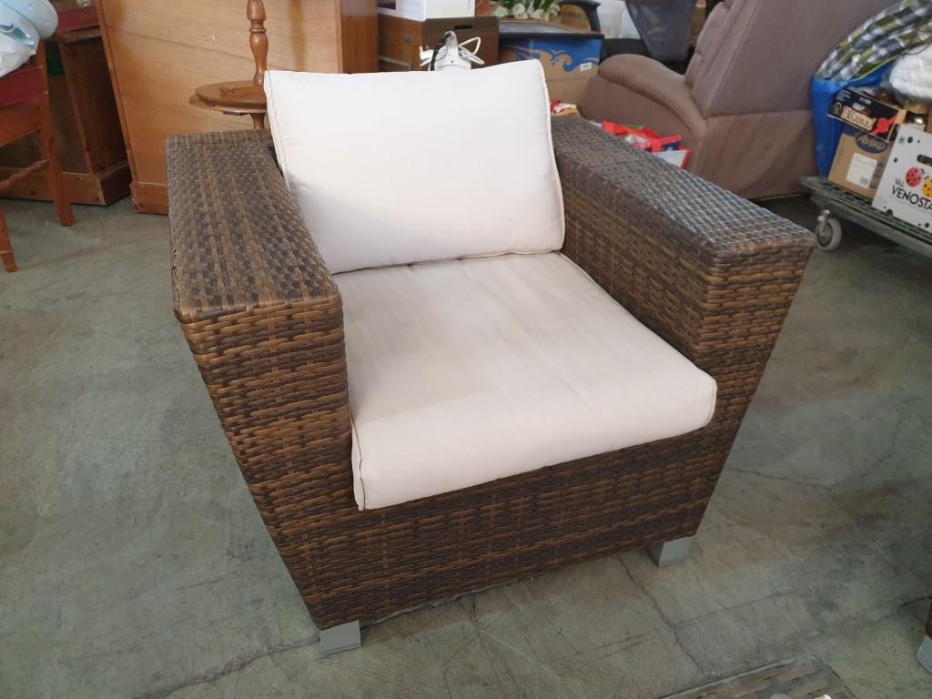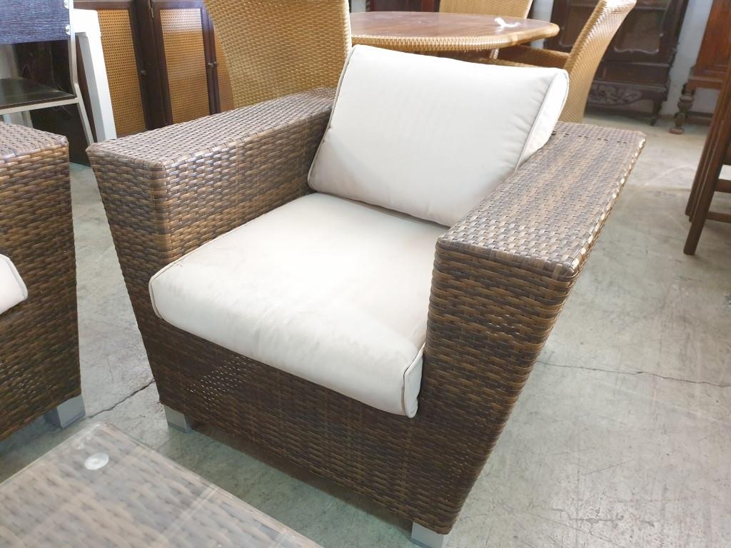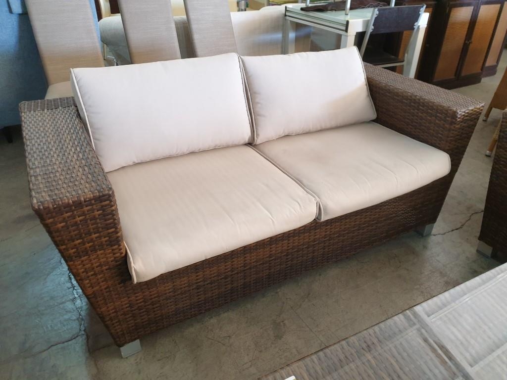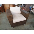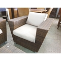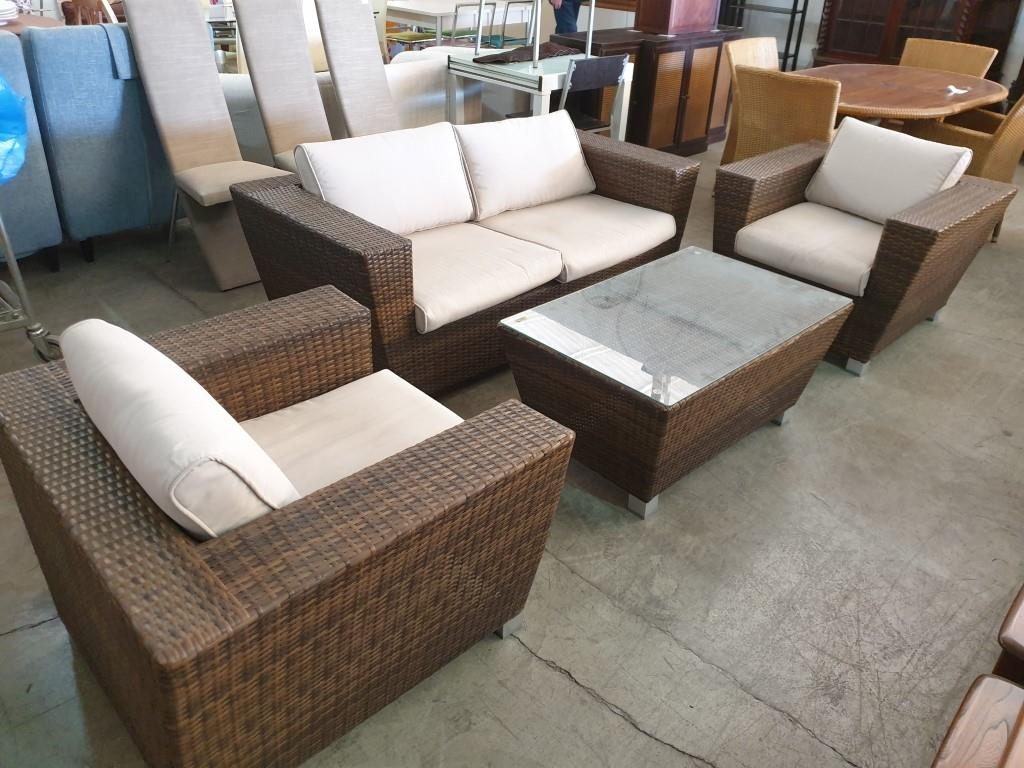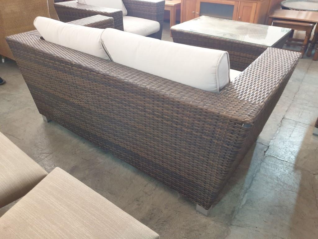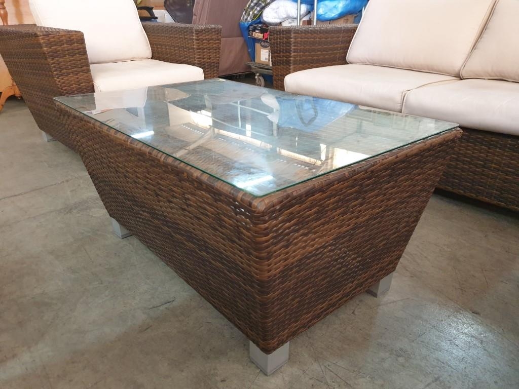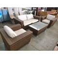 Rattan Garden / Patio Set; 2 - Seat Sofa, 2 x Armchairs with Fitted Cushions and Glass top Coffee Table (4)