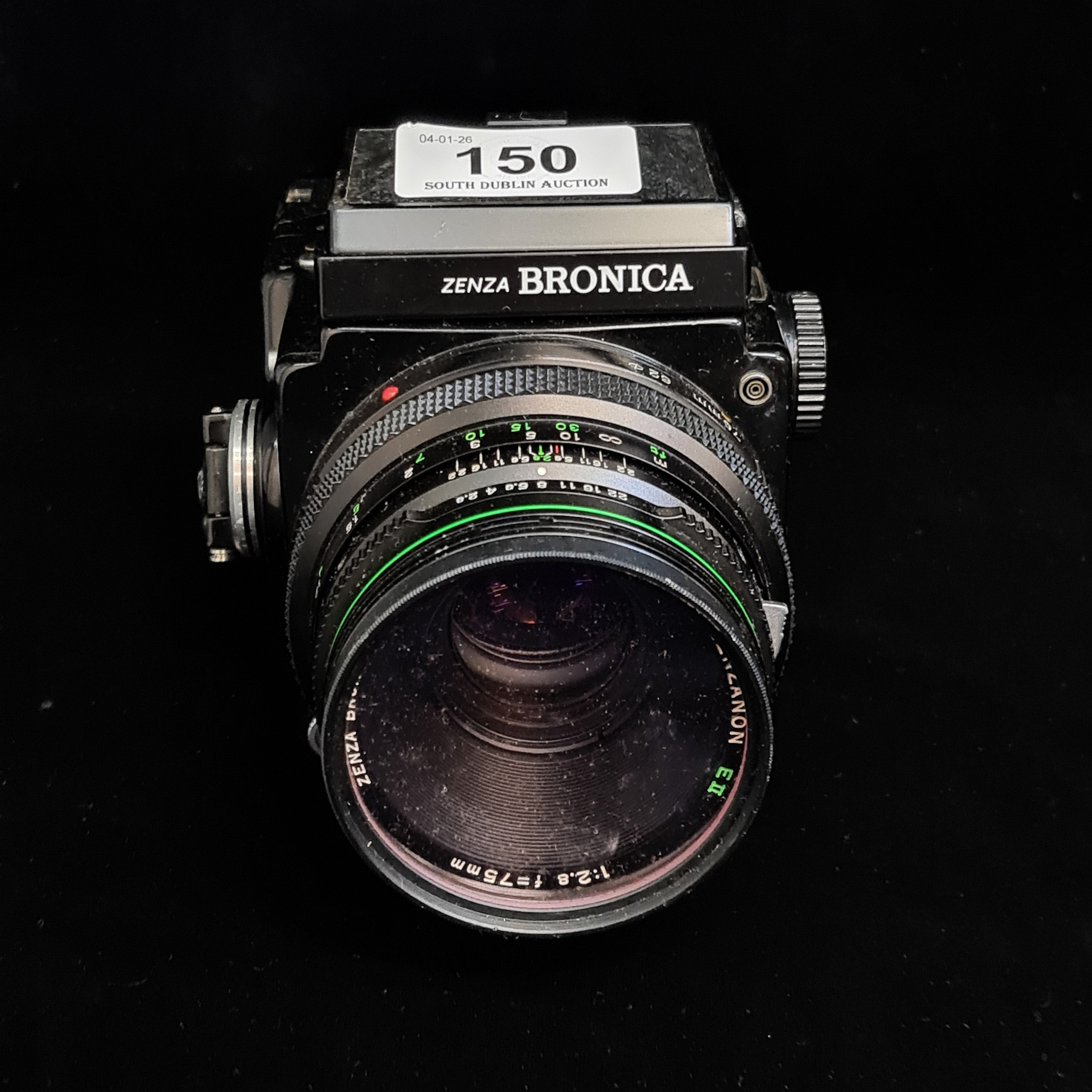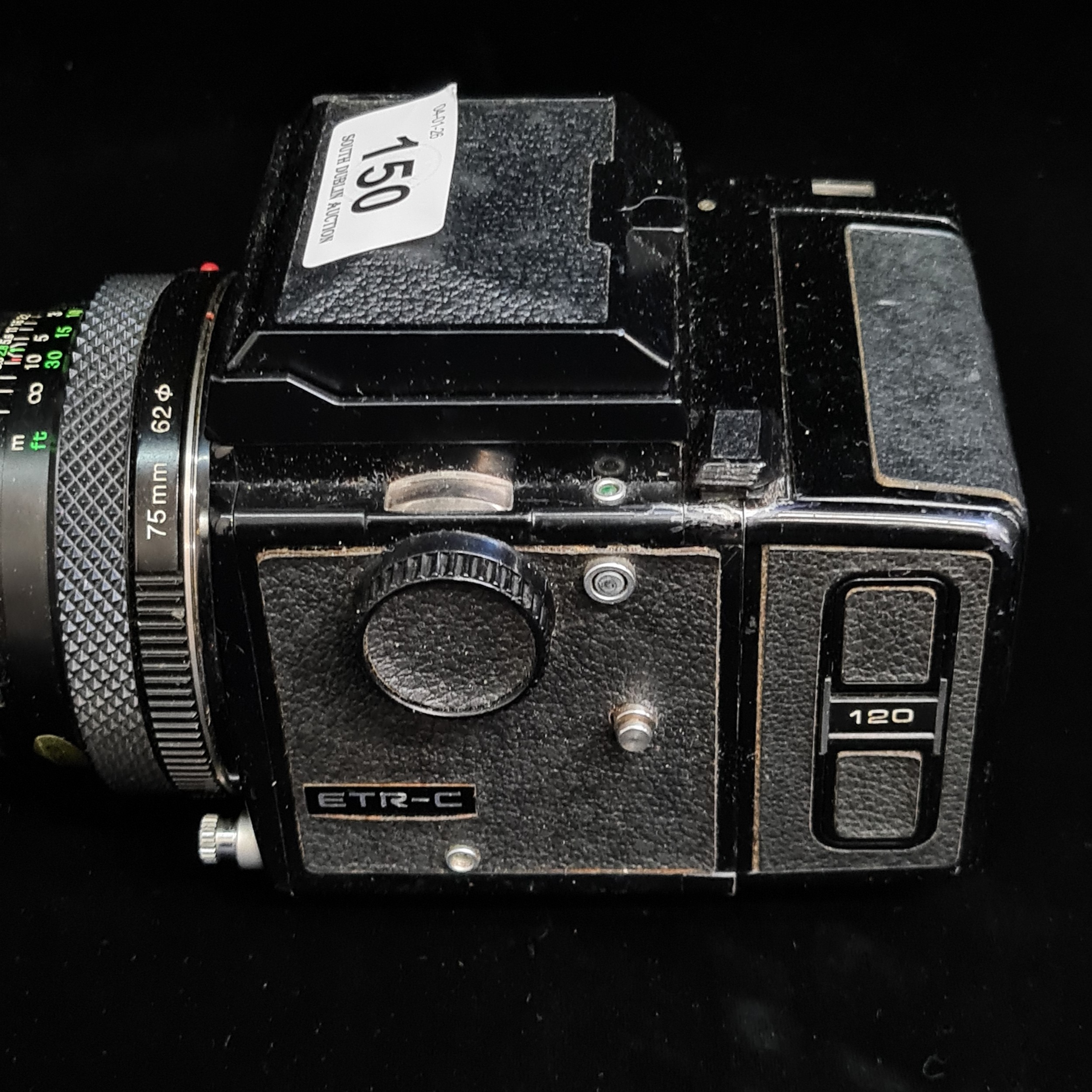 Star Lot : A 'Zenza Bronica ETR-C' 1970's medium format film camera using 120/220 roll film. Fitted with a 'Zenza Bronica Zenzanon 1:2.8 f=75mm' lens.