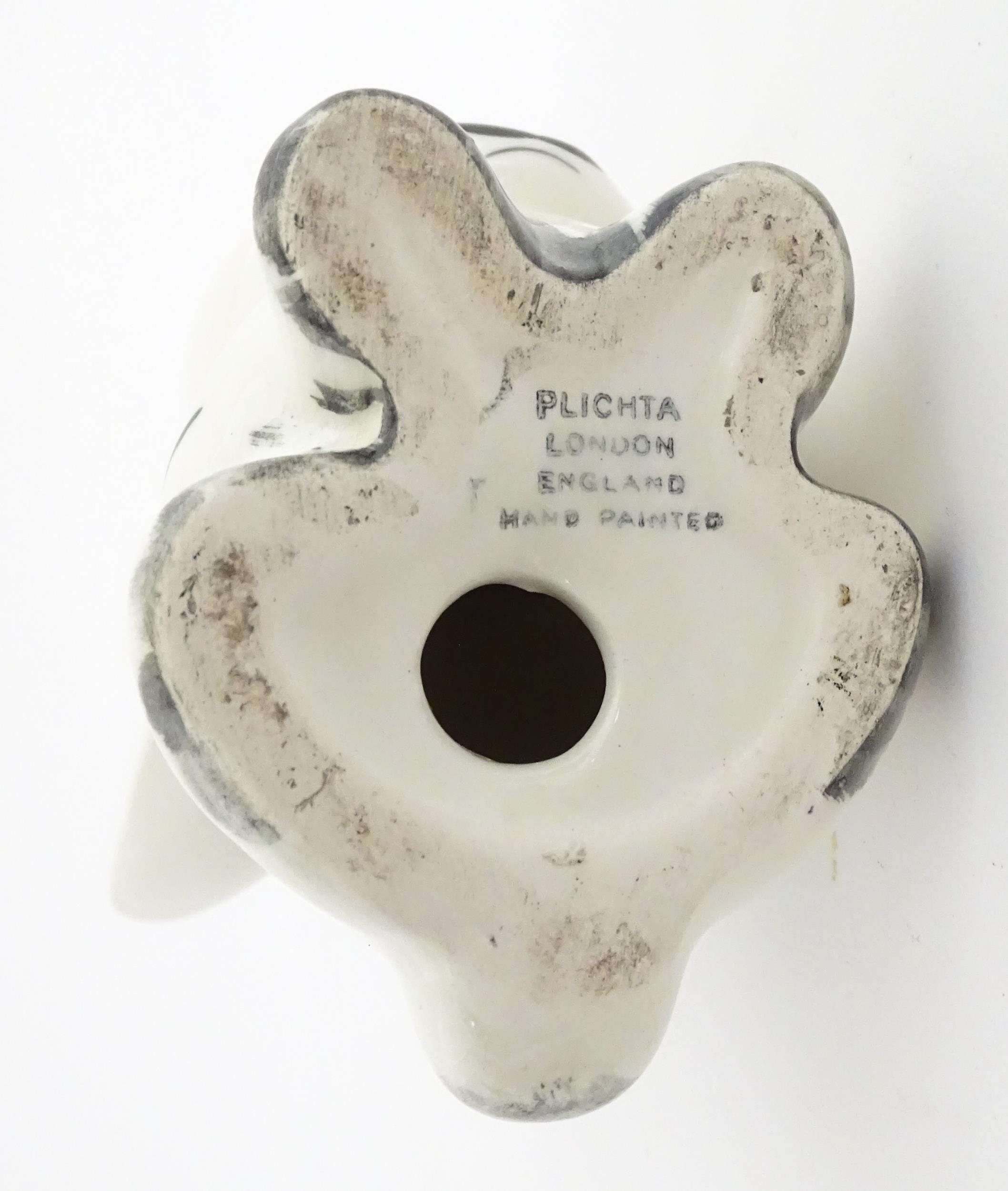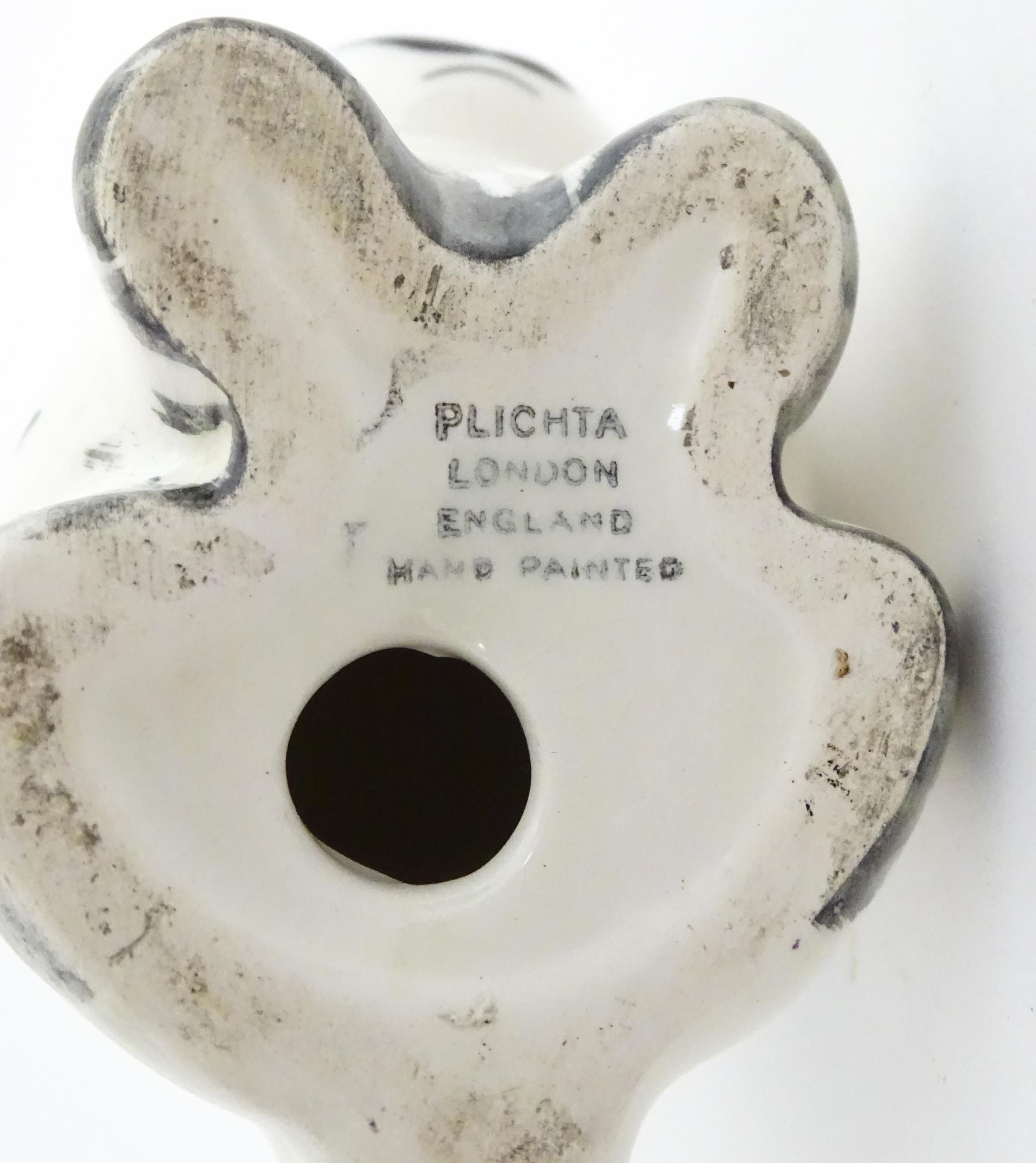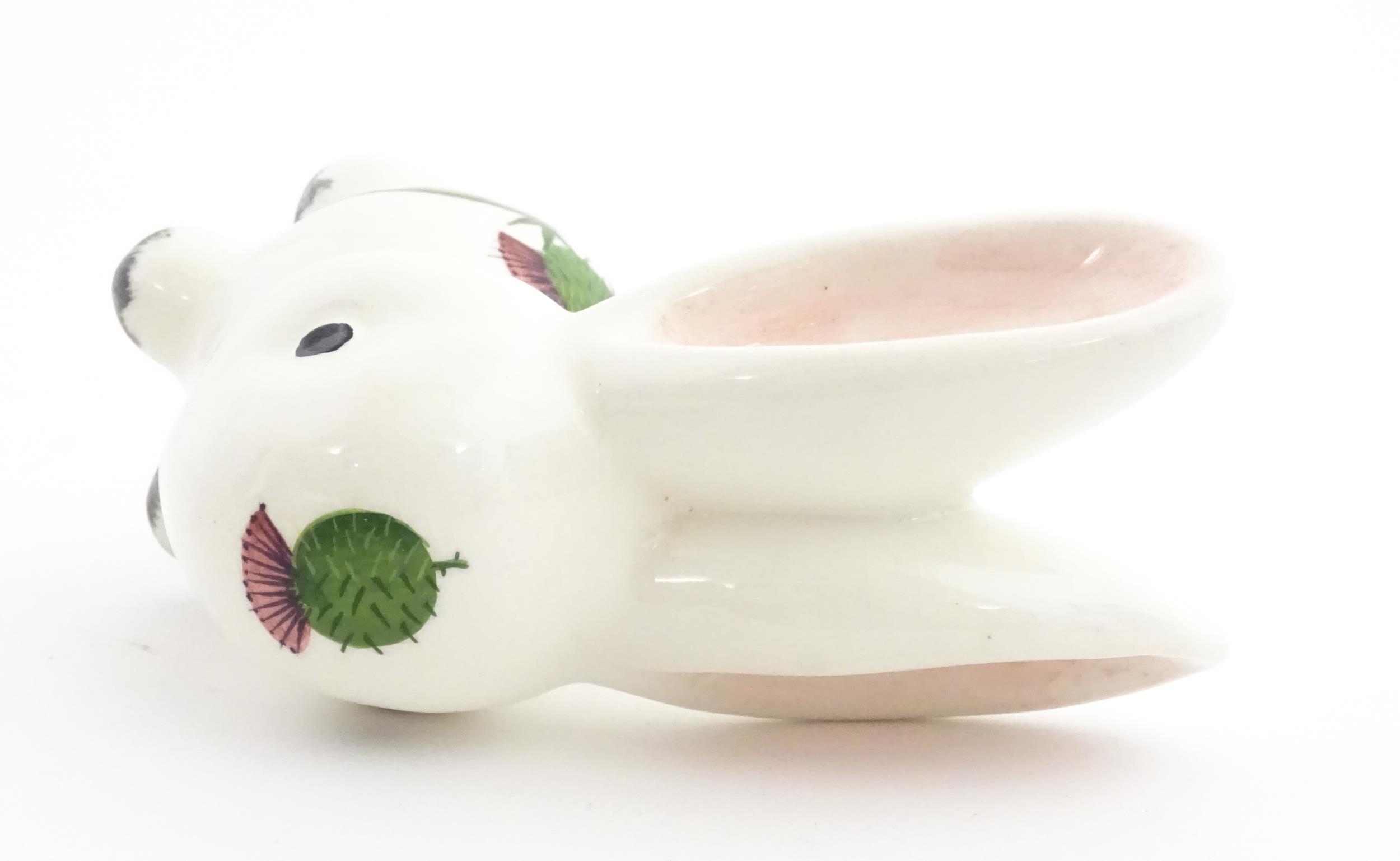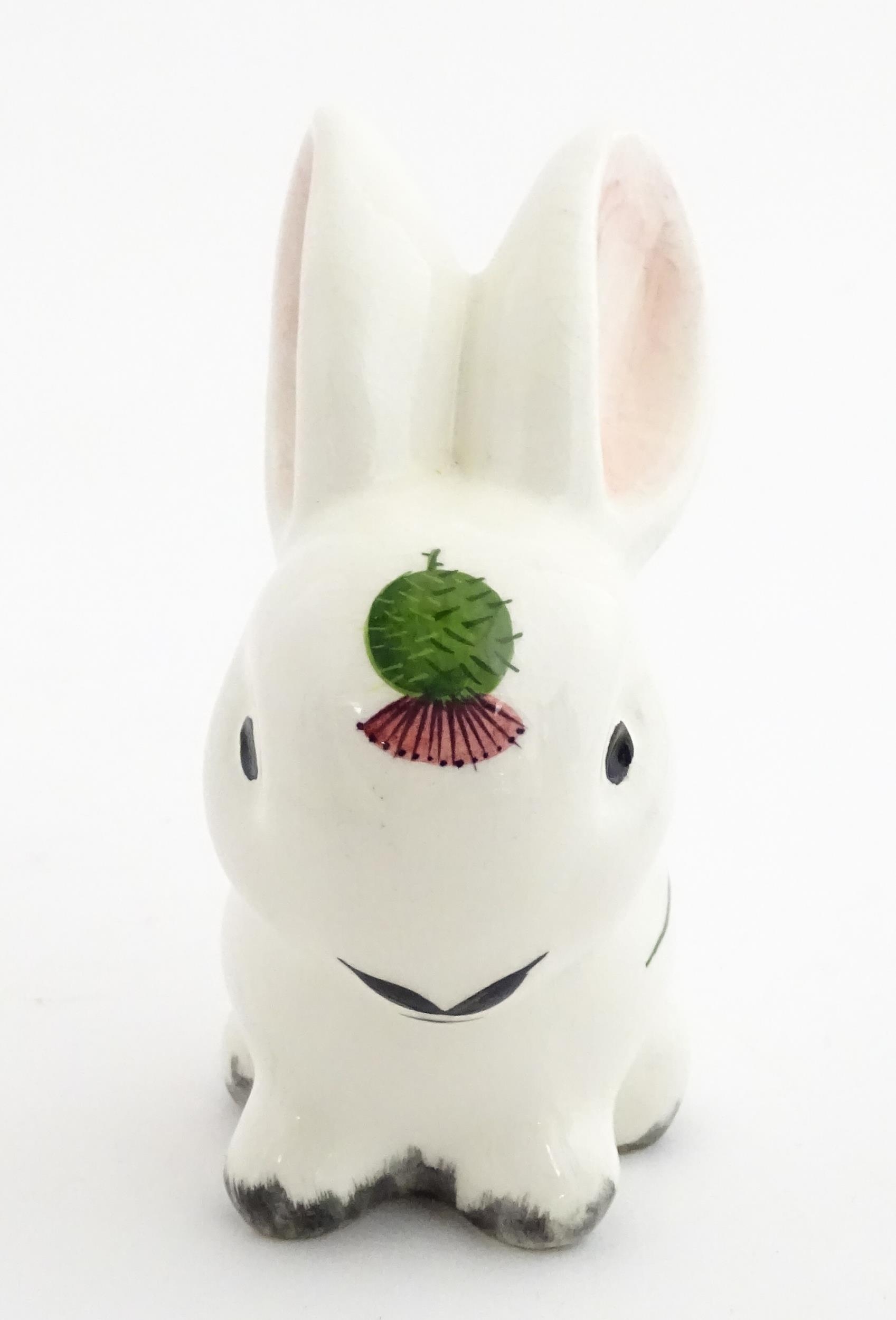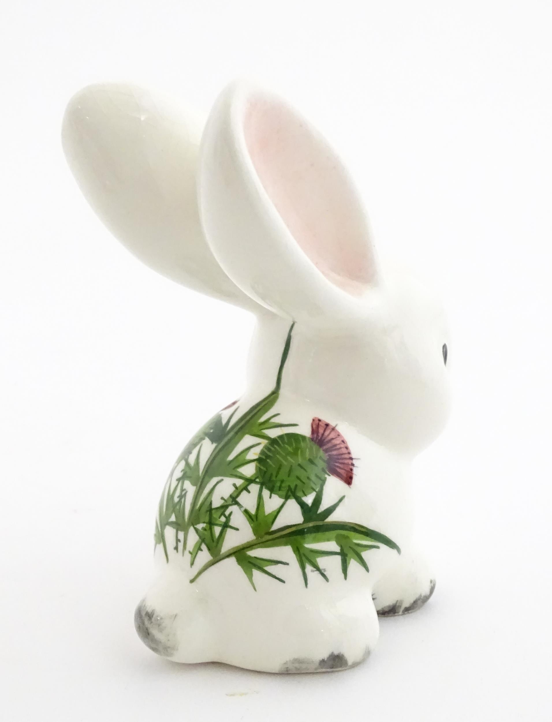 A Plichta model of a bunny rabbit, with hand painted Wemyss style thistle detail. Marked under. Approx. 5 1/4" high