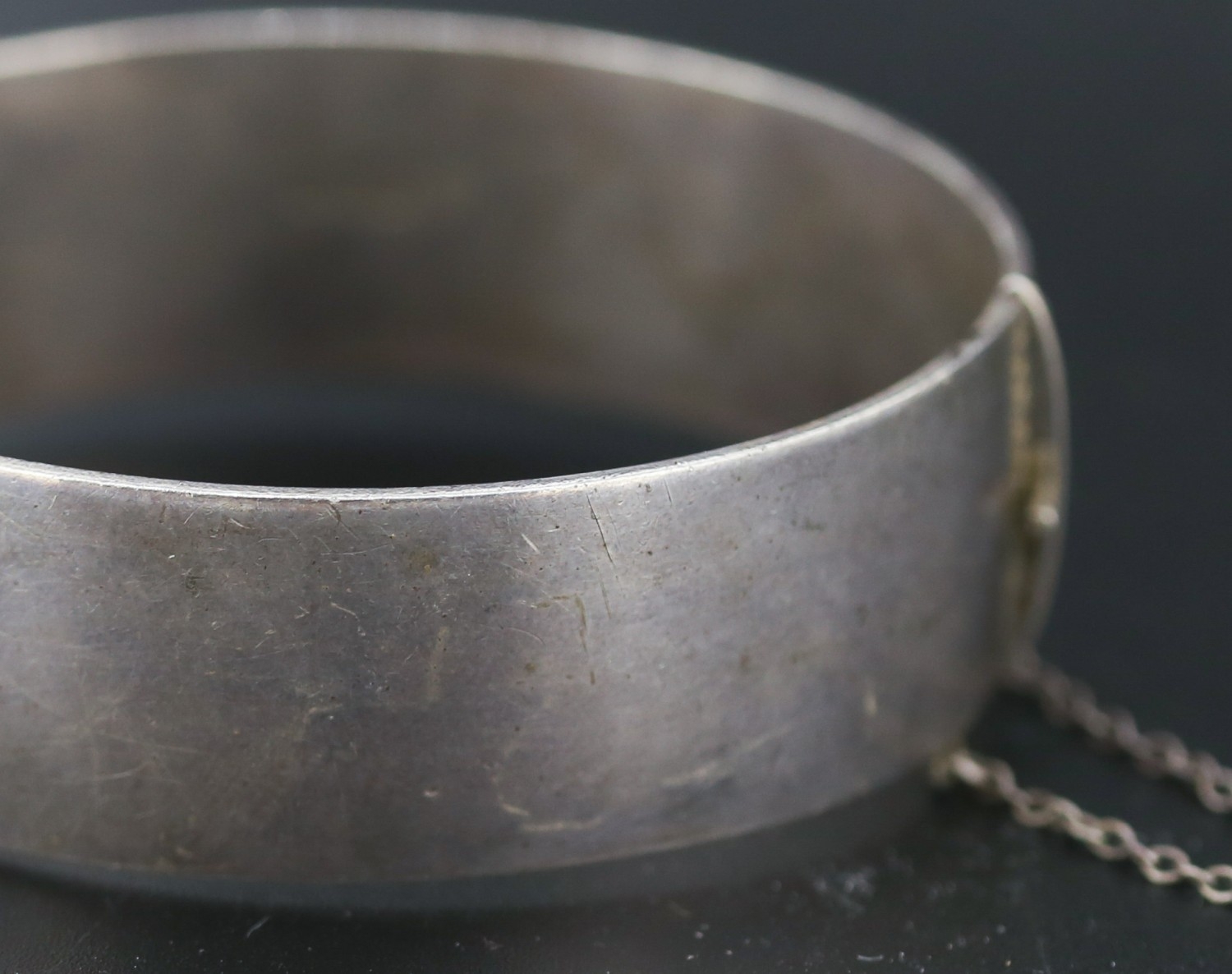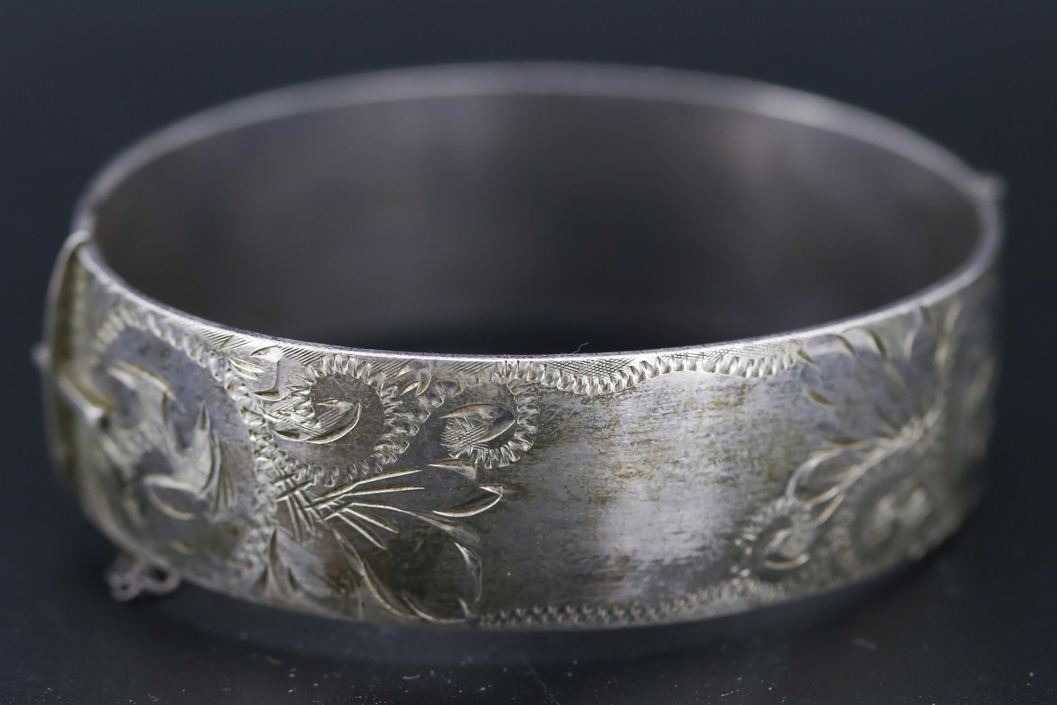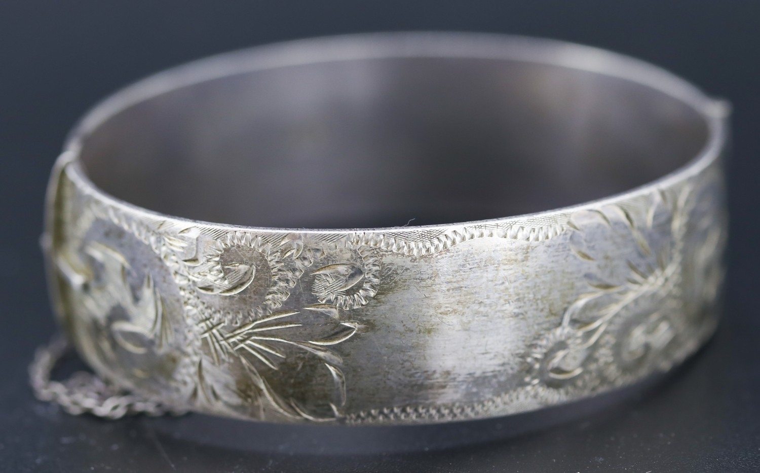 Silver Bangle Bracelet Incised Detail Inner Width 6cm