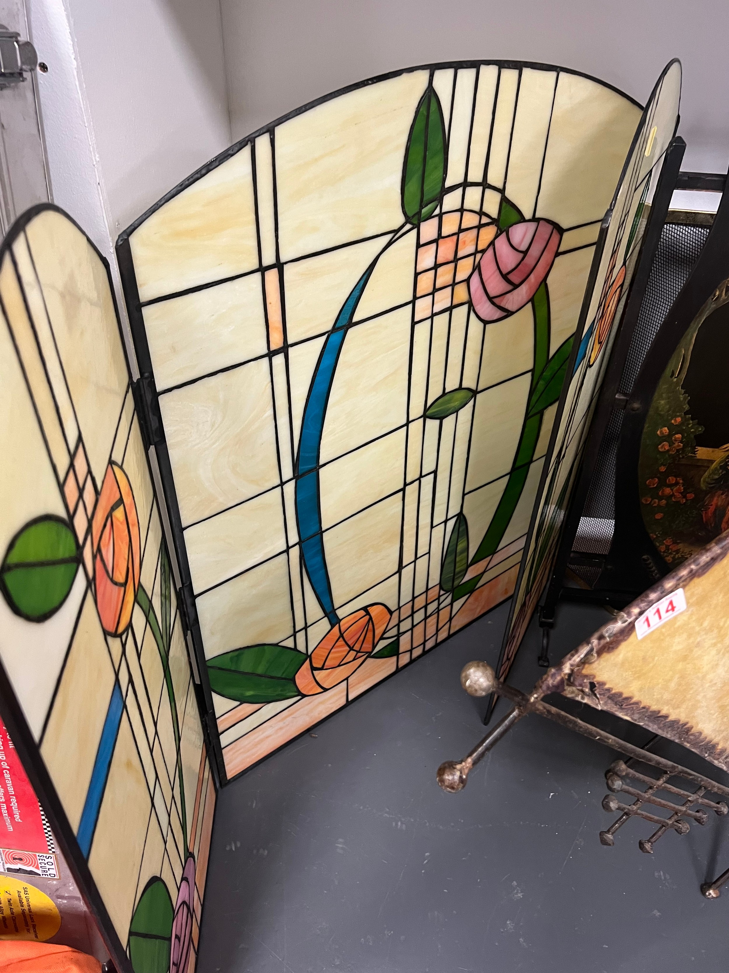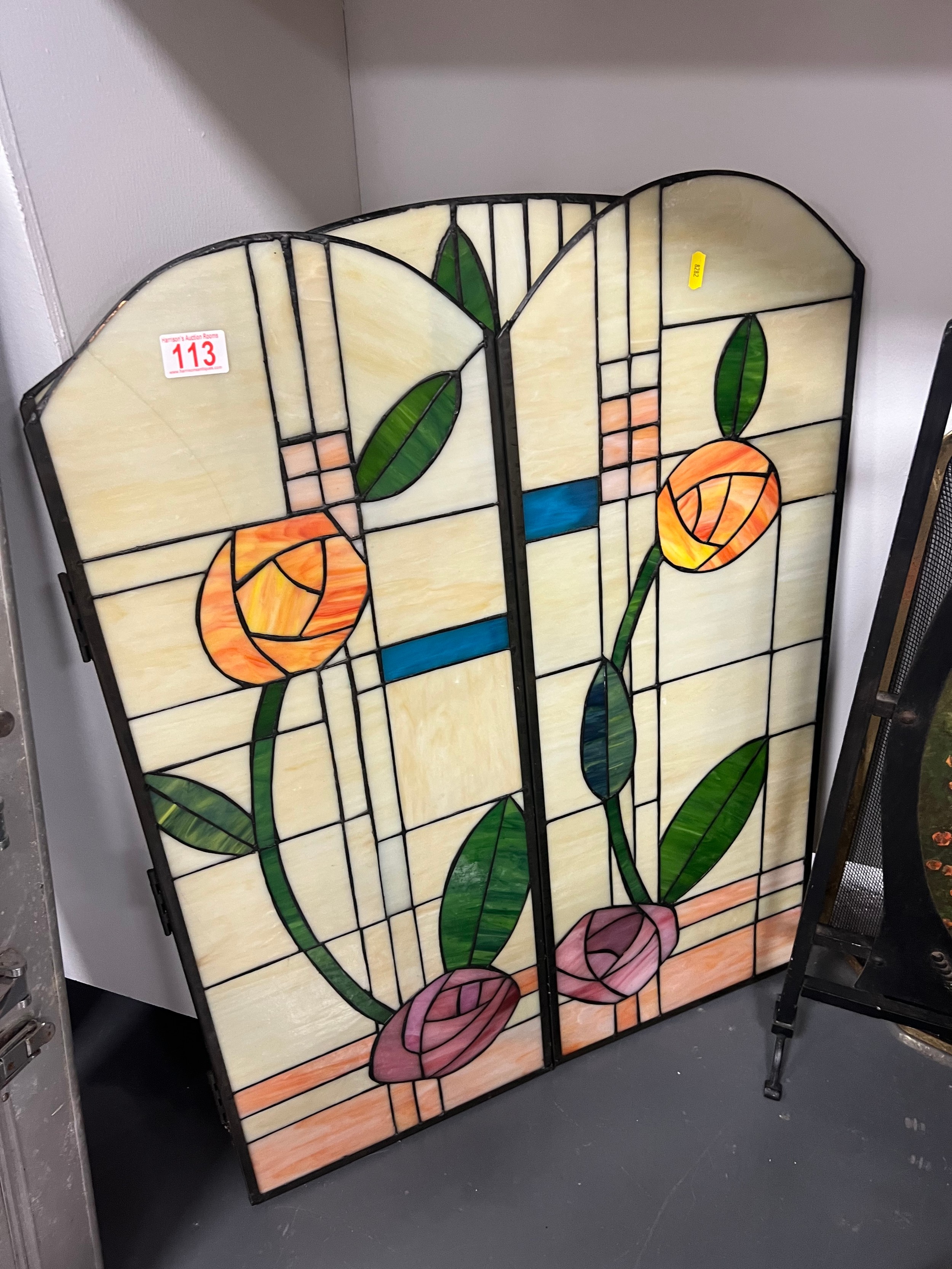 Art nouveau leaded stain glass fire screen, 1 piece glass a/f