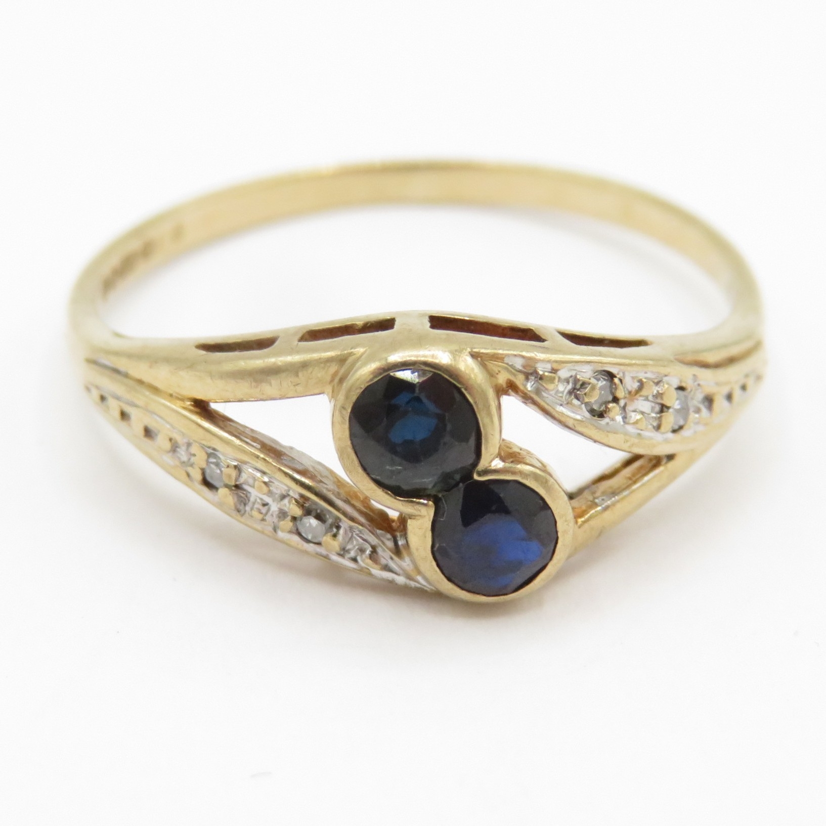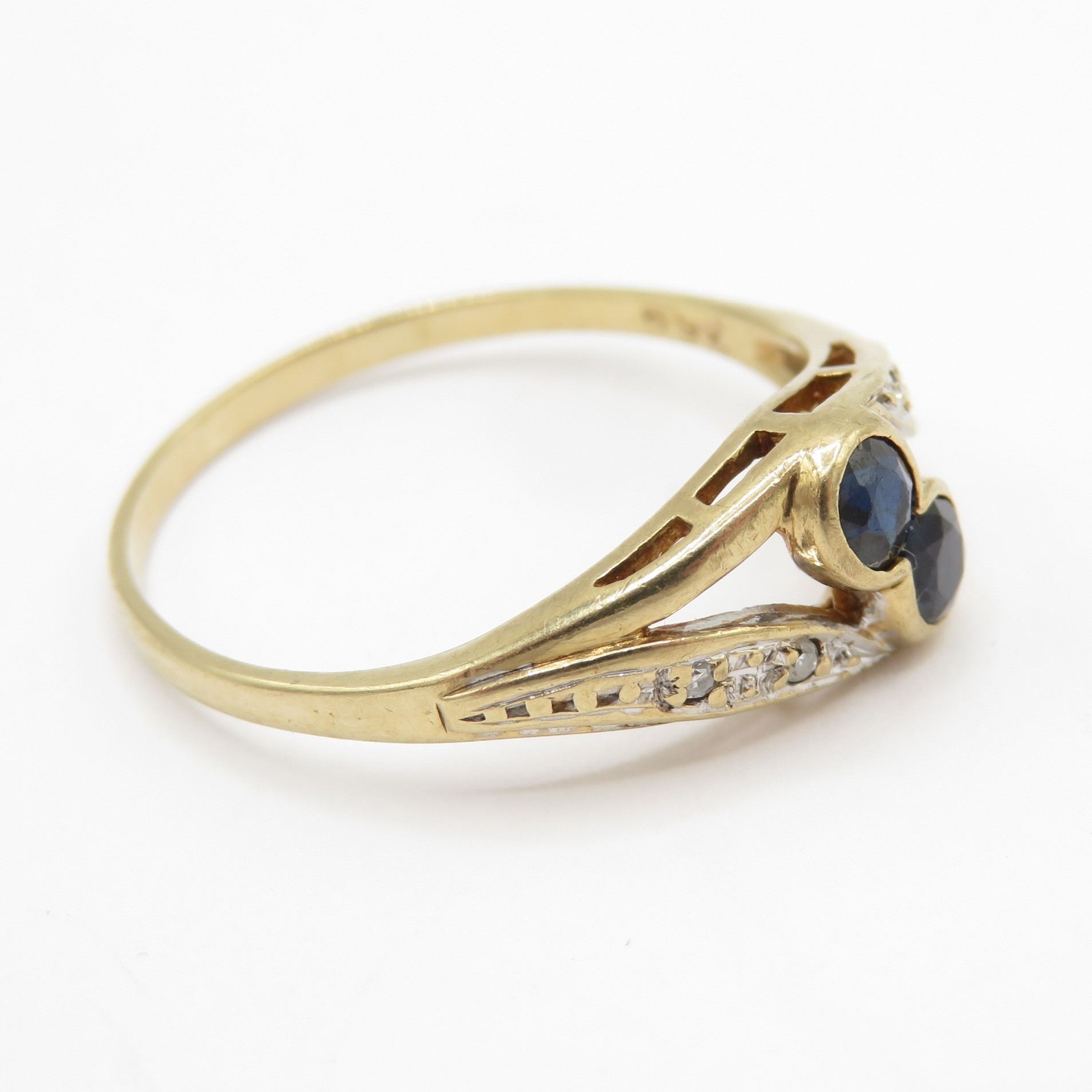 9ct gold sapphire and diamond toi et moi ring (1.5g) Size O 1/2