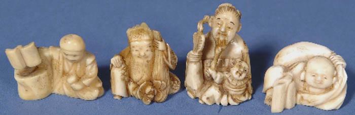 4 early carved ivory netsukes (2.5 - 5cm) -