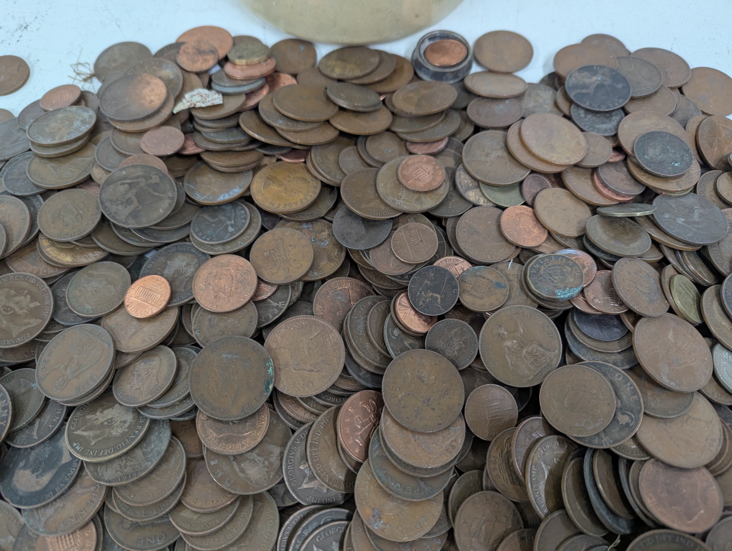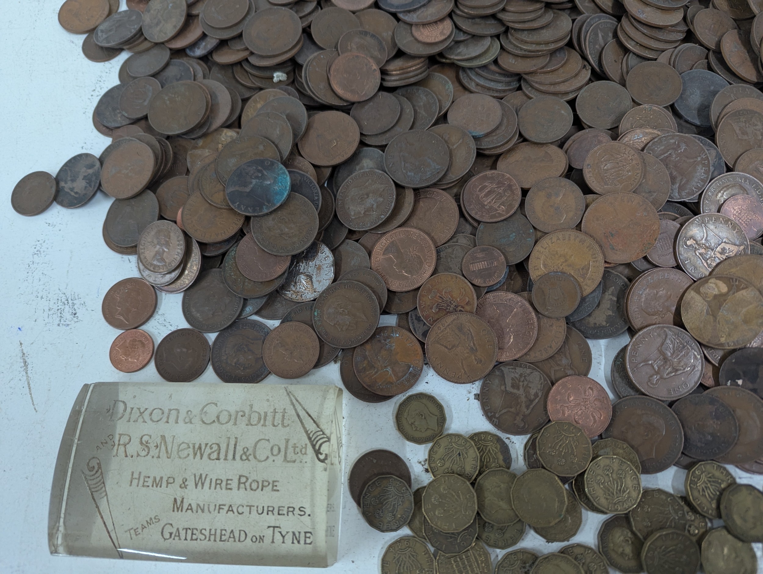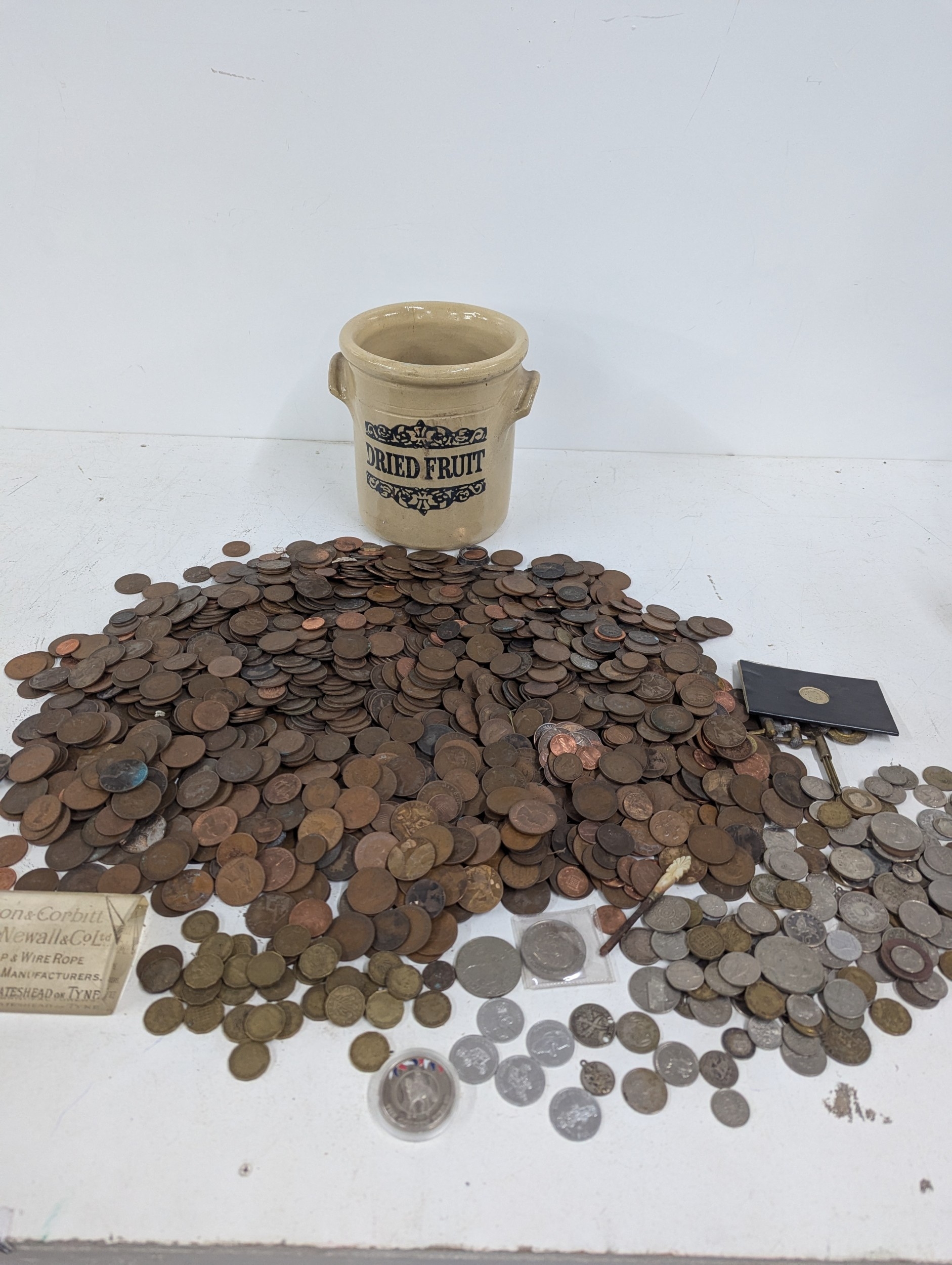 A collection of mainly British coinage to include one shillings, commemorative examples, shillings, pennies and others