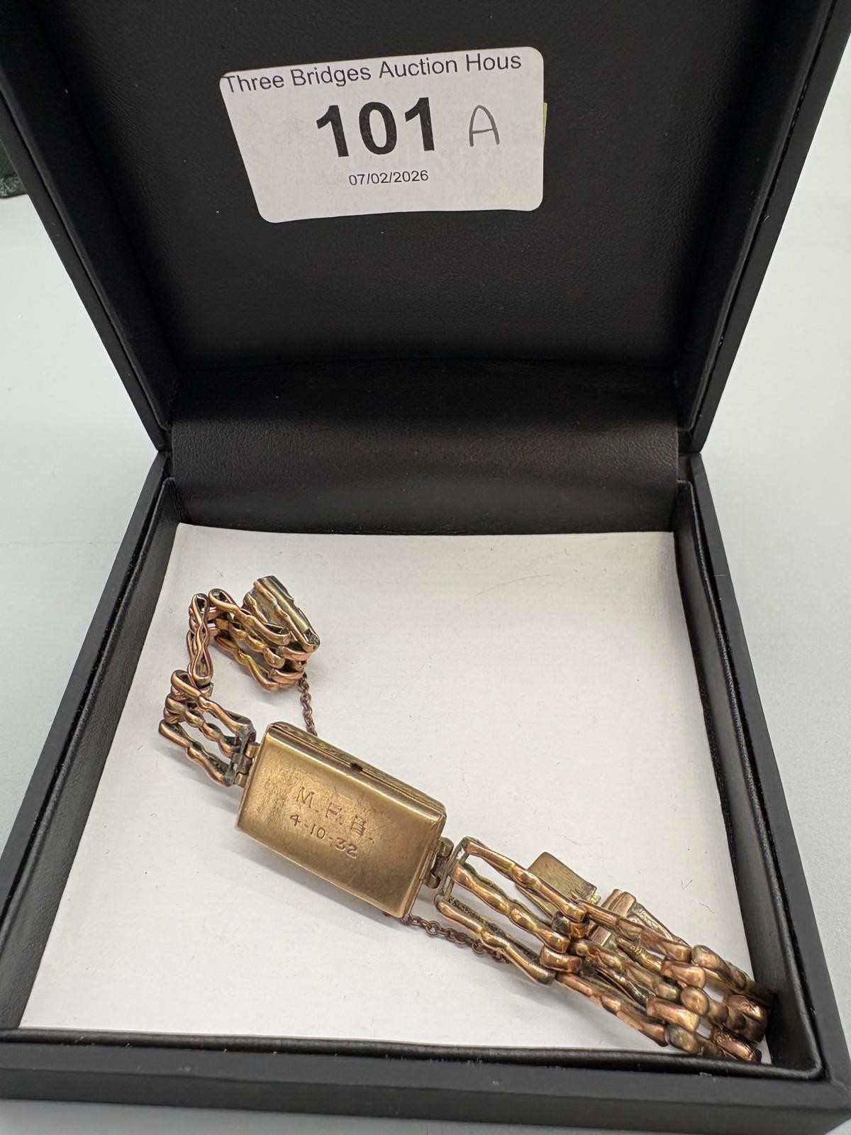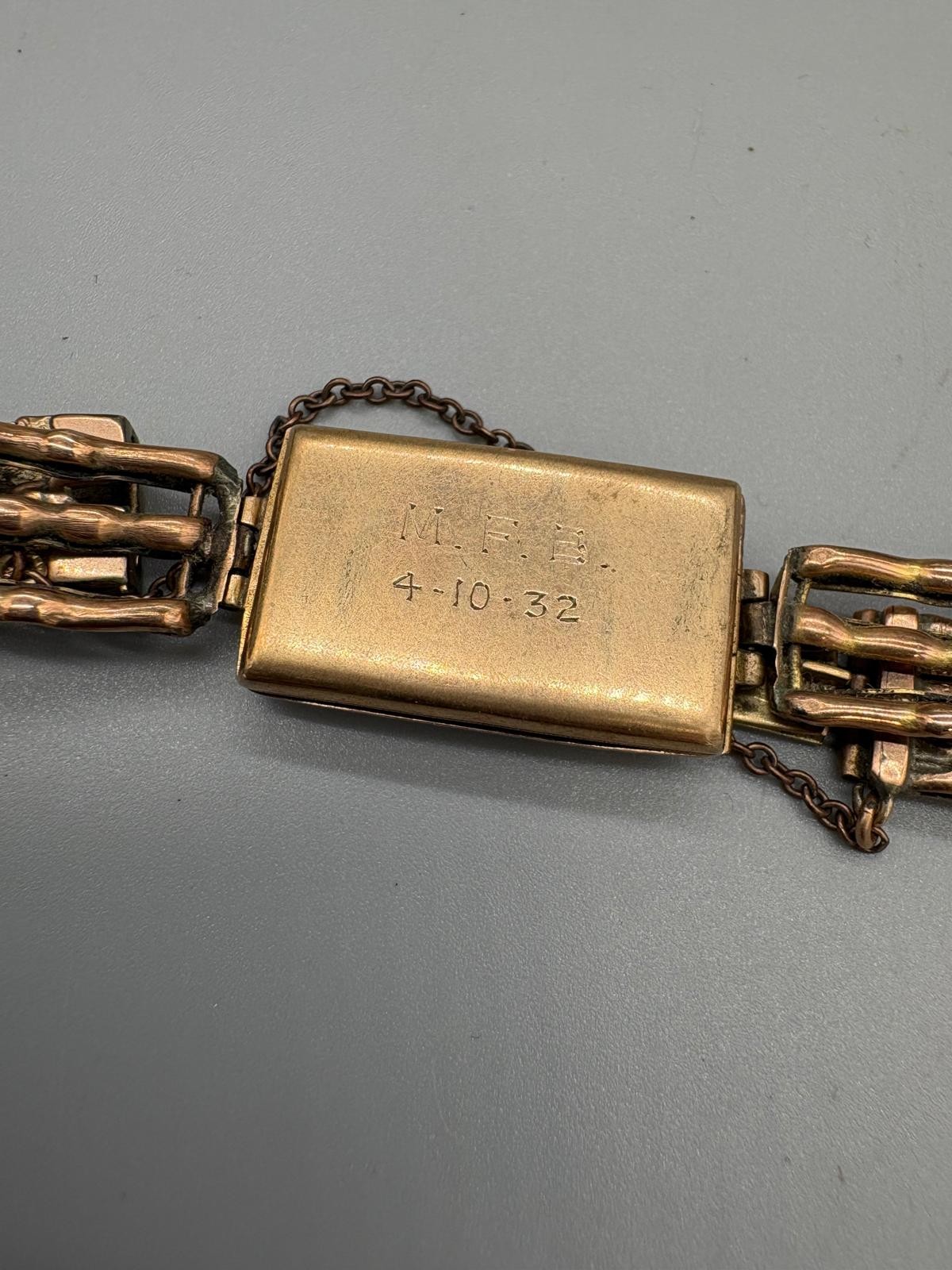 9ct yellow gold scrap watch case and strap. 11.54grams.