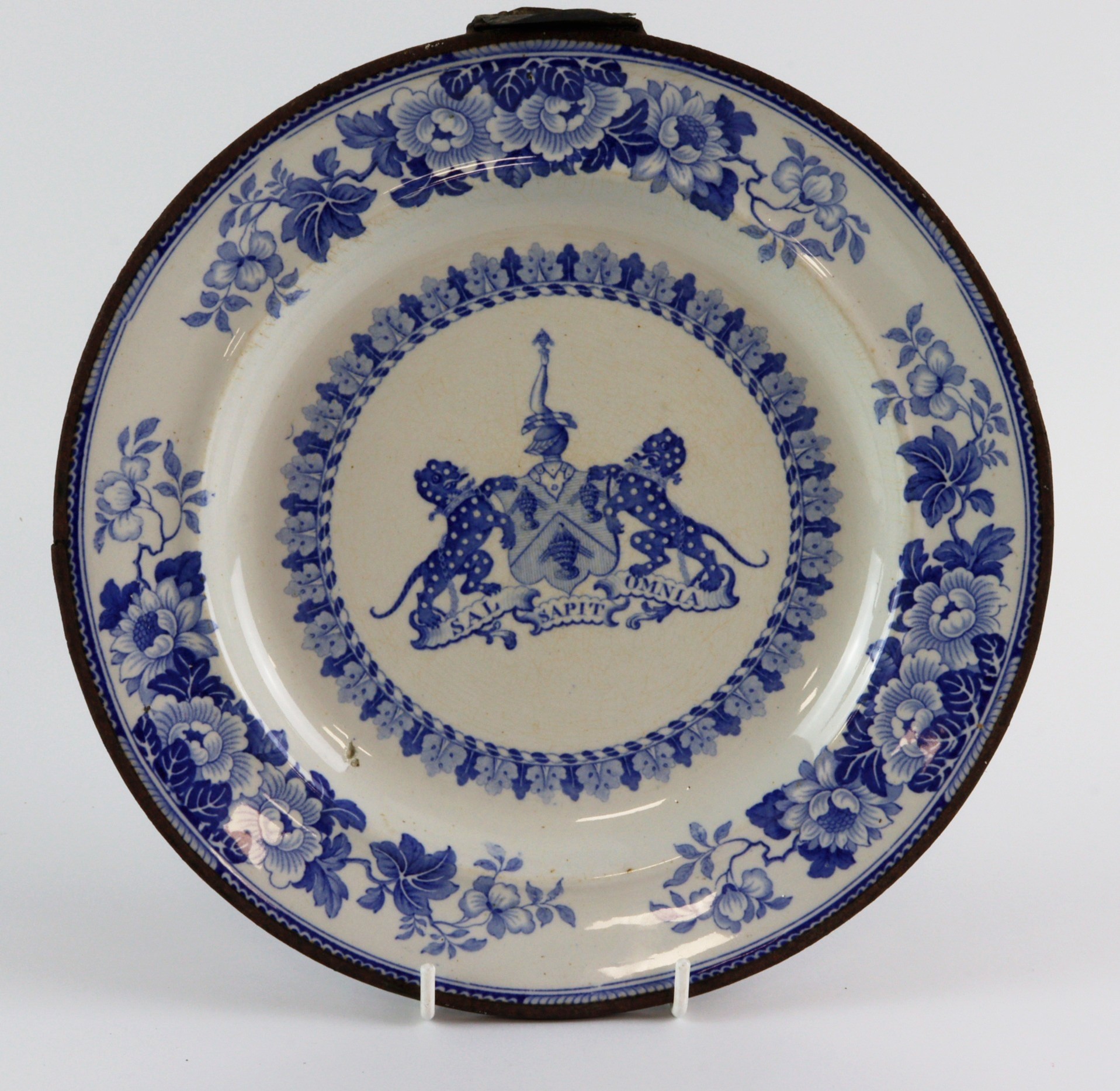 London Livery Co. The Worshipful Company of Salters of the city of London blue & white china & metal warming dish, circa 1827, made by Hicks, Meigh & Johnson (good condition)
