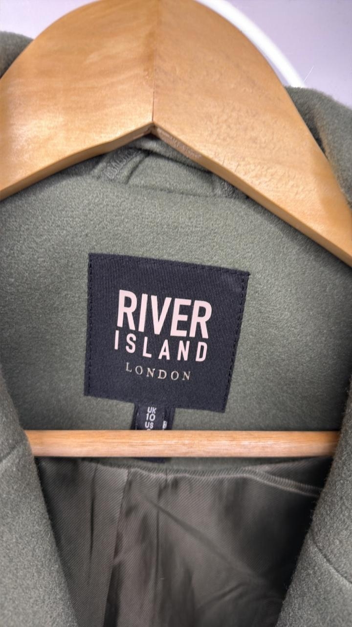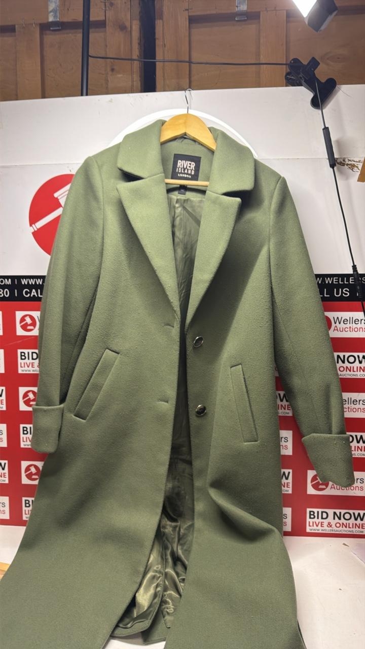 LADIES PRE OWNED RIVER ISLAND LONDON GREEN MIDI COAT/ UK10