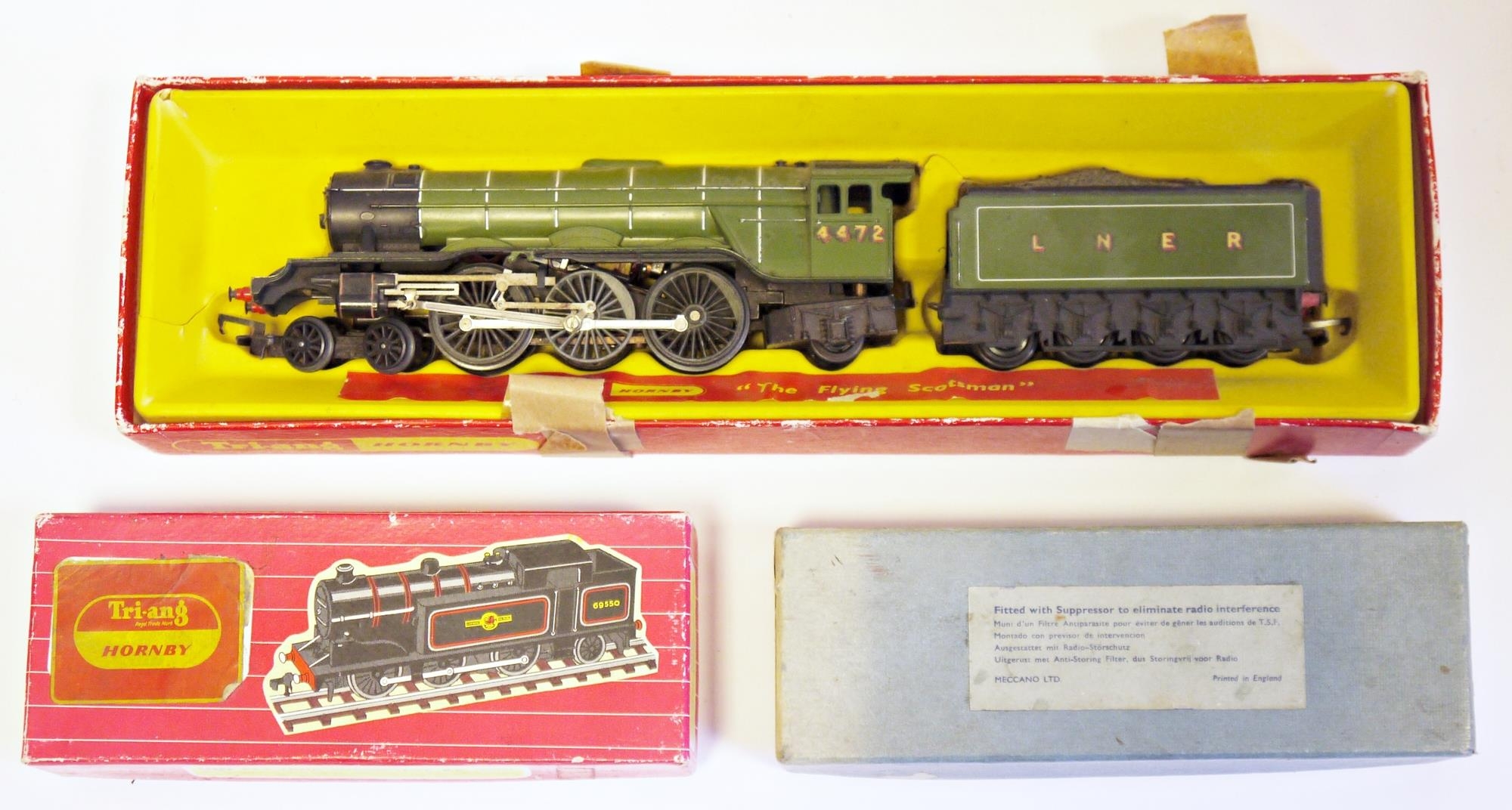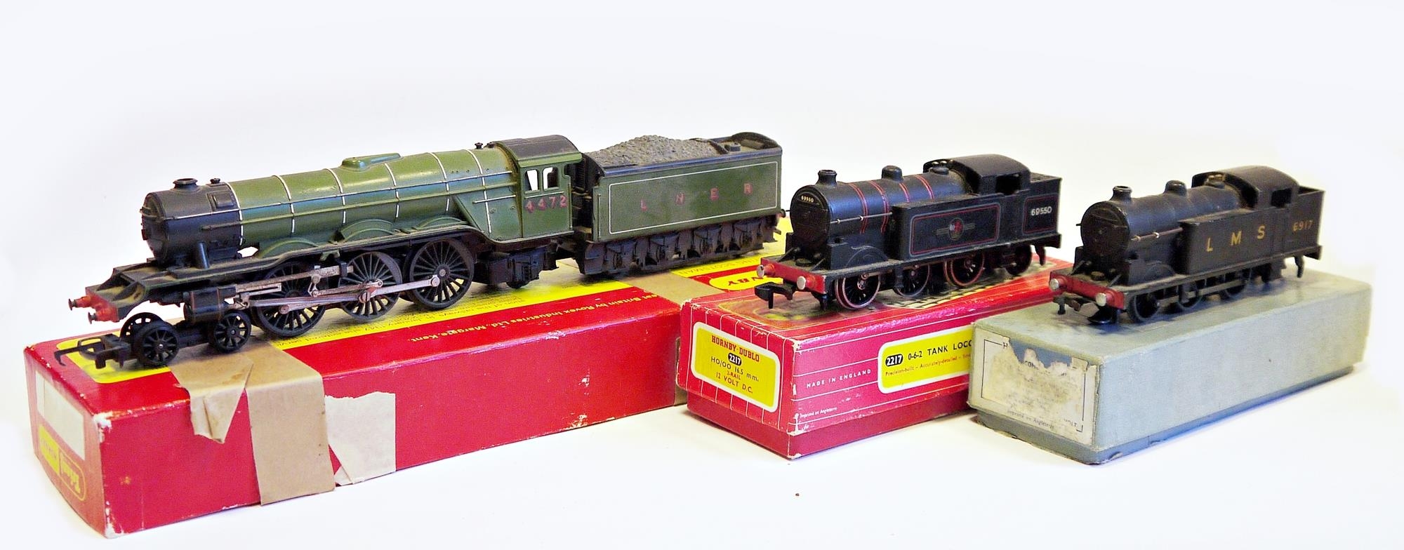 Hornby-Dublo 00 gauge 2217 0-6-2 tank locomotive B.R 2-Rail boxed together with a Hornby- Dublo 00 gauge EDL7 0-6-2 tank locomotive with L.M.S. livery, boxed, and EDL 7 Tank Locomotive LMS69817 (3)