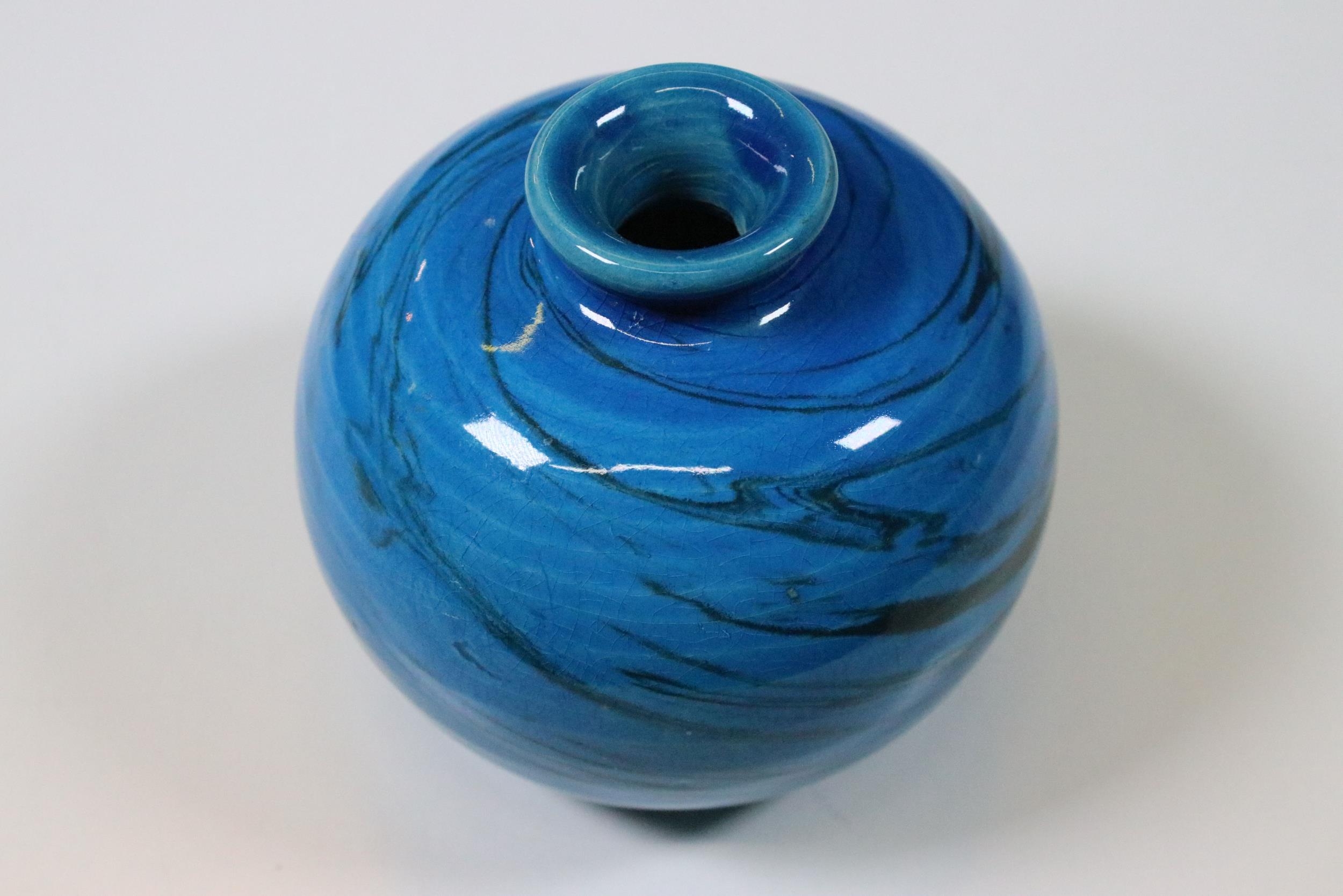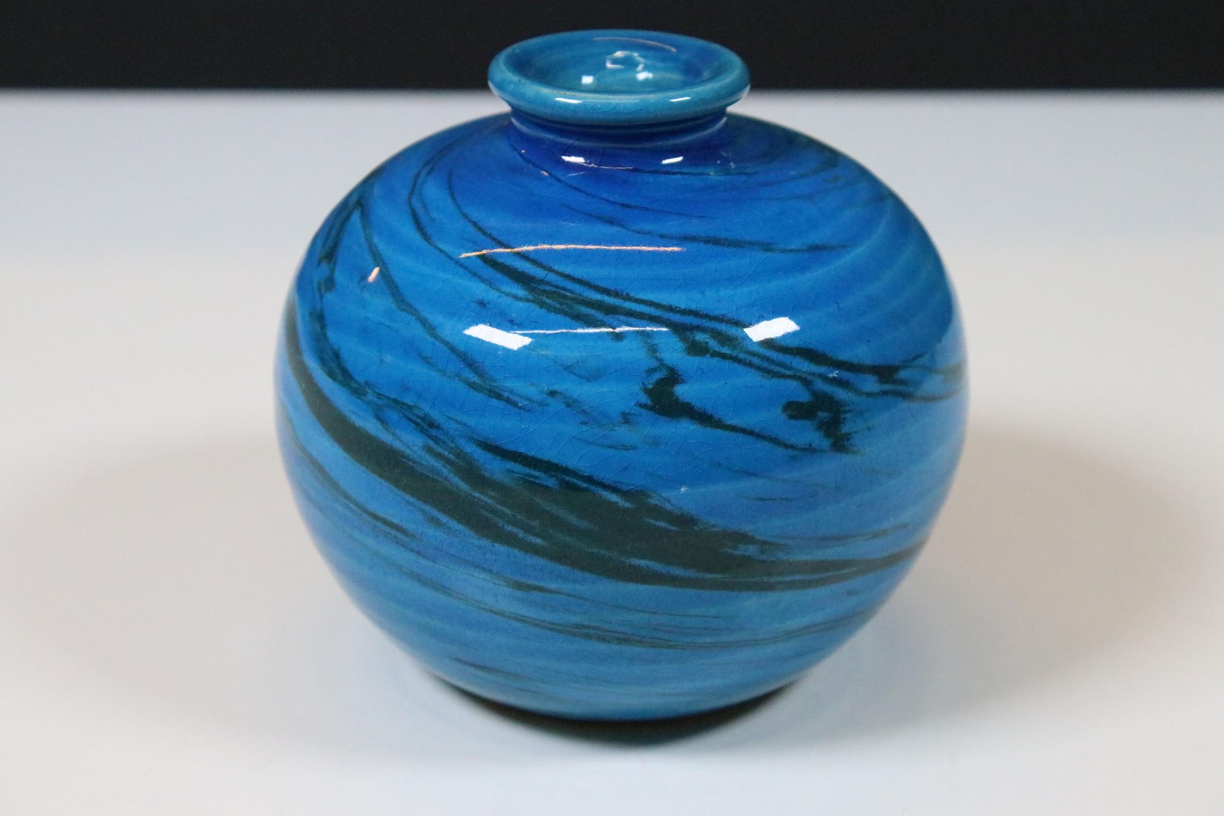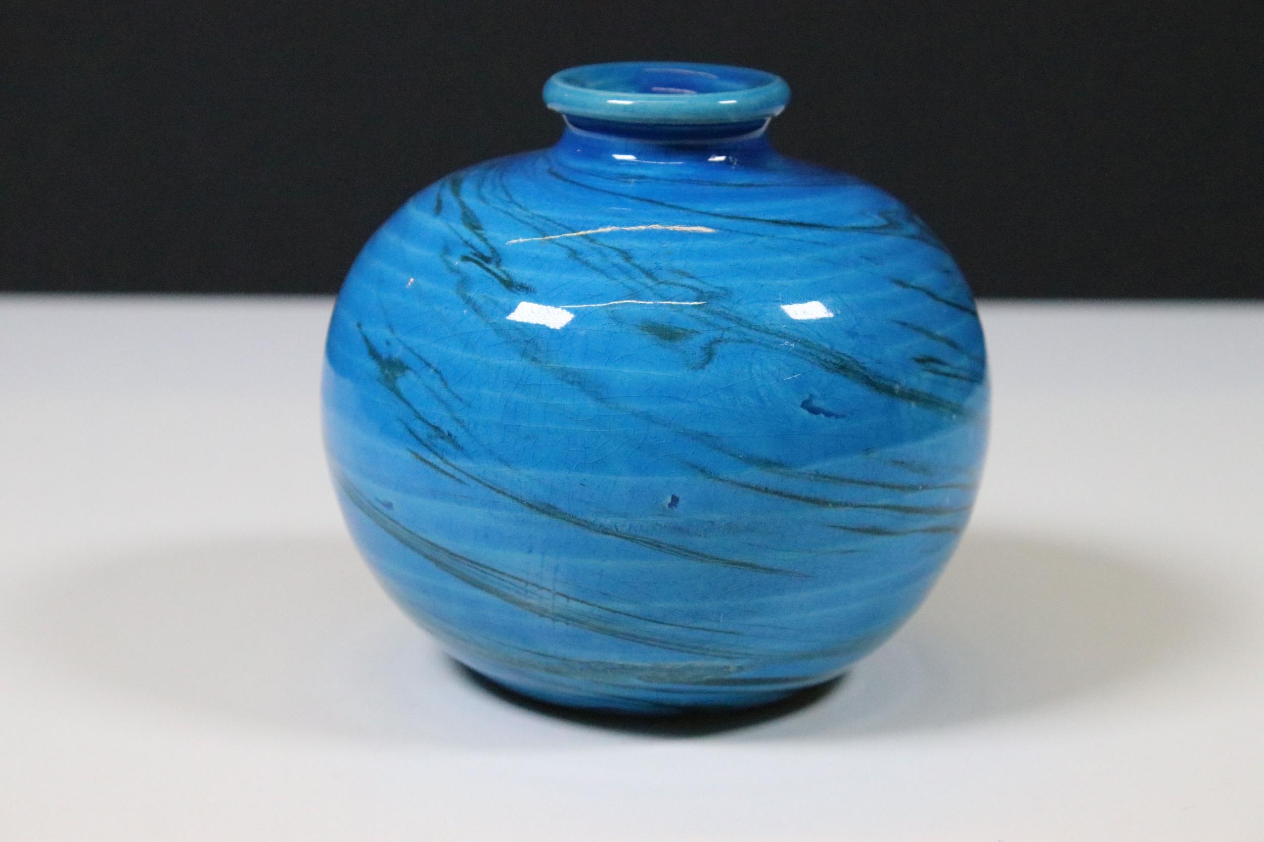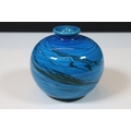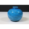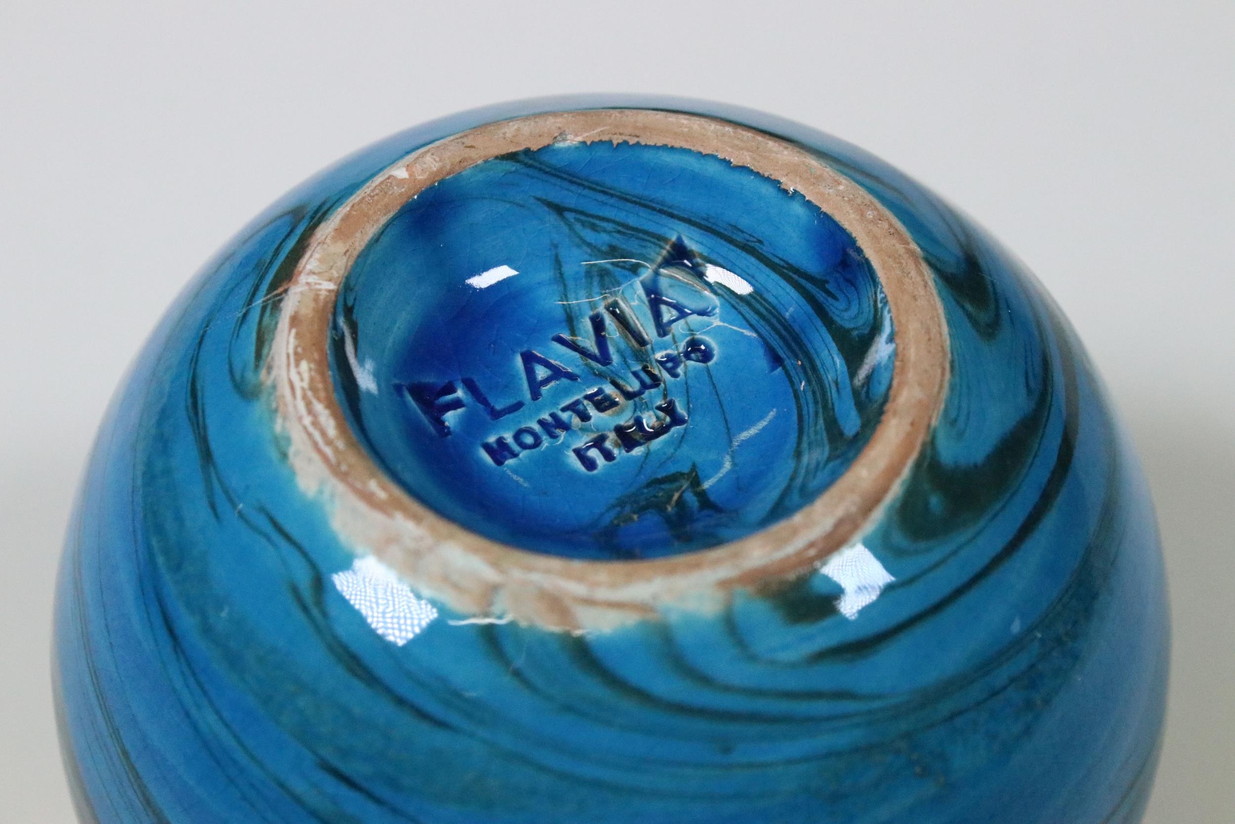Mid 20th Century Flavia Montelupo Italy ceramic blue glazed swirl squat vase, marked to base