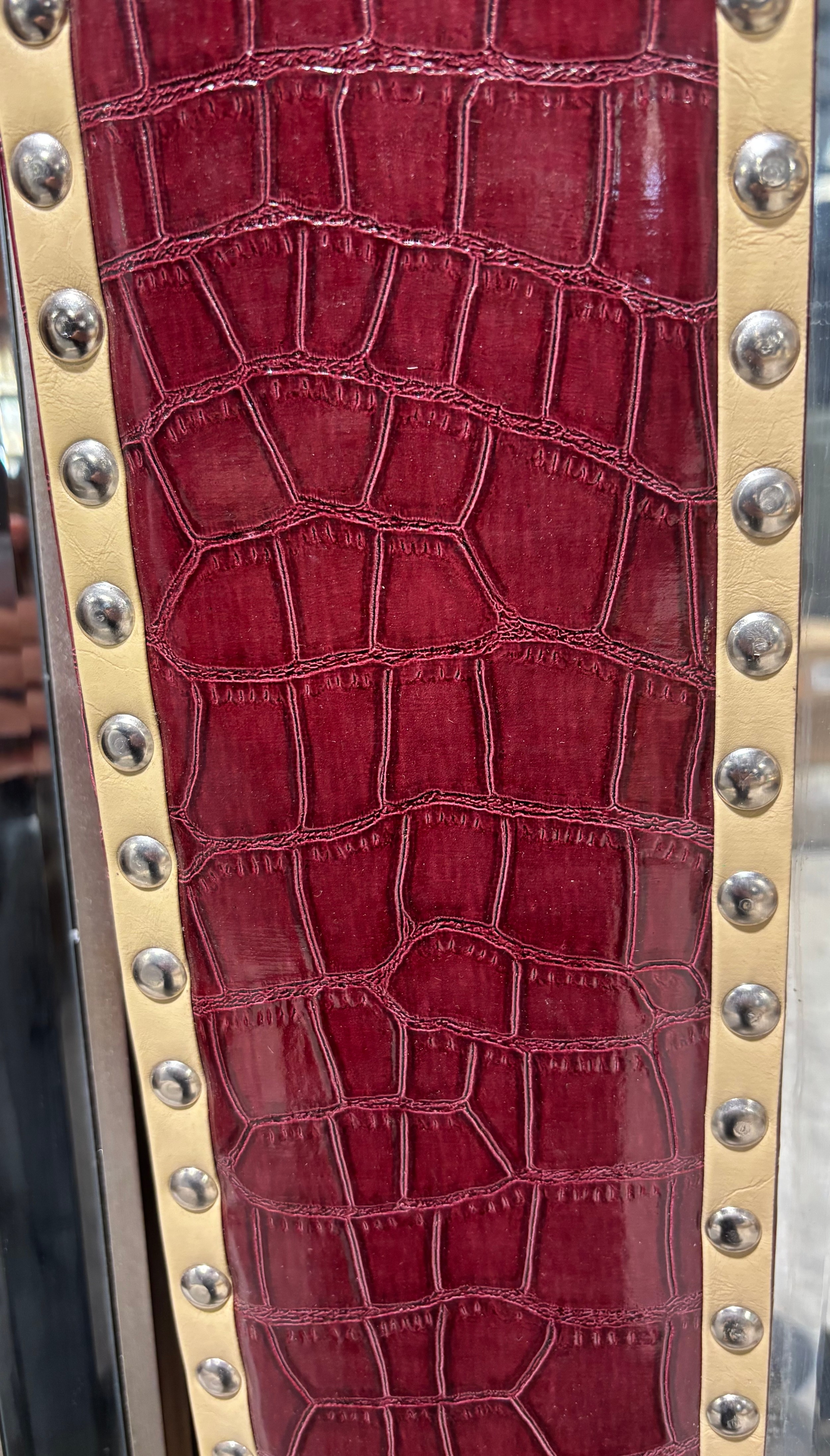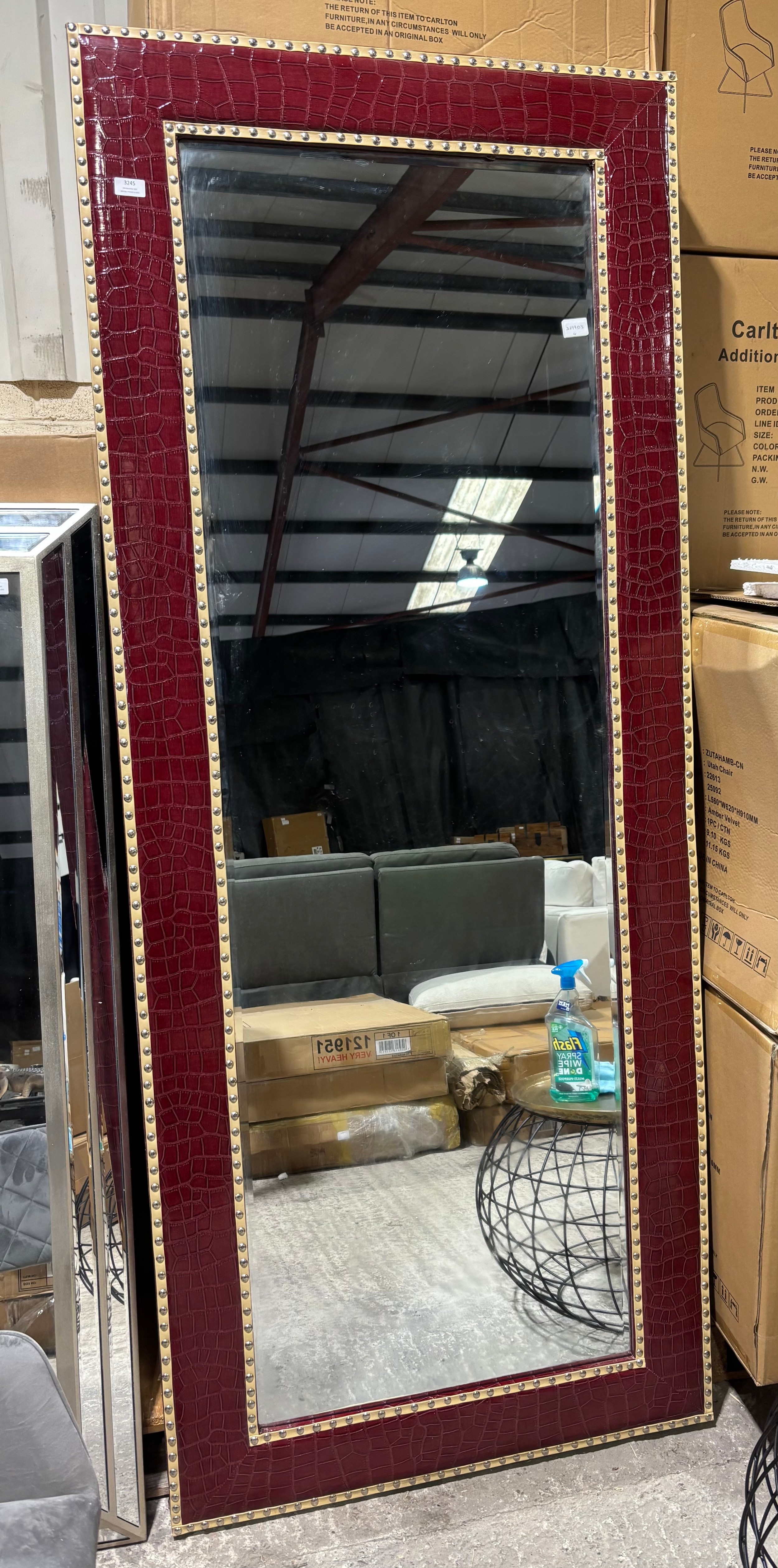 A red leather large mirror