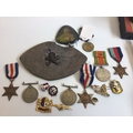 A Collection of II world war medals France German Stars badges Victory and Defence medals a Russian medal and other oddments.