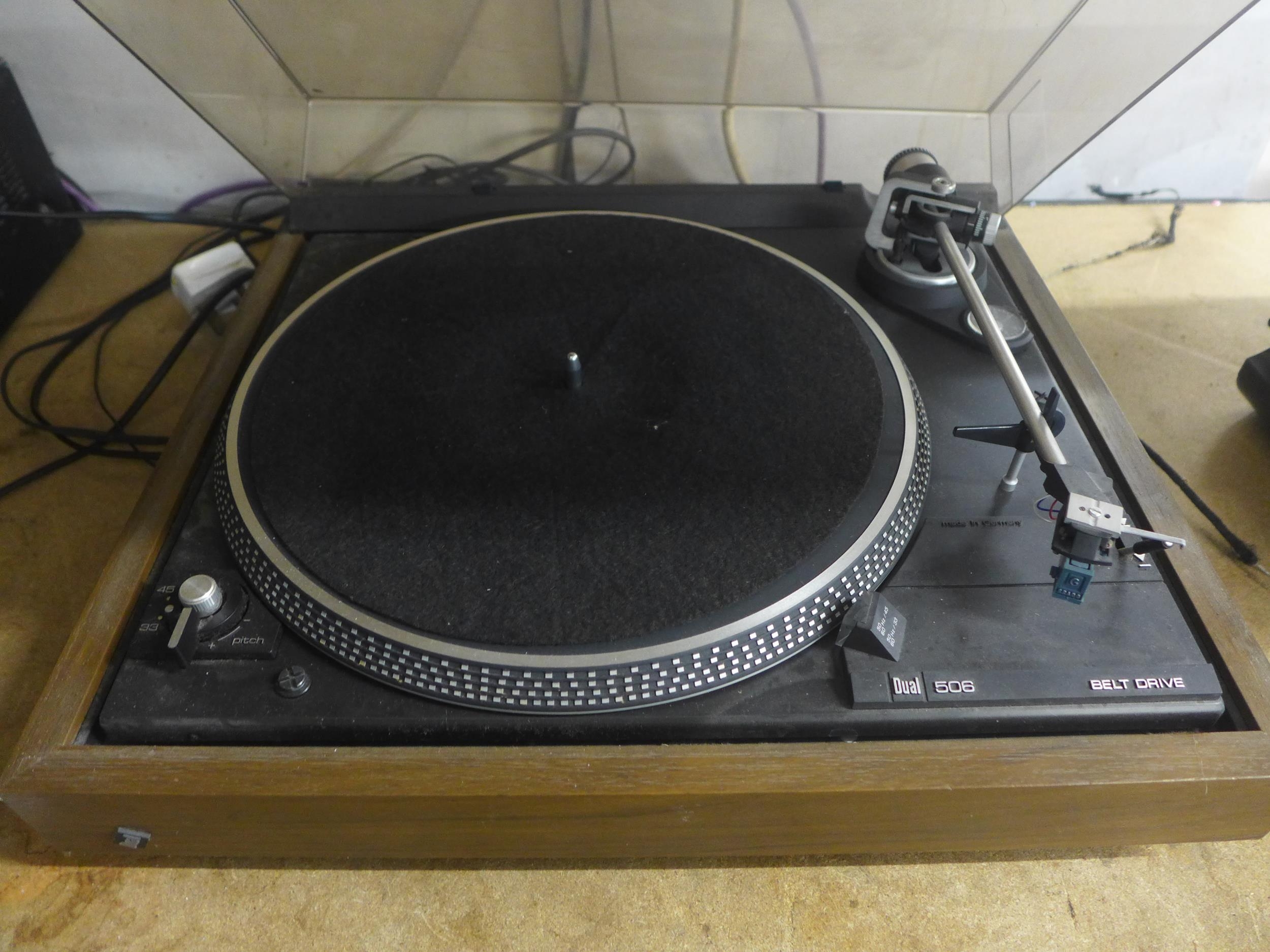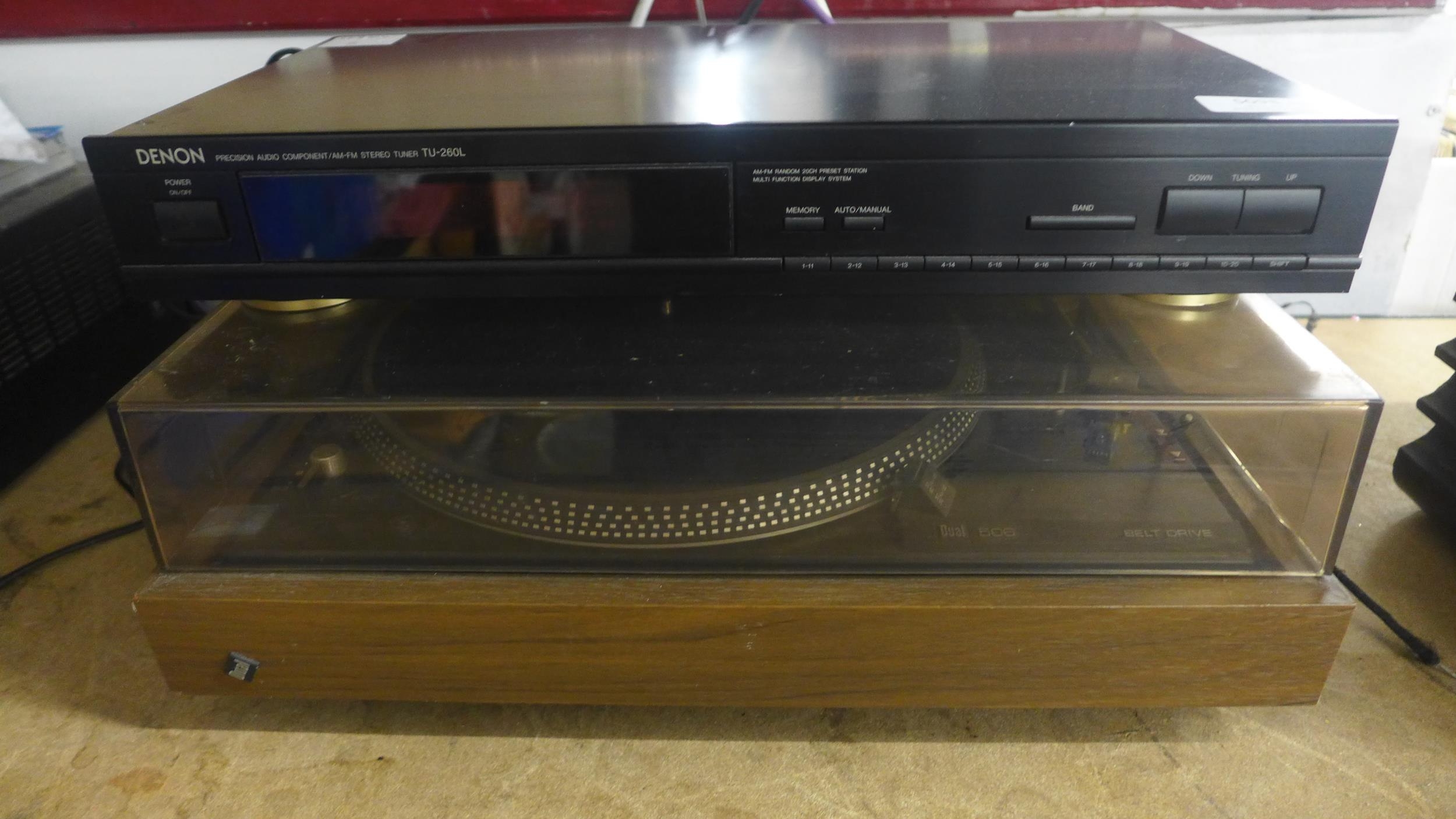 A Denon Precision audio component/AM-FM stereo tuner - model TU-260L and a dual 506 belt driven turntable