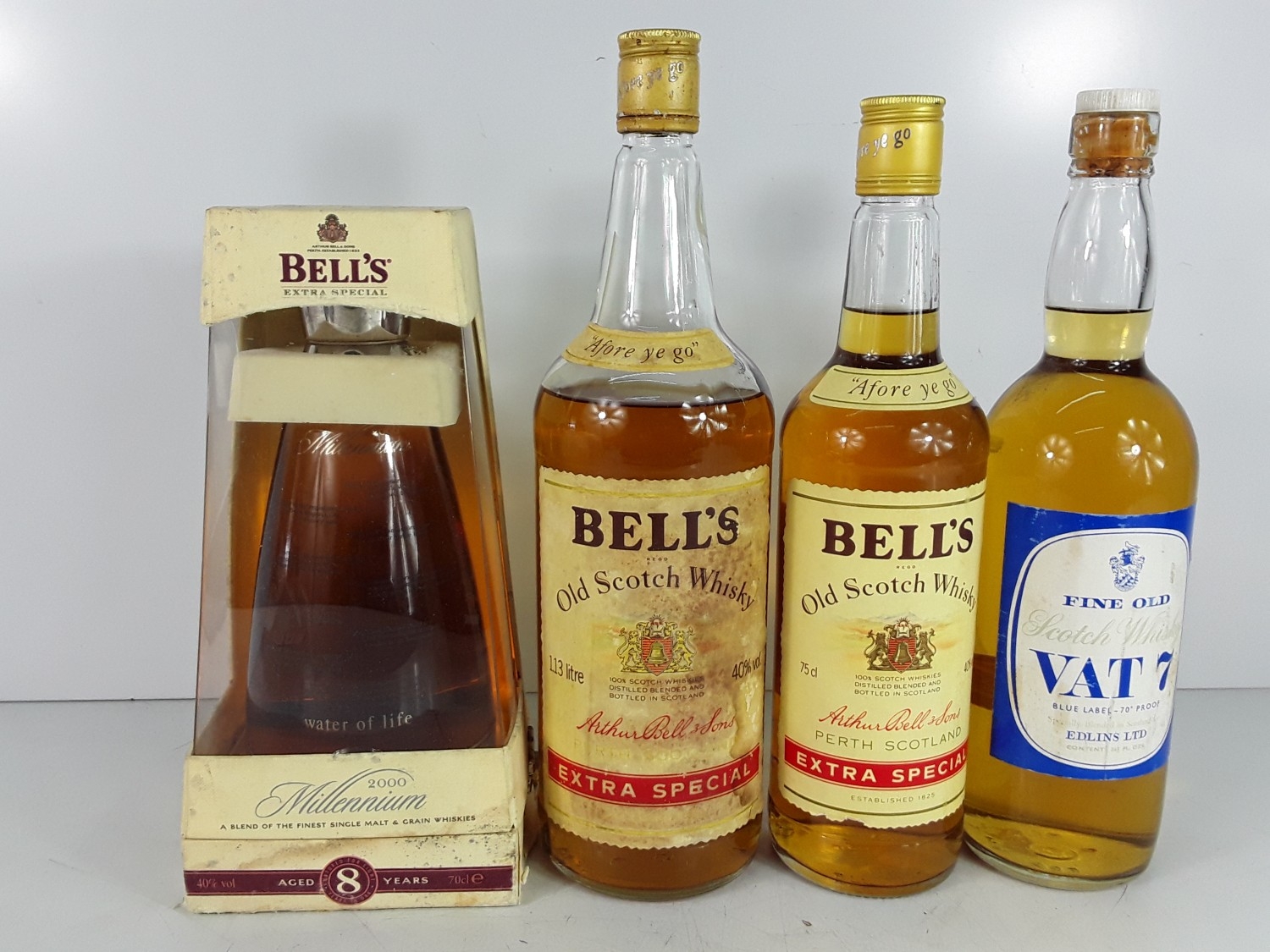 Bell's Extra Special,75cl,40%,1980s,one Bell's 1,13 litre bt Extra Special,40%,1980s and one bt Fine Old VAT 7 Whisky Blue Label70 Proof.