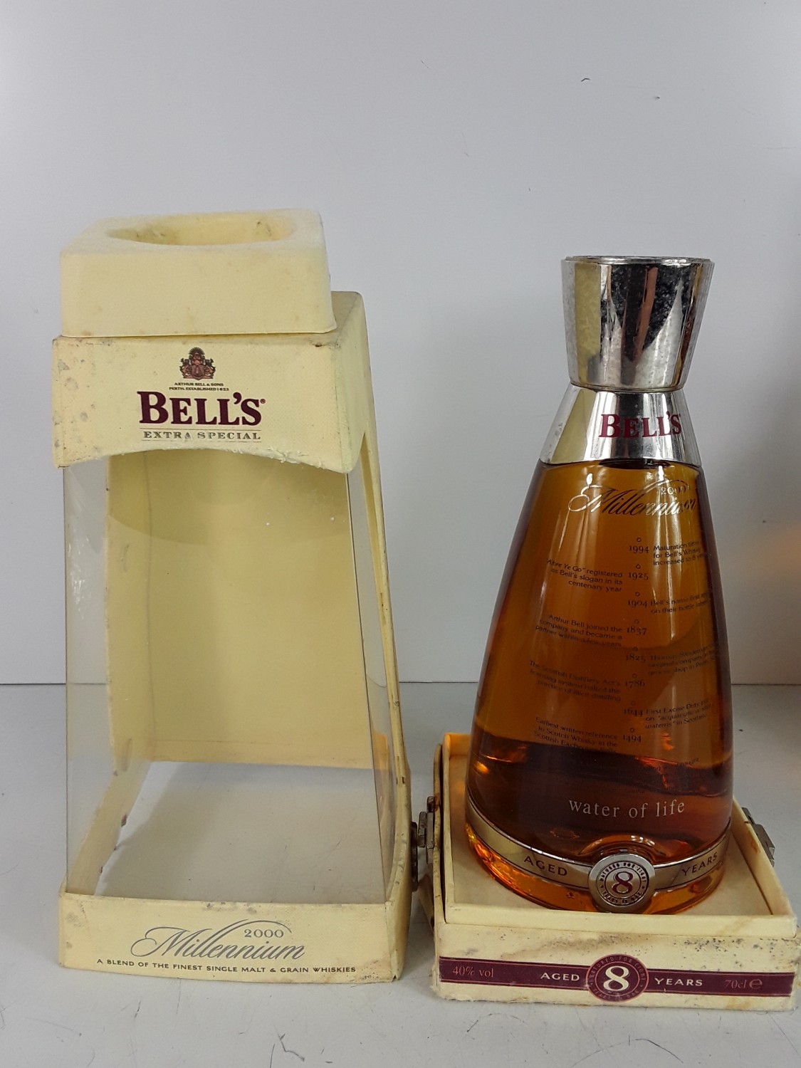 Four bts,one Bell's Millennium 2000 aged 8 years,70cl,40%,one bt