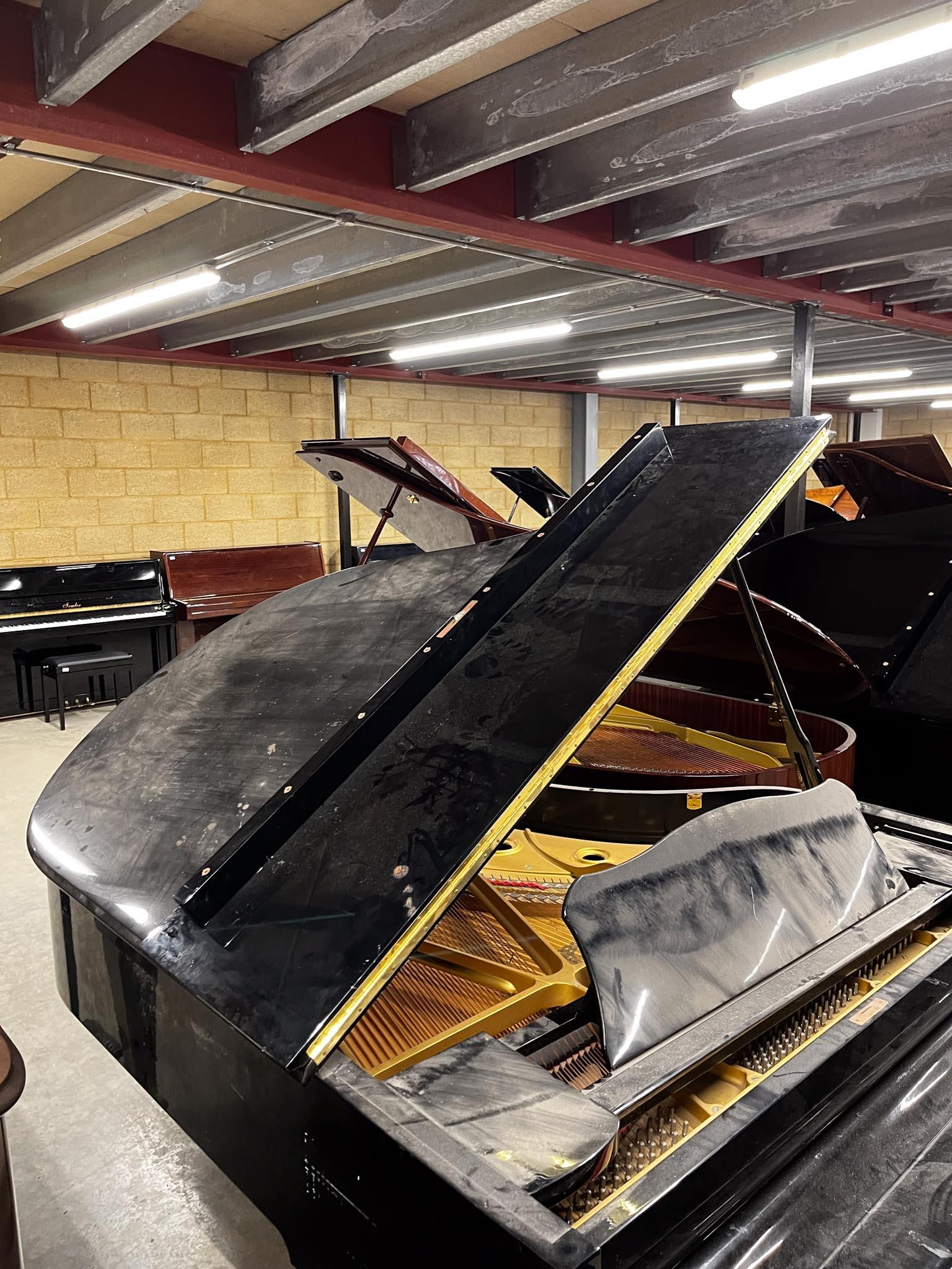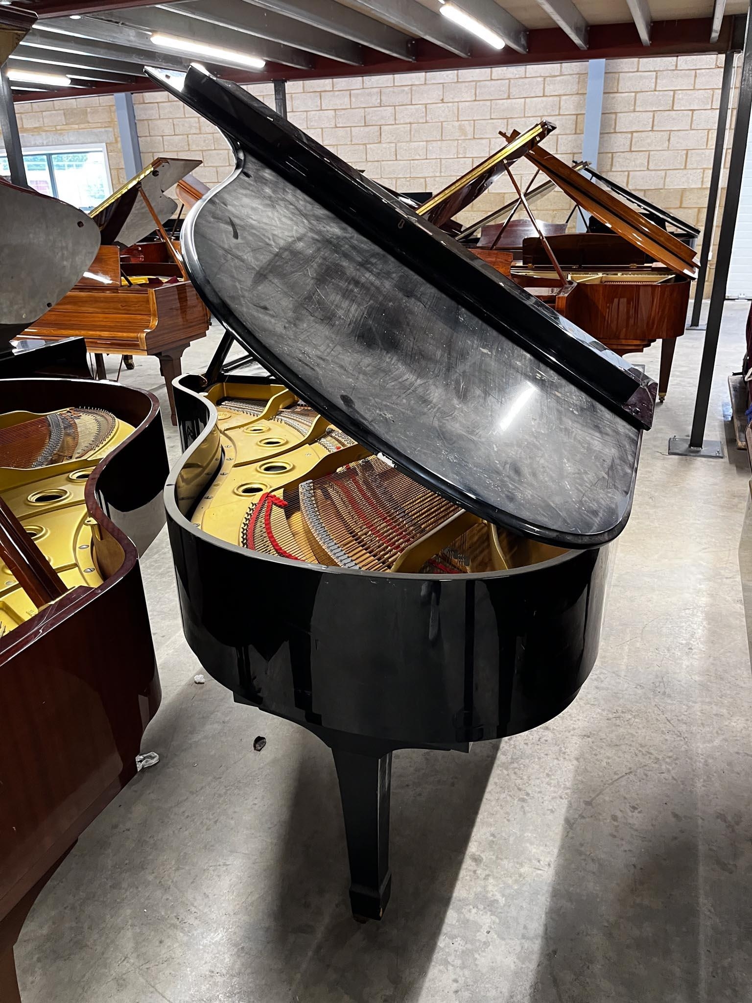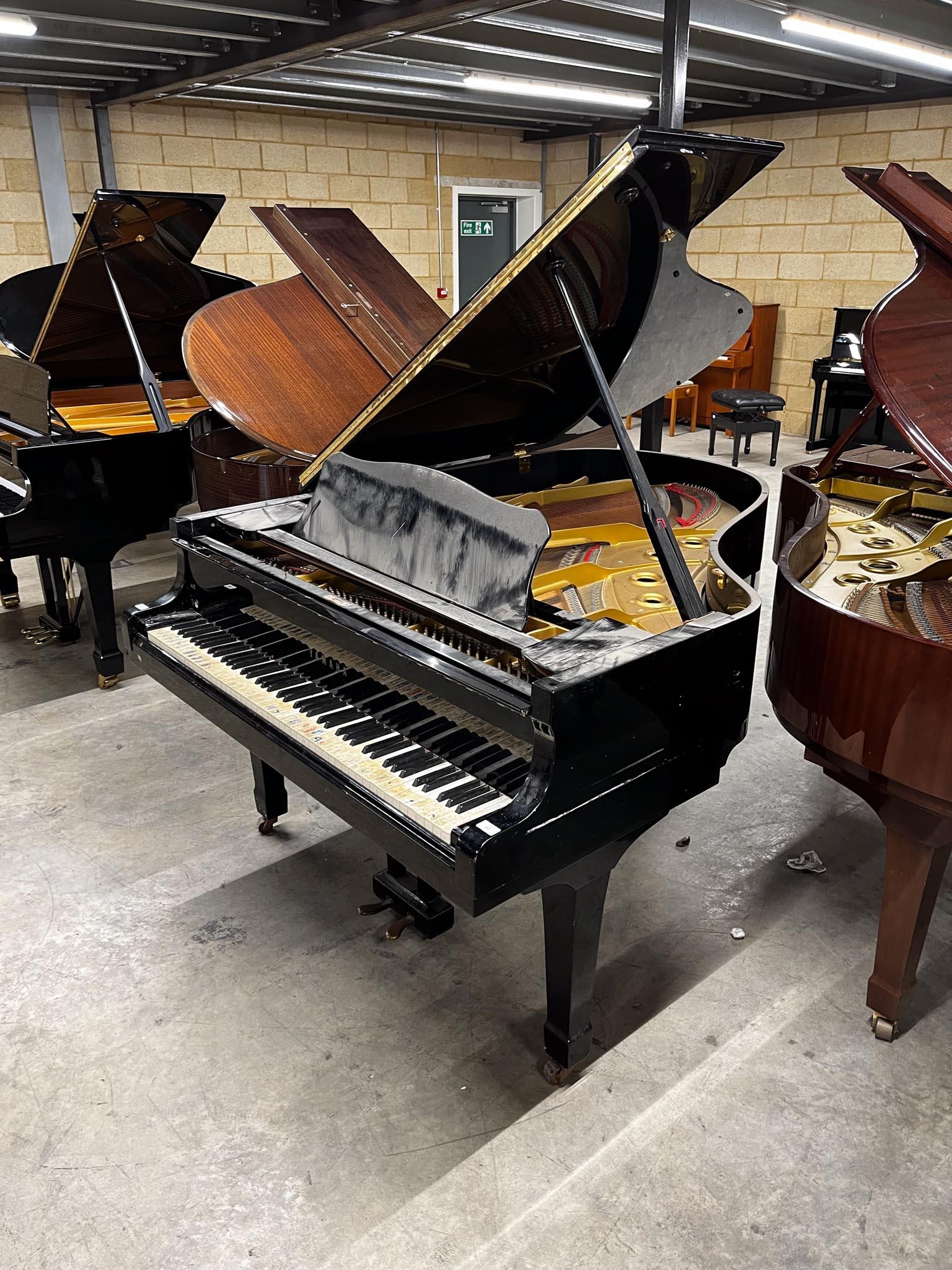 A 6ft 1in Model C3 grand piano in a bright ebonised case on square tapered legs.