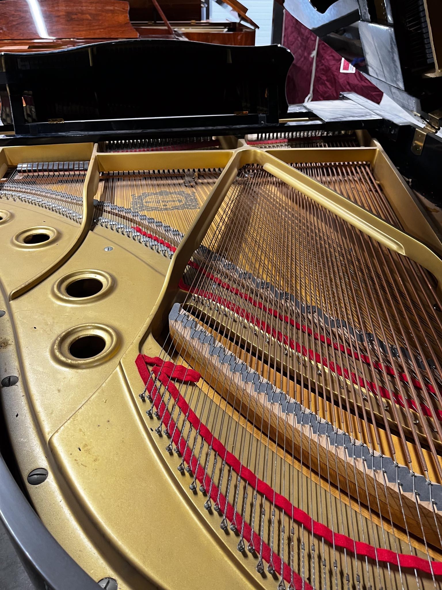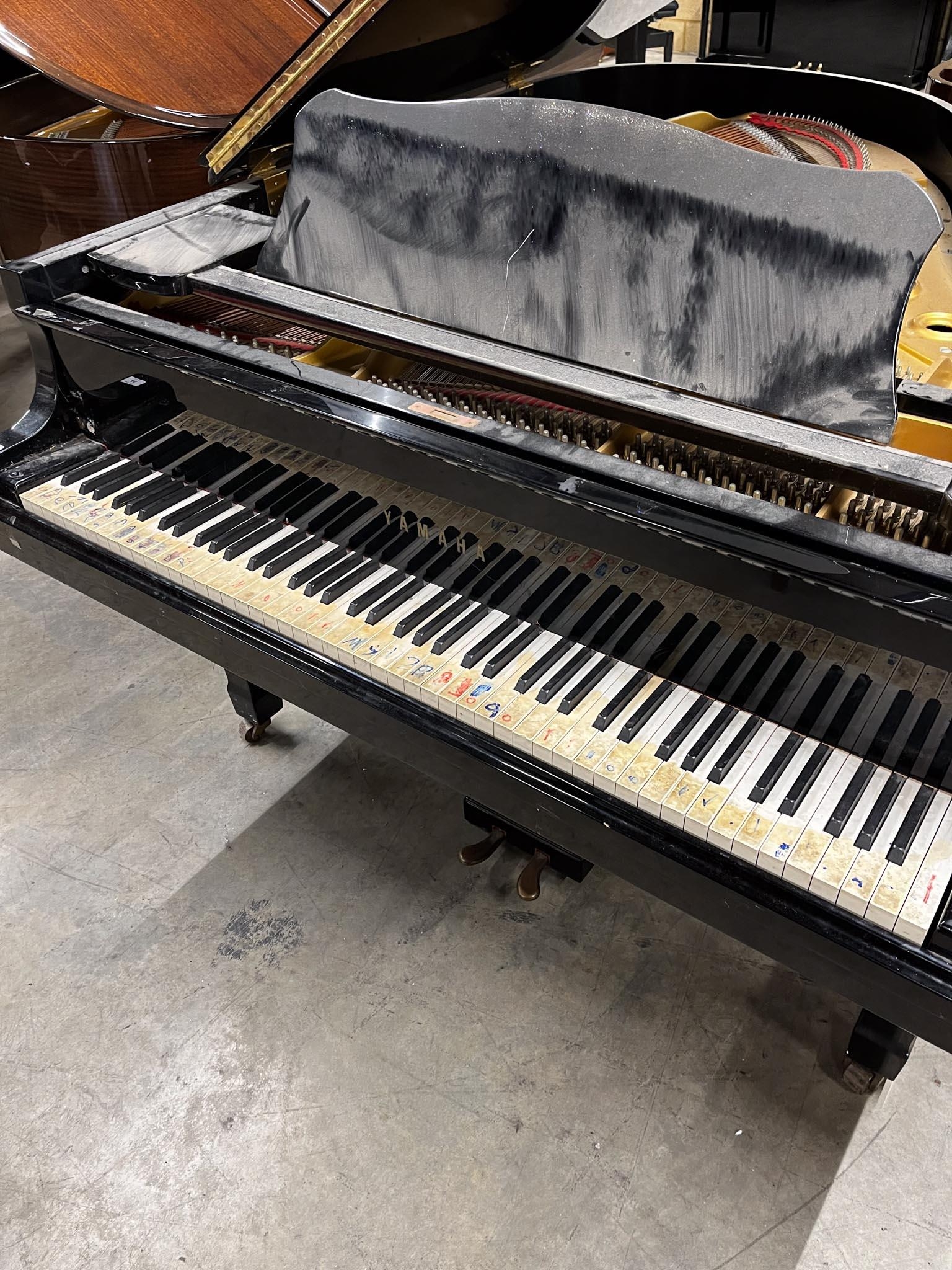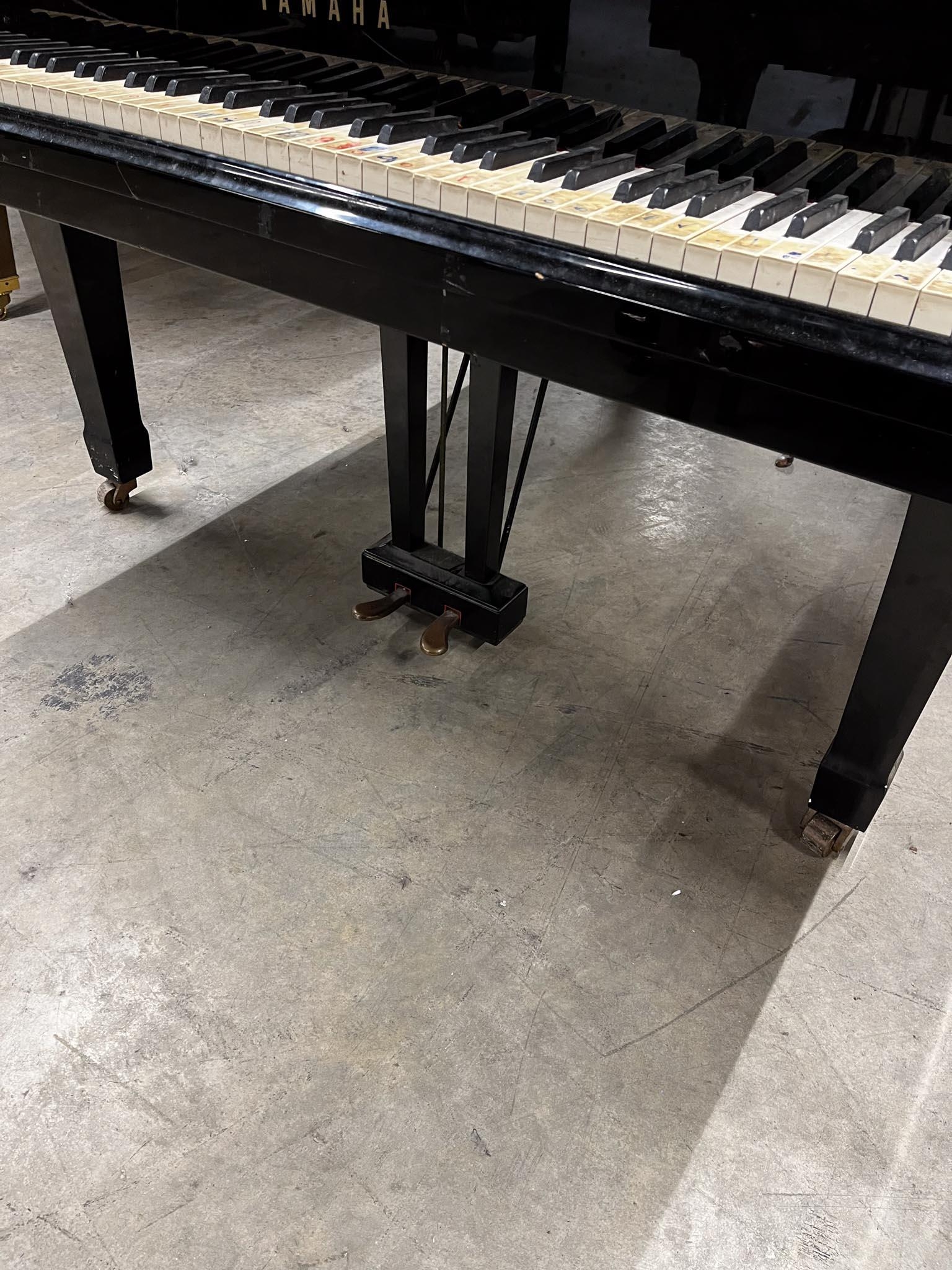 A 6ft 1in Model C3 grand piano in a bright ebonised case on square tapered legs.