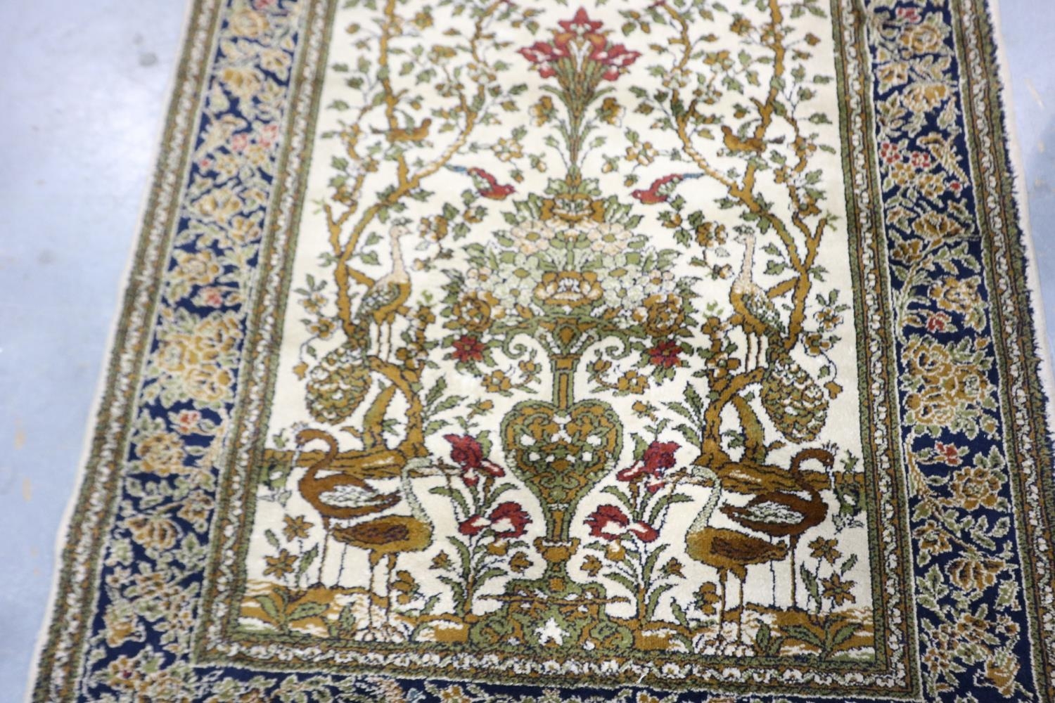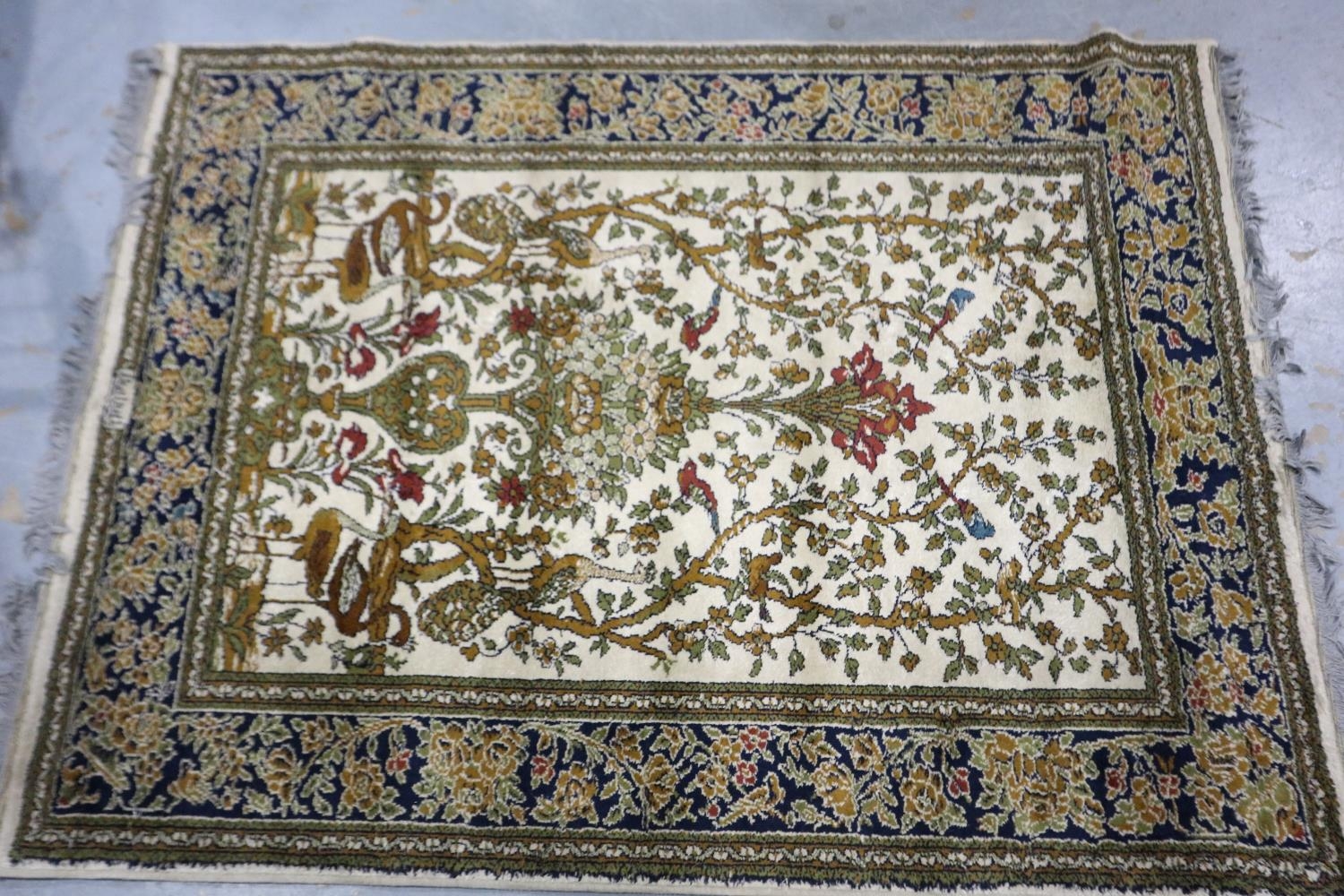 Blue ground woollen floor rug depicting the Tree of Life. Not available for in-house P&P