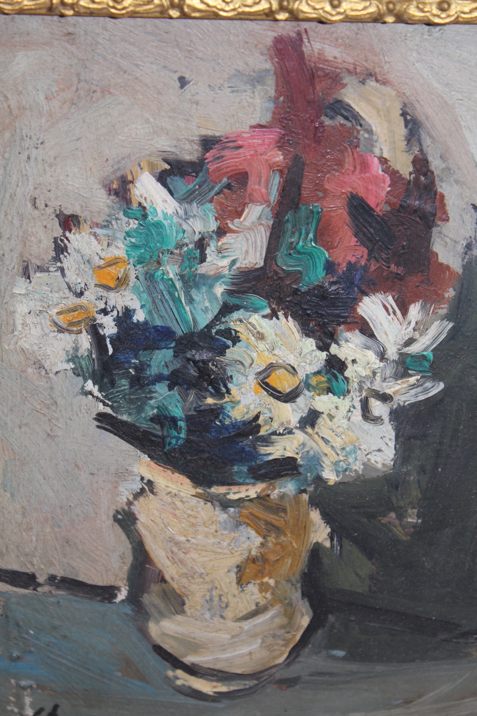 In the manner of Charles Camoin, Impressionist oil on board, summer flowers in a vase, bearing monogram, 21.5 x 15cm, gilt framed