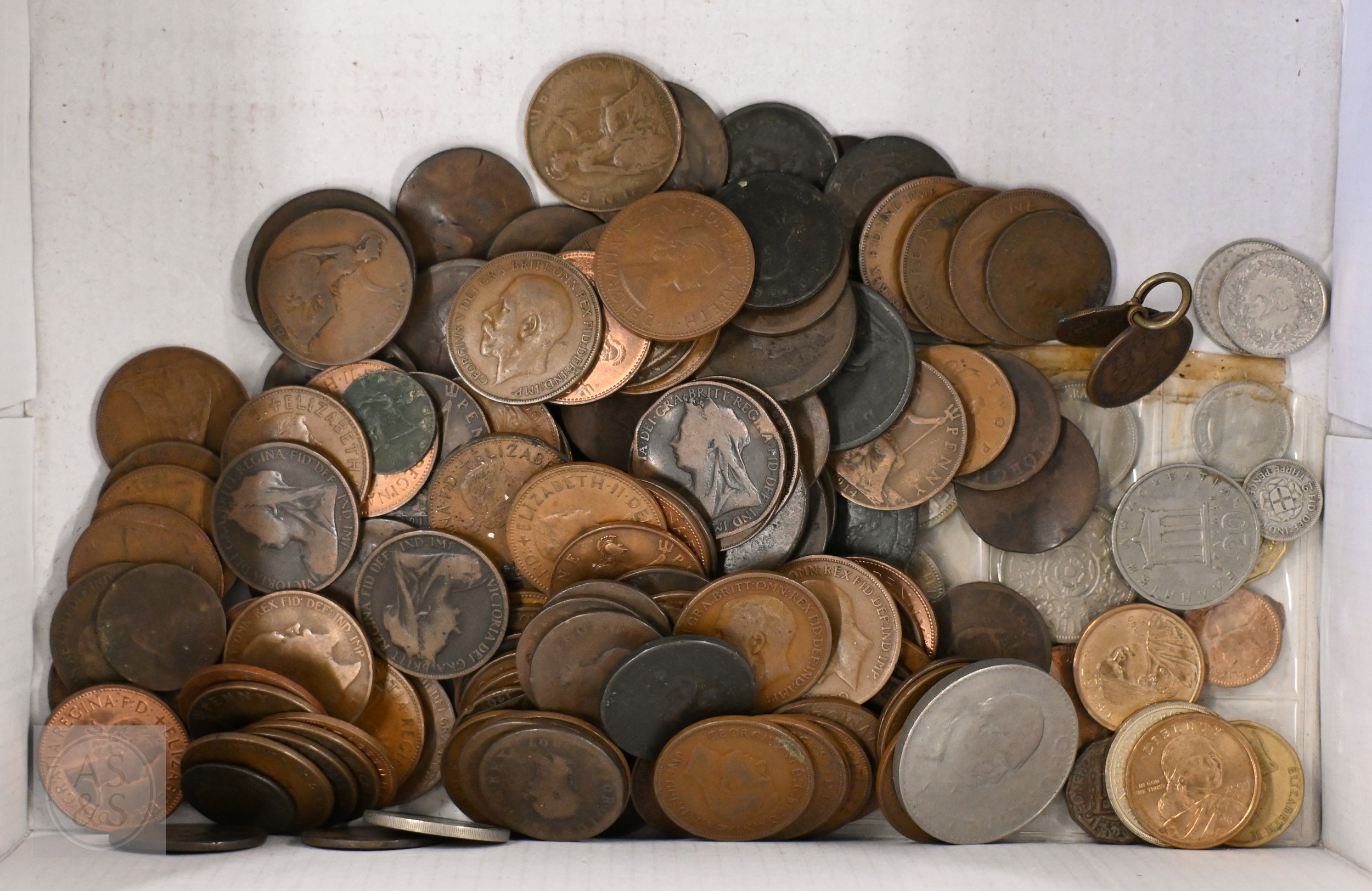 A quantity of coins, including Royal Mint editions including 2015 fine silver twenty pound coin, Georgian and later copper coins, commemorative crowns, etc (box)