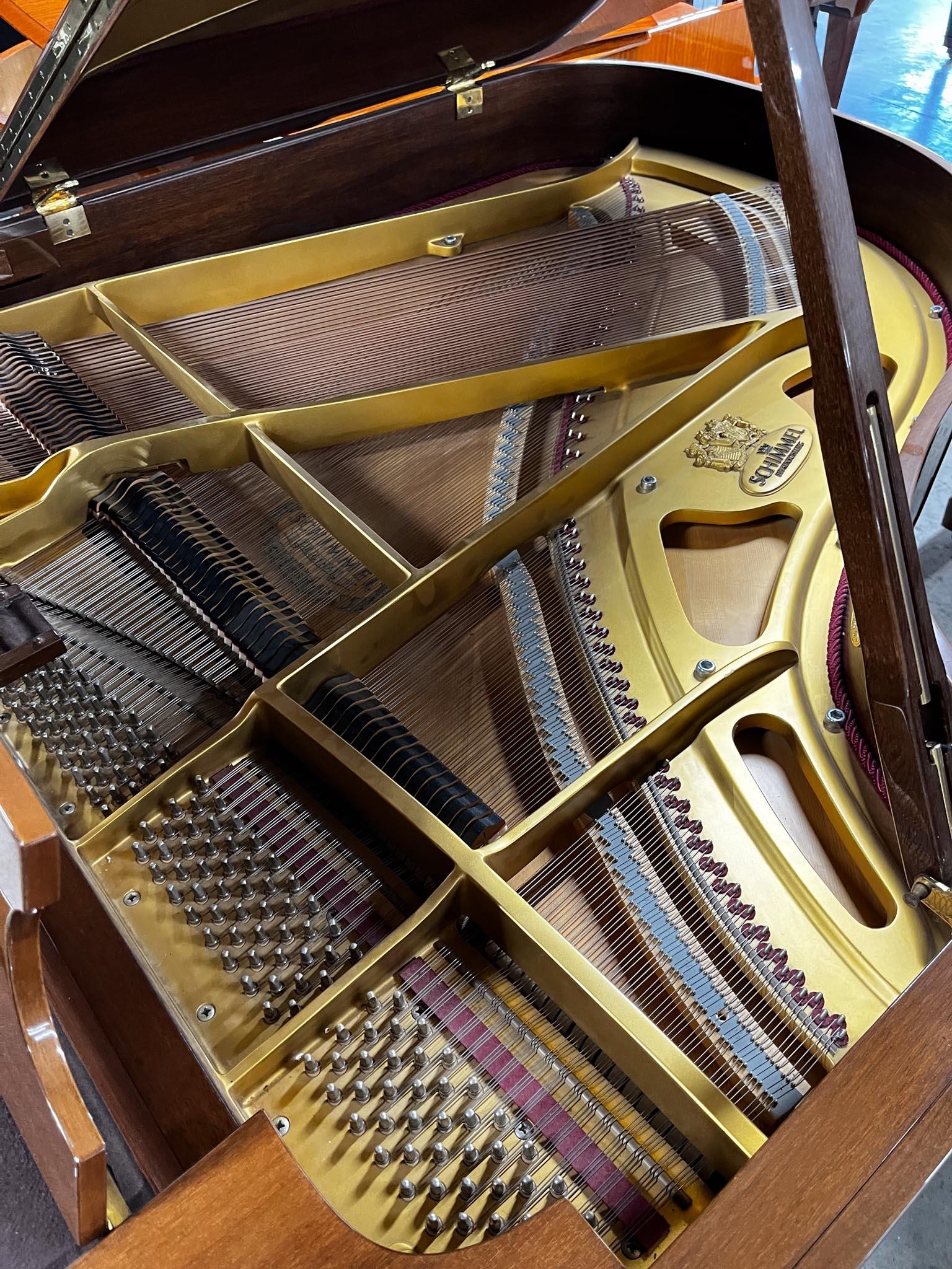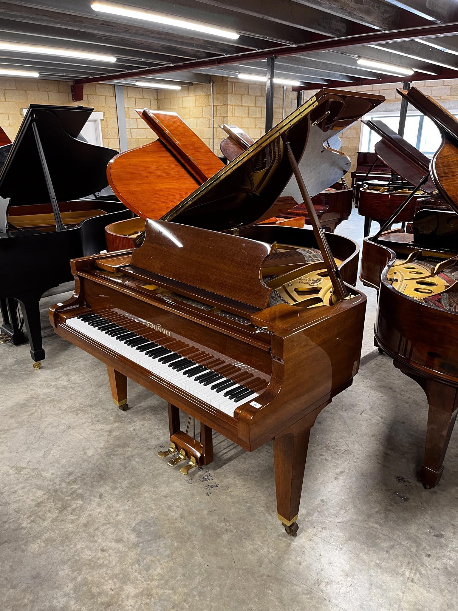 A 5ft 8in Model 174T grand piano in bright walnut case on square tapered legs.