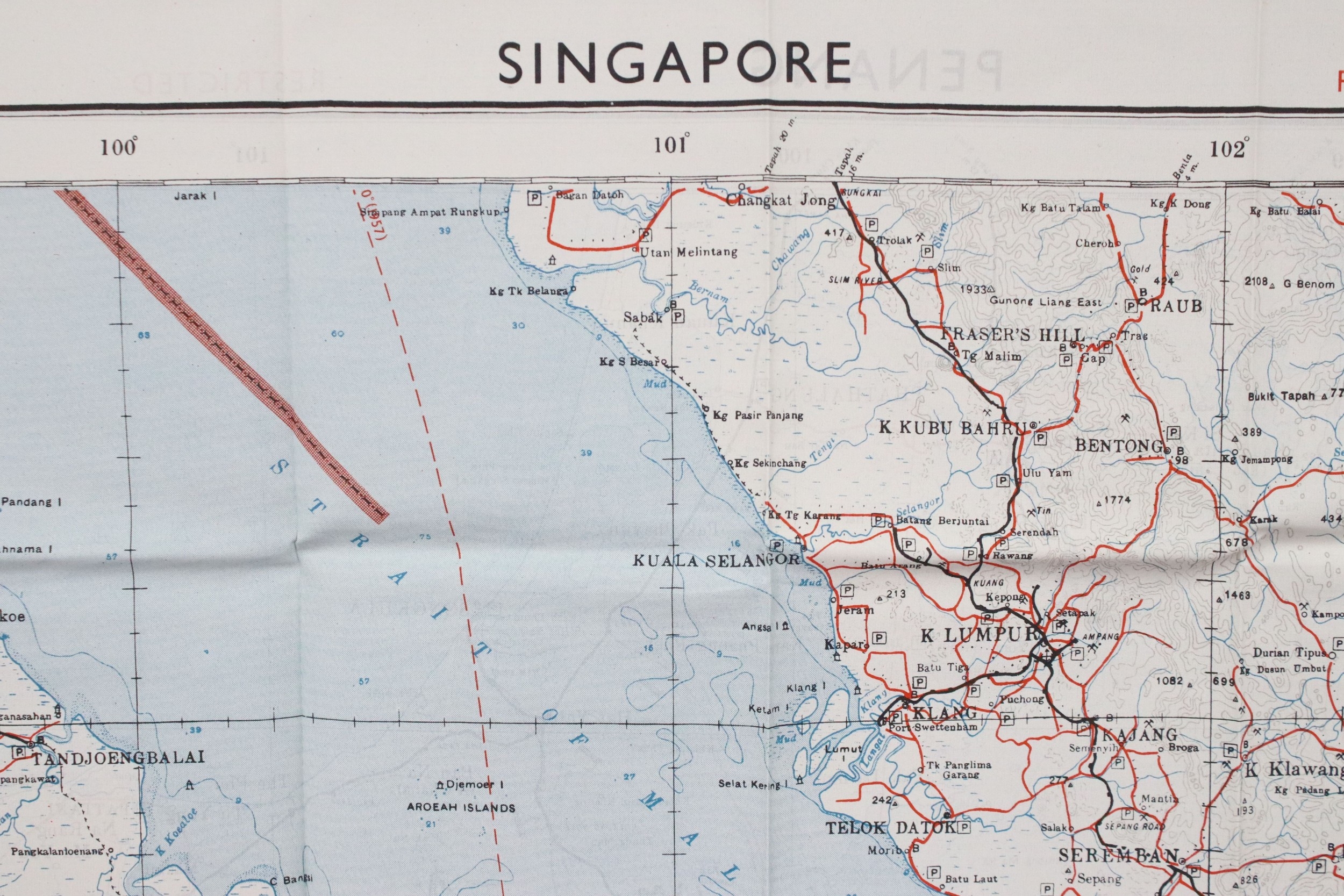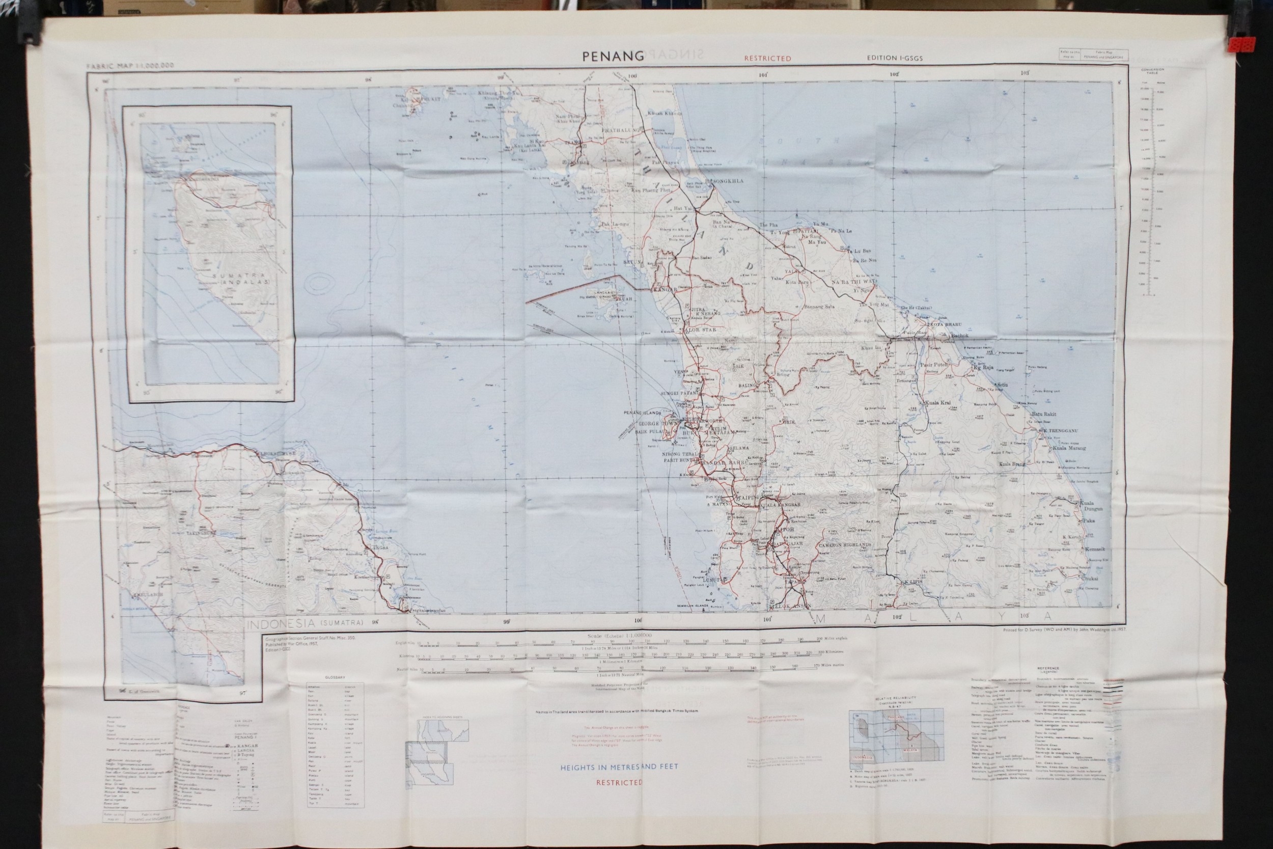 A Royal Air Force / RAF silk escape map covering Thailand, Singapore, Malaysia, Indonesia, Phuket, Langkawi, Penang, Kuala Lumpur (1)