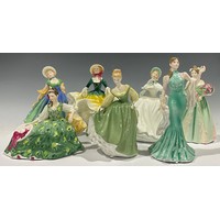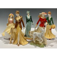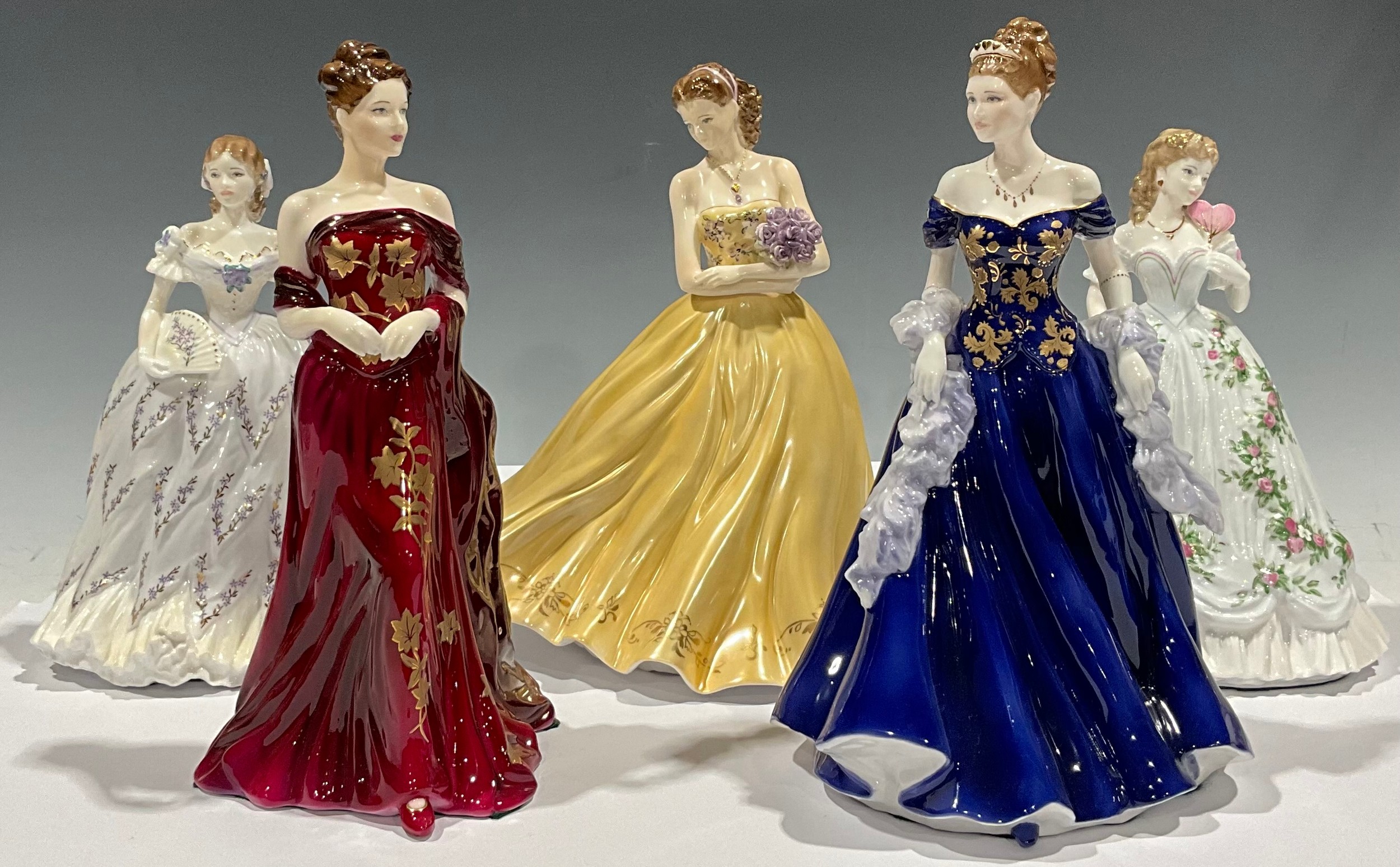 A Royal Worcester figure, for Compton & Woodhouse, A Golden Moment, CW520, Anniversary Figurine of the Year 2001; others, The Last Waltz, limited edition 8,477/12,500; Zoe, CW633, Figurine of the Year 2003; Lauren, CW524, Figurine of the Year 2001; Queen of Hearts, limited edition 9,411/12,500 (5)