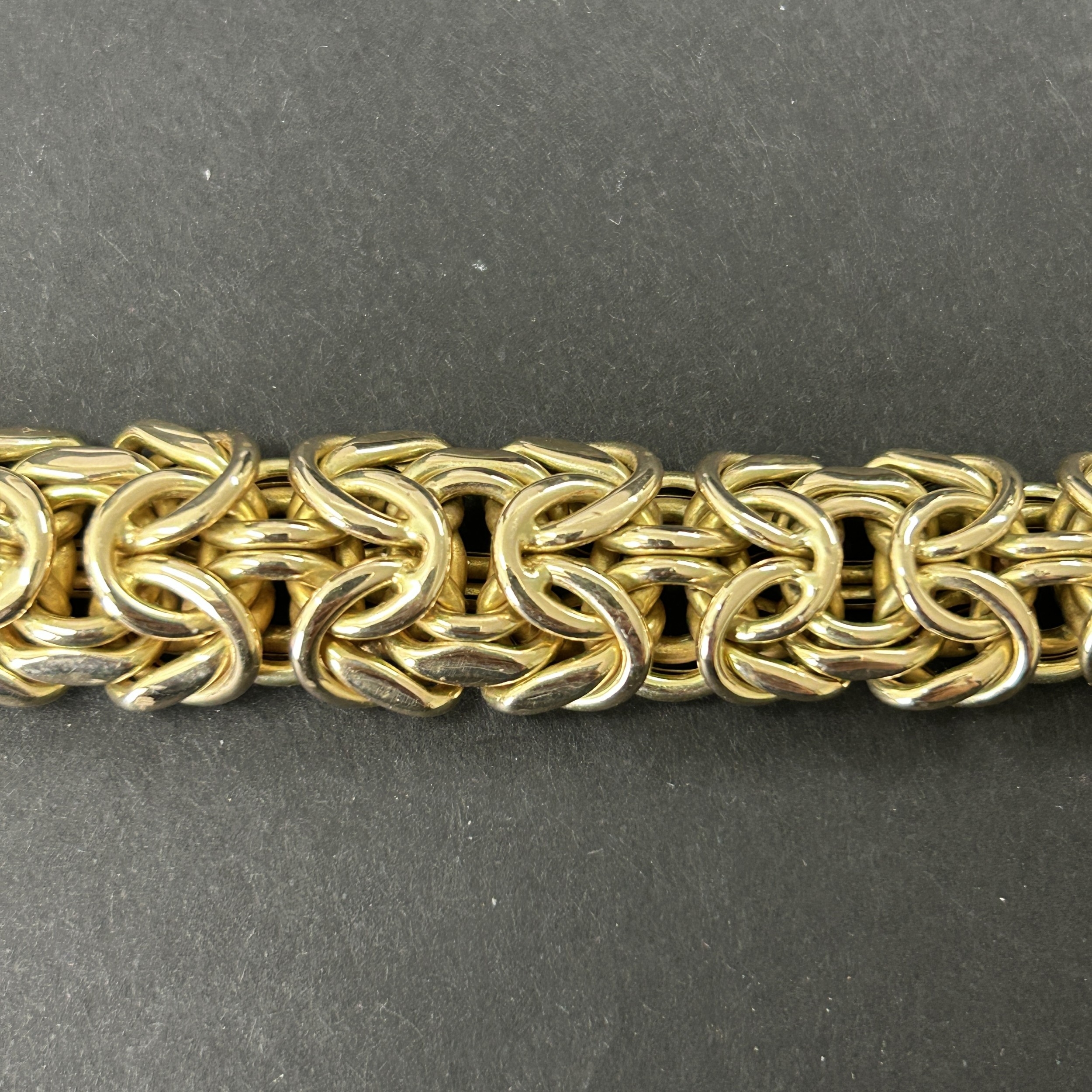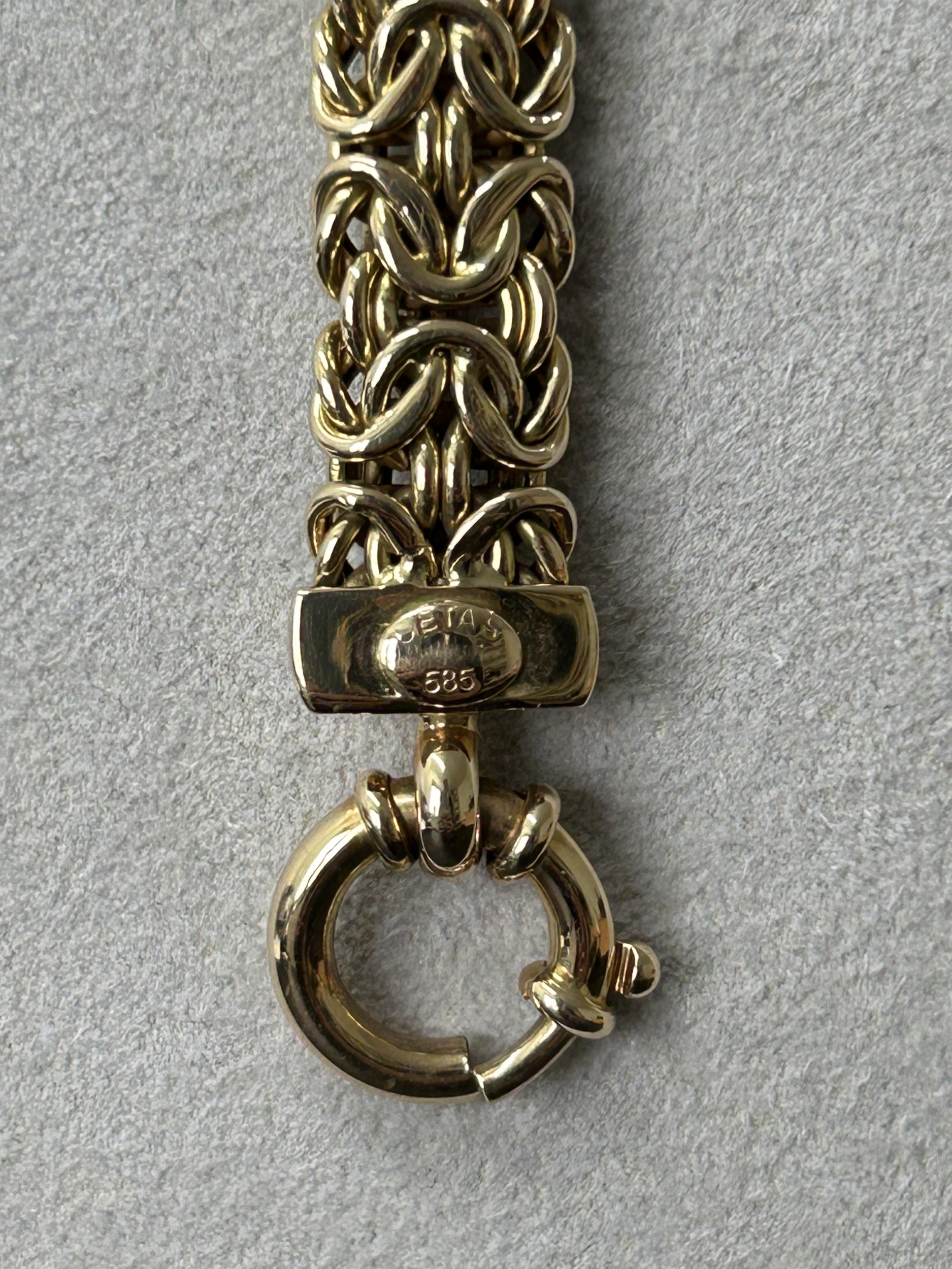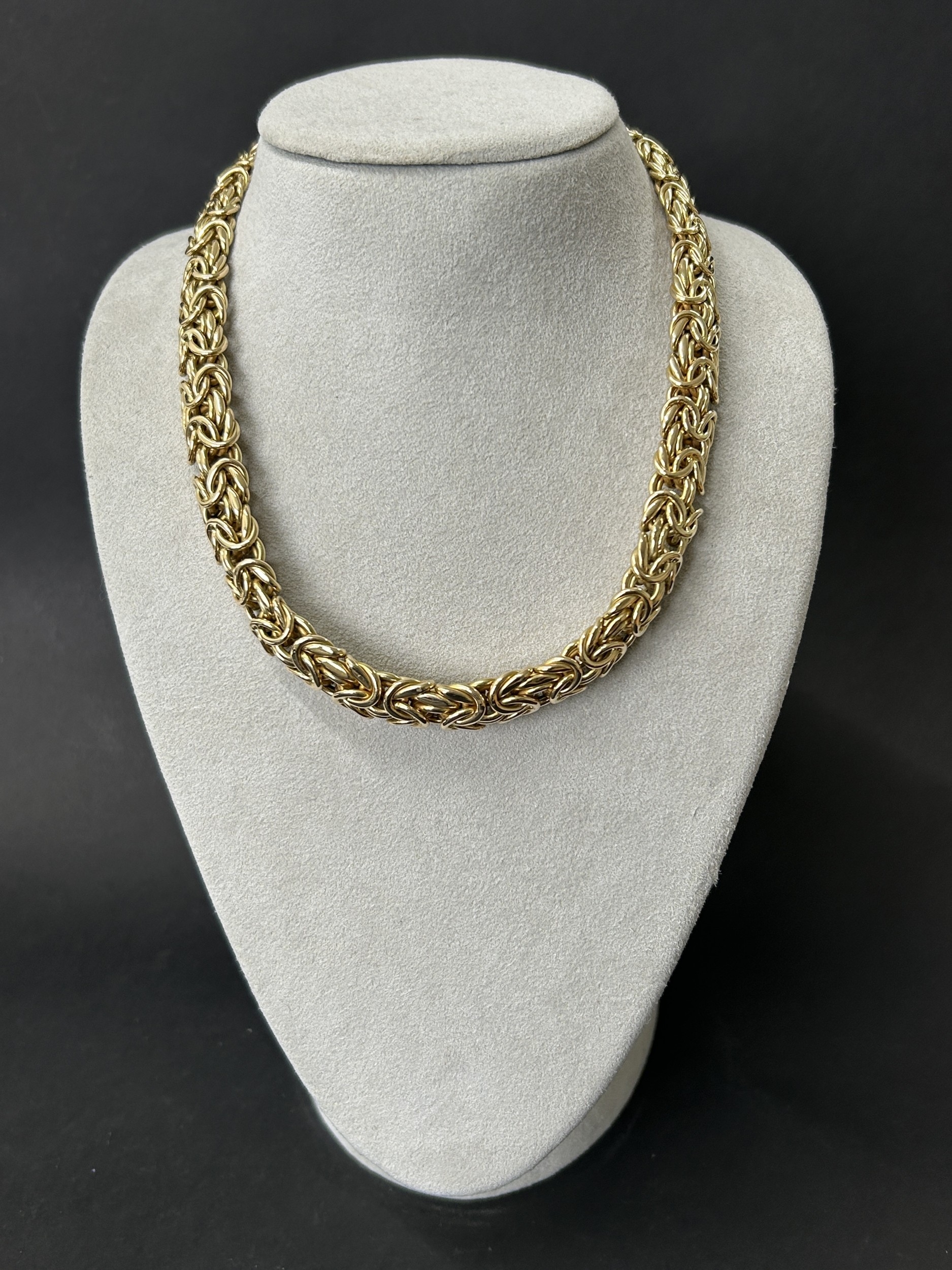 A stunning 585 (14ct gold) byzantine link necklace with applied plaque for 'Cetas 585', fine gold jewellery made in Turkey circa 1970's/80's, approx. 17 1/2" long, weight approx. 75g