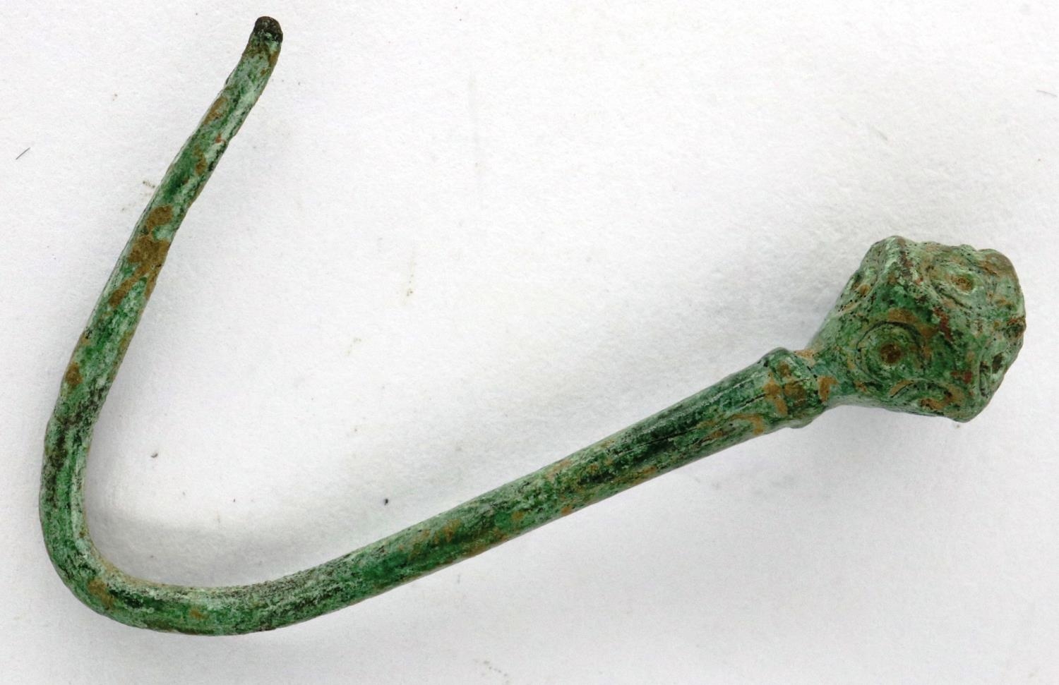 8th century Anglo Saxon orante dress pin, L: 32 mm. P&P Group 0 (£5+VAT for the first lot and £1+VAT for subsequent lots)