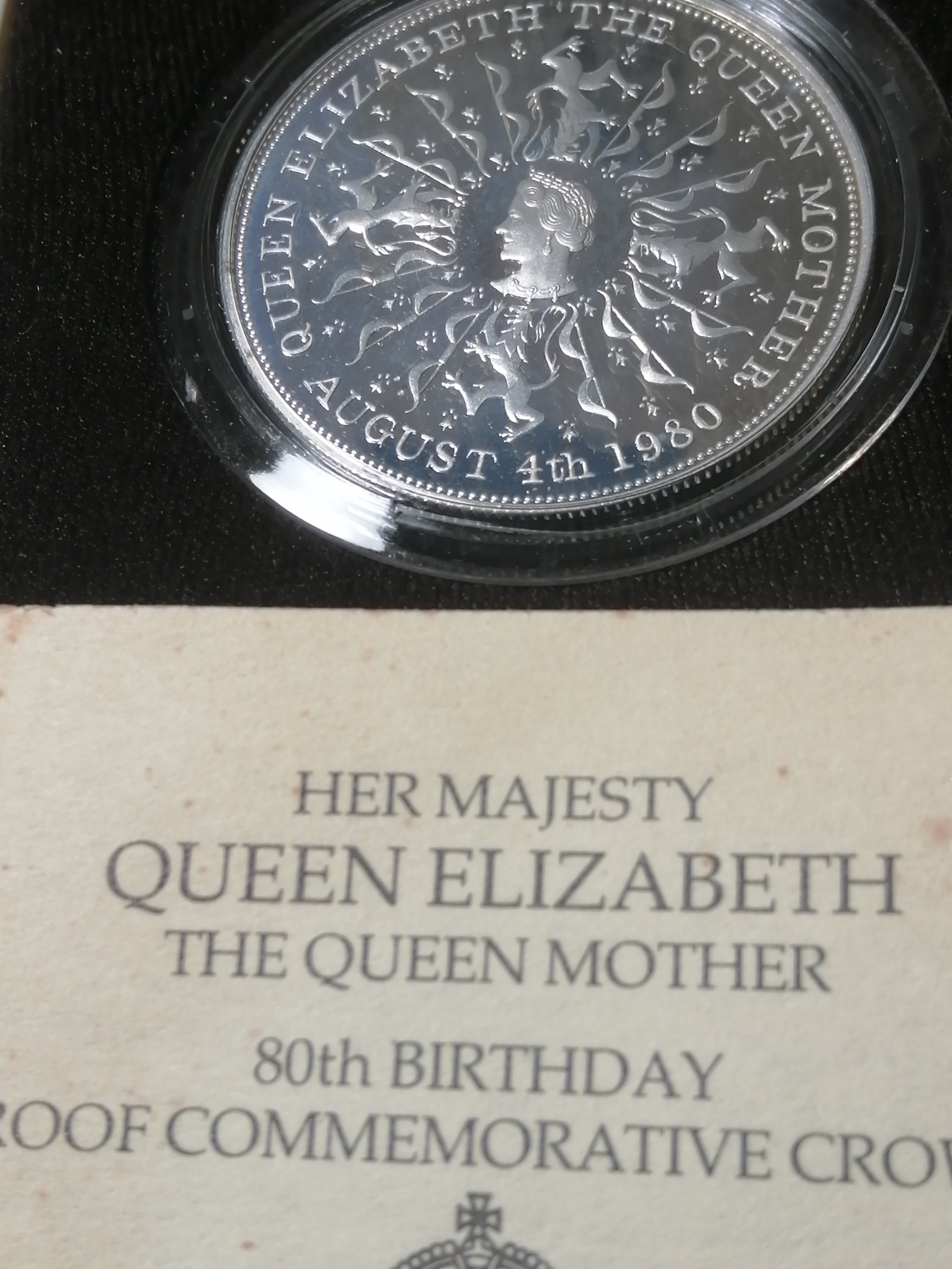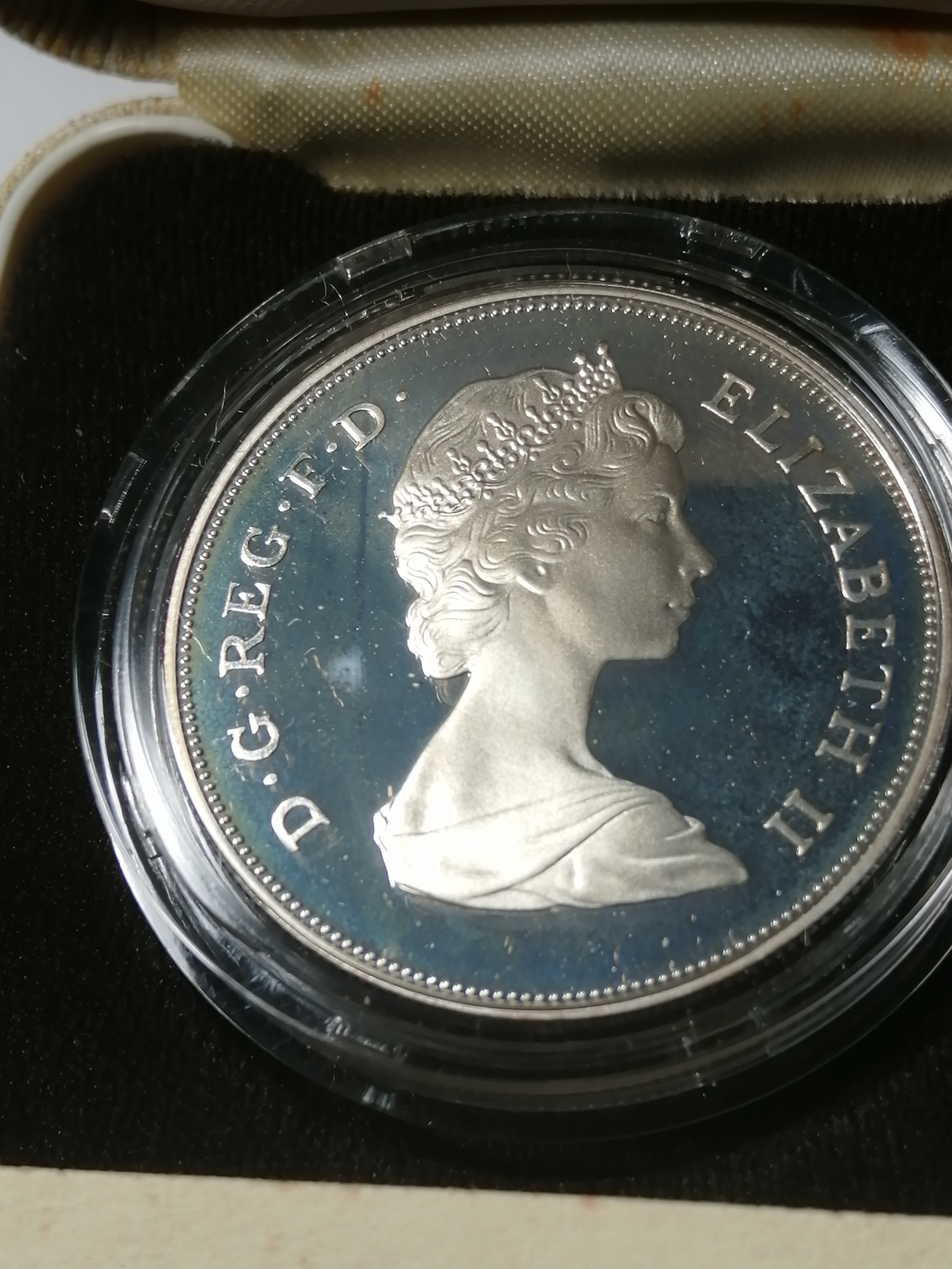 COINS : 1981 silver proof crown in presentation box (Queen mothers 80th birthday)