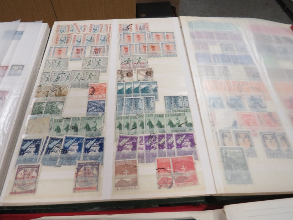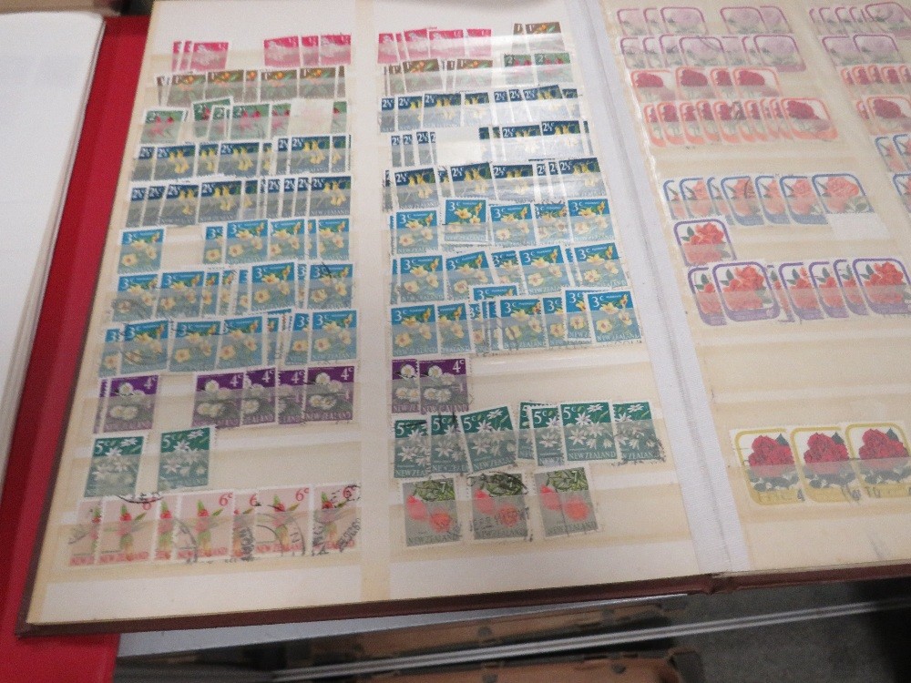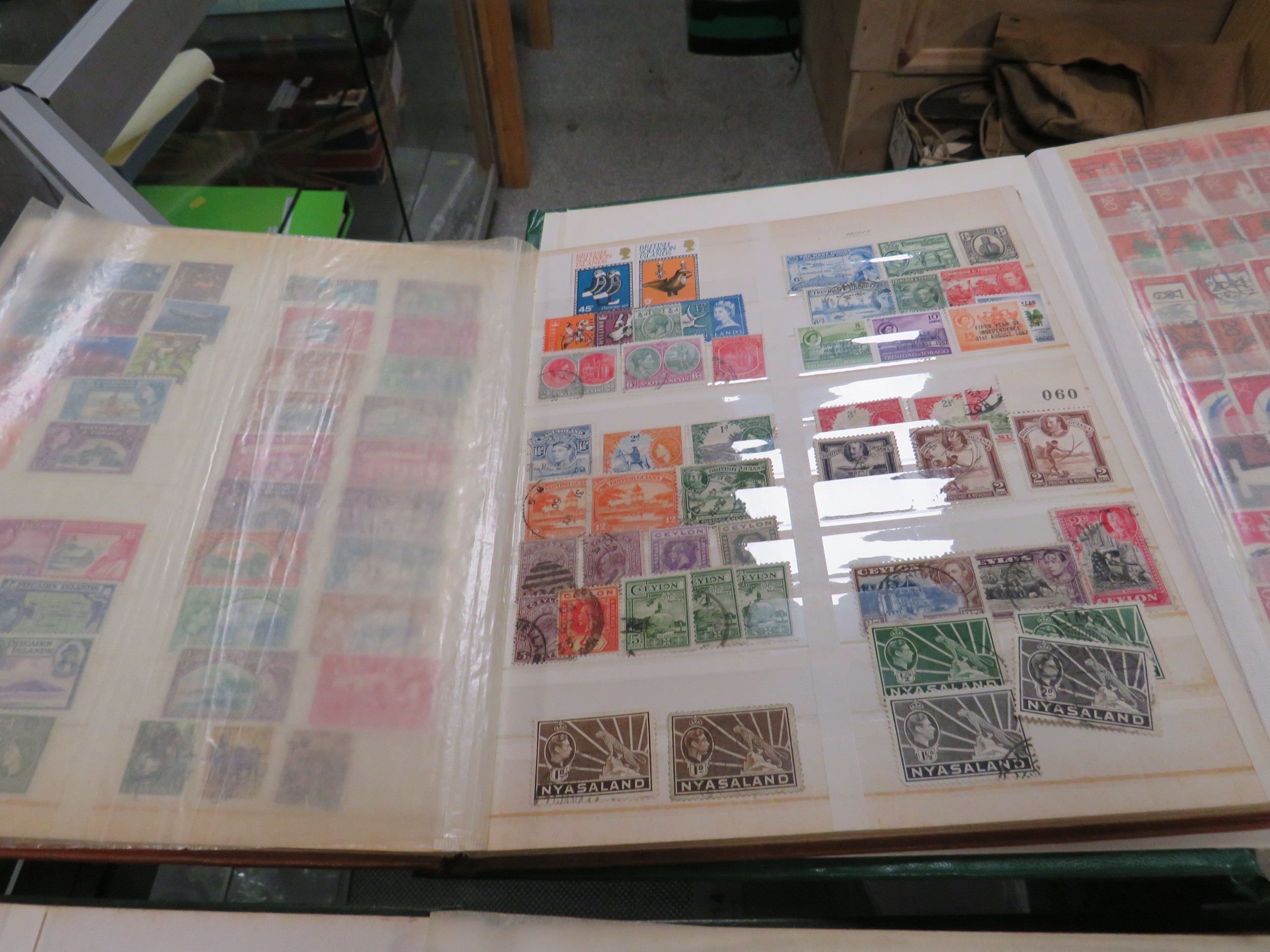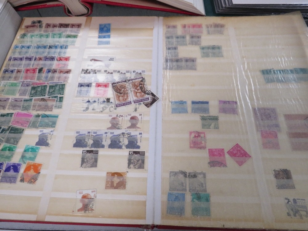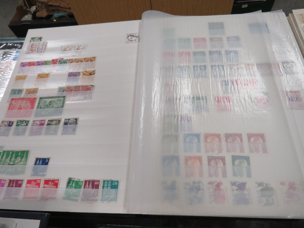 Twenty stamp stock books / albums containing Commonwealth, European, American, South American and world stamps, first day covers, many thousands of stamps, contained in three trays