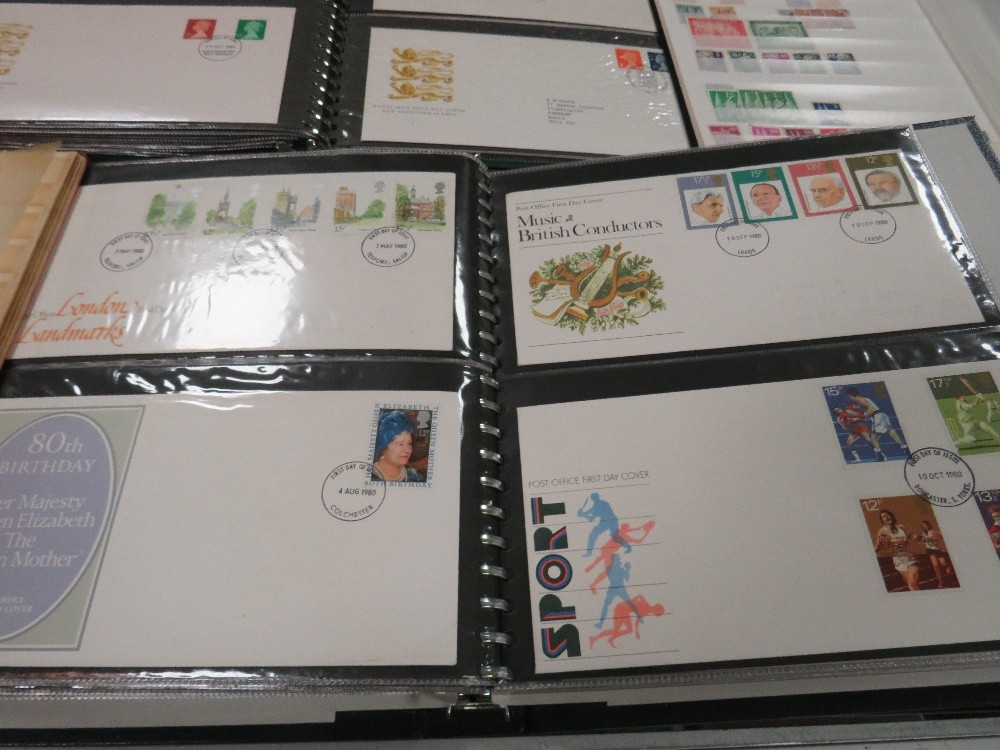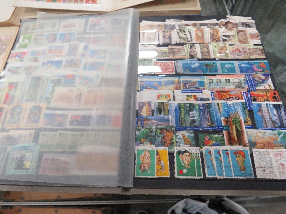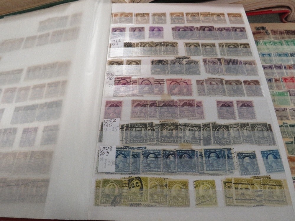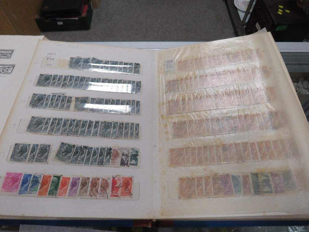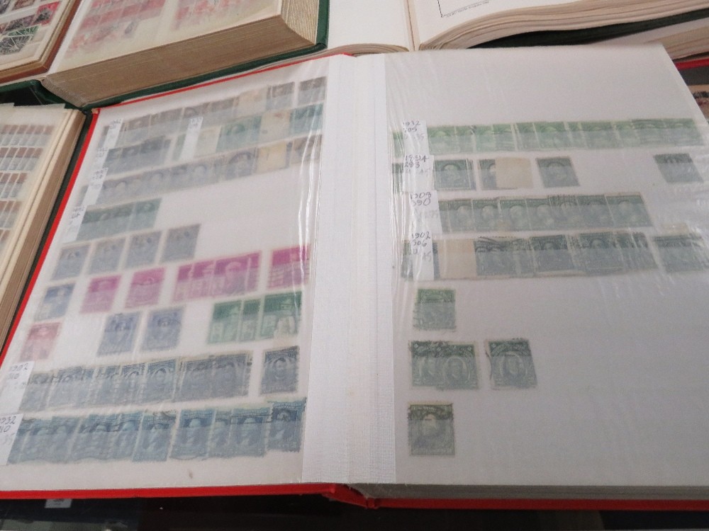 Twenty stamp stock books / albums containing Commonwealth, European, American, South American and world stamps, first day covers, many thousands of stamps, contained in three trays