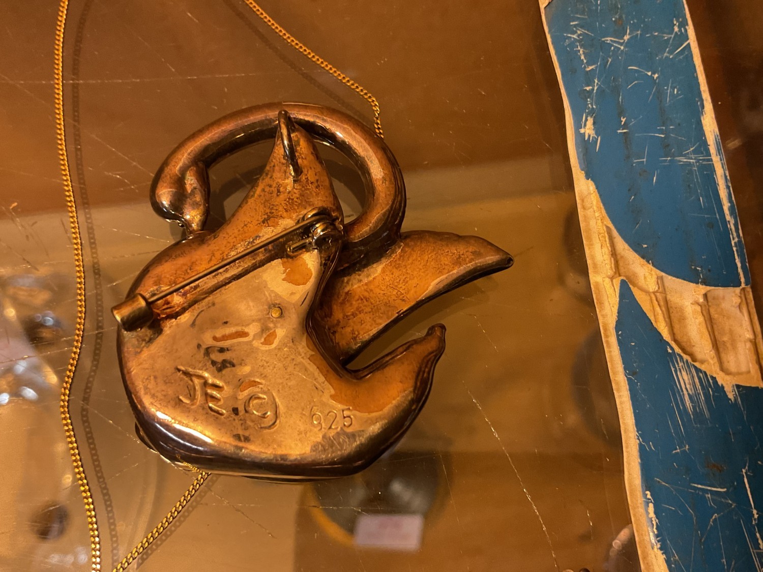 Marked 925 signed swan brooch, 925 cross & necklace & sterling brooch