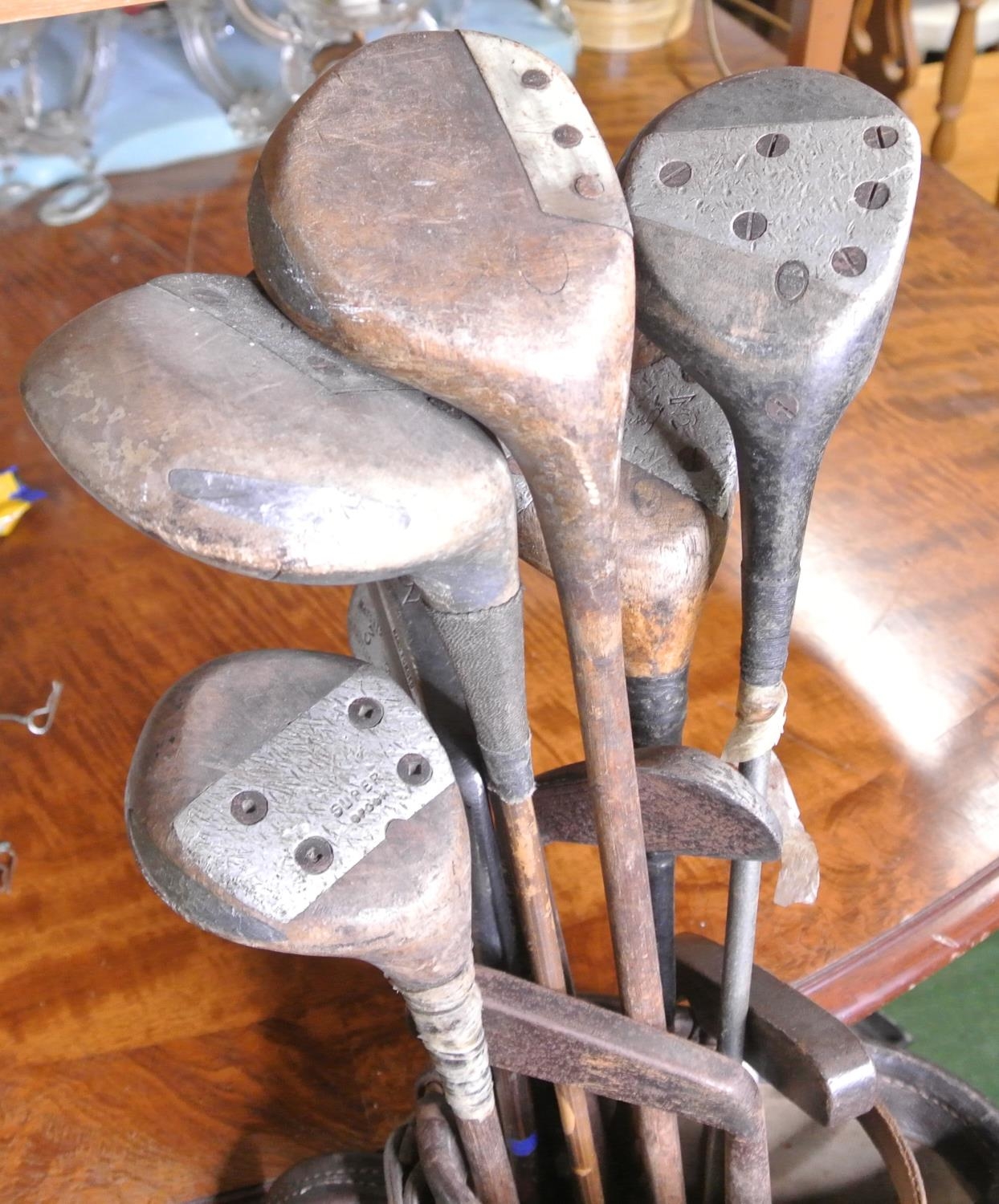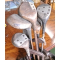A collection of gold clubs to include makers such as 'Super', 'Rustless', and more.