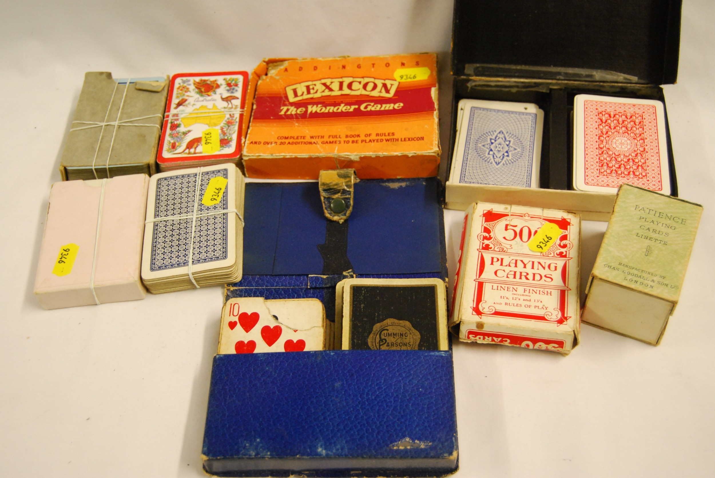 9 PACKS OF PLAYING CARDS & SET OF PATIENCE PLAYING CARDS
