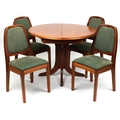 A late 20th century Nathan Furniture teak extending dining table and four matching chairs, the table 75cm H x 144cm L x 100cm D.