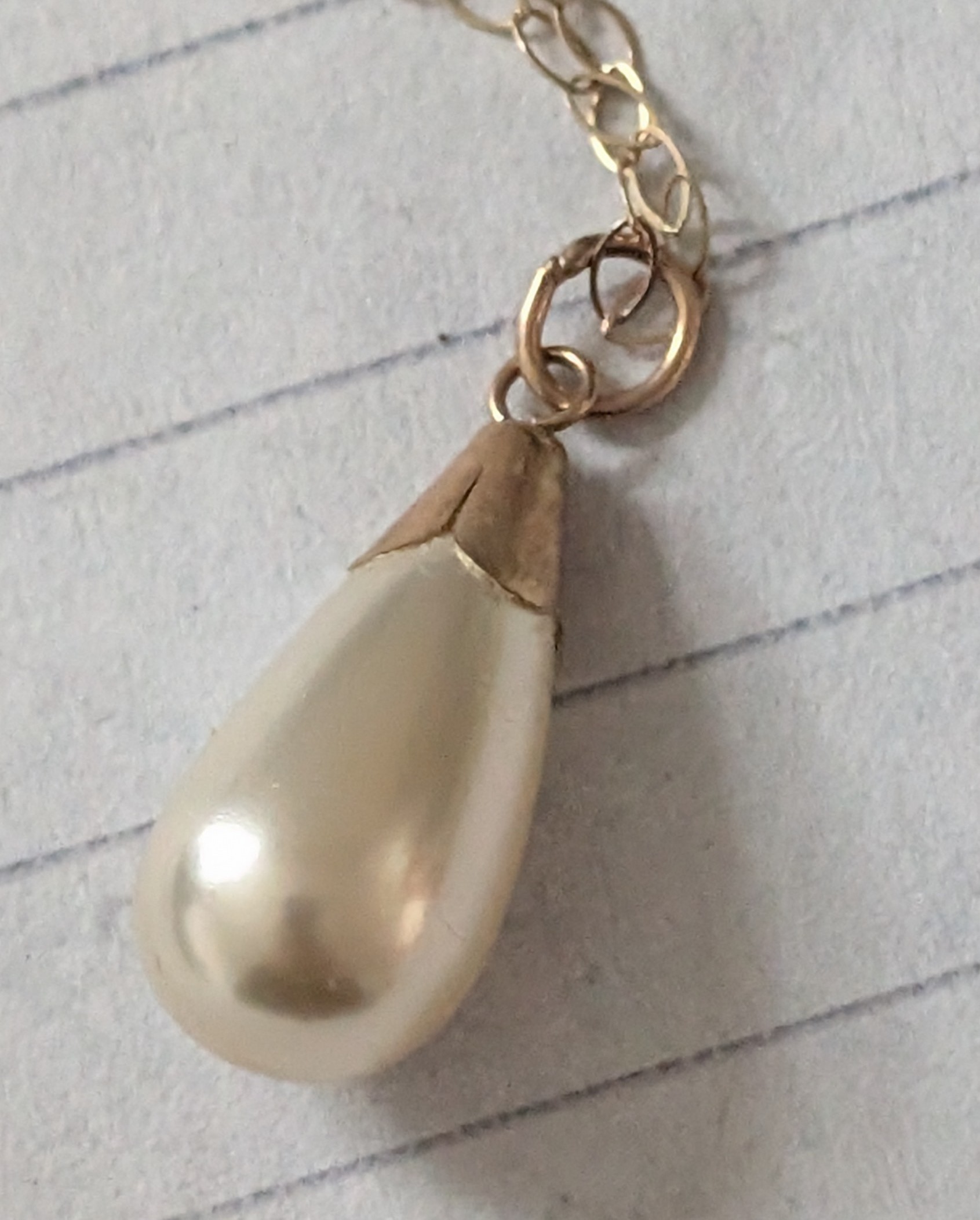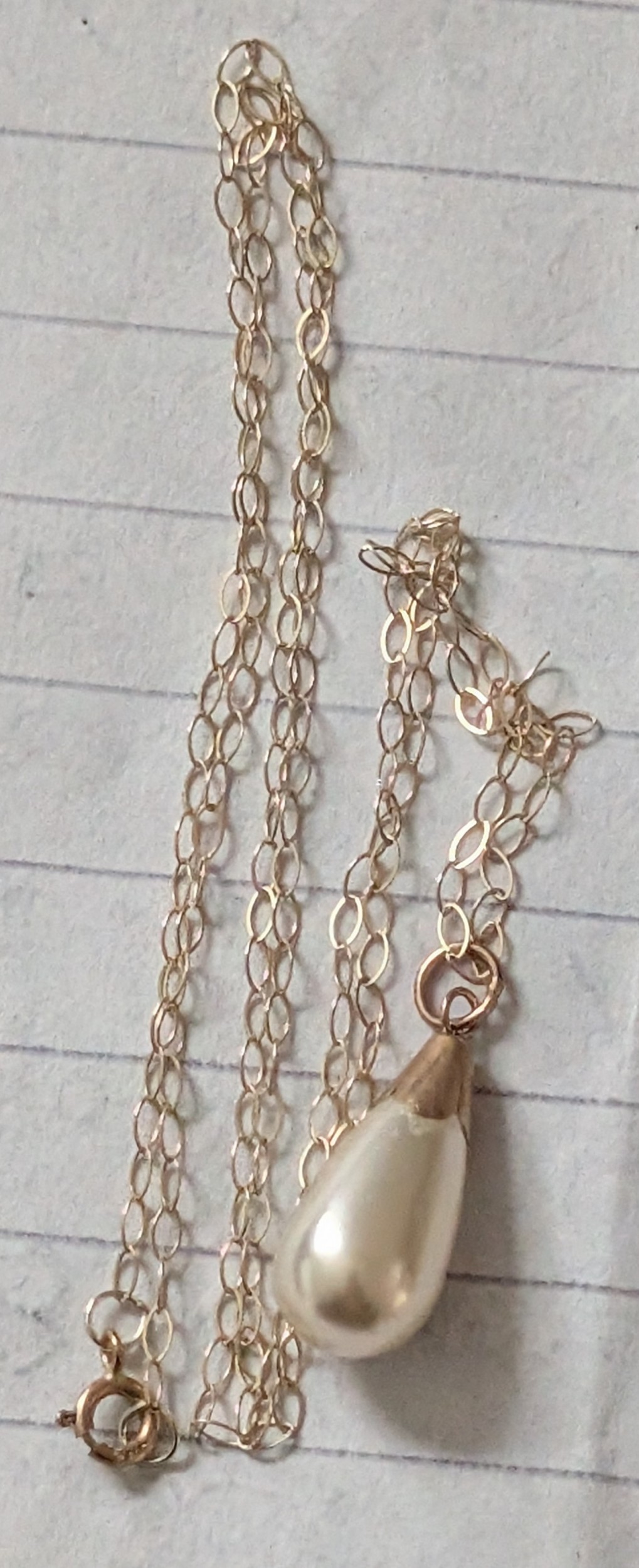 375 9 Carat and Cultured Pearl Tear-Drop 16" Pendant Necklace - 0.6 gm
