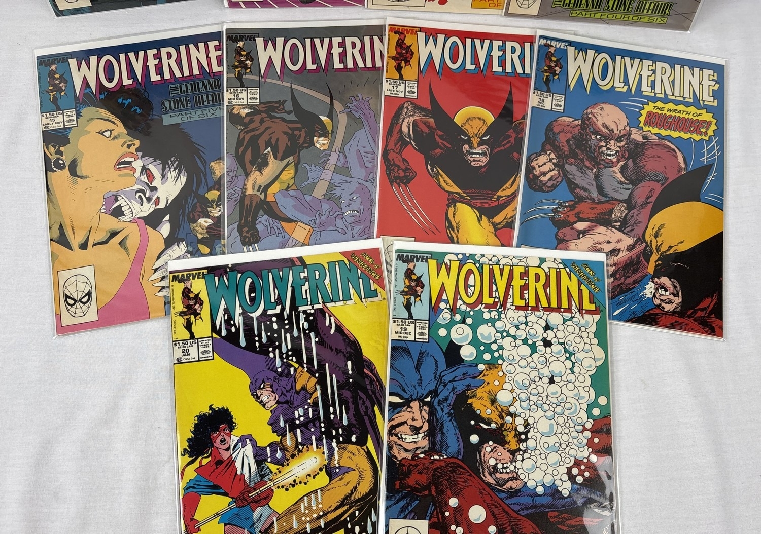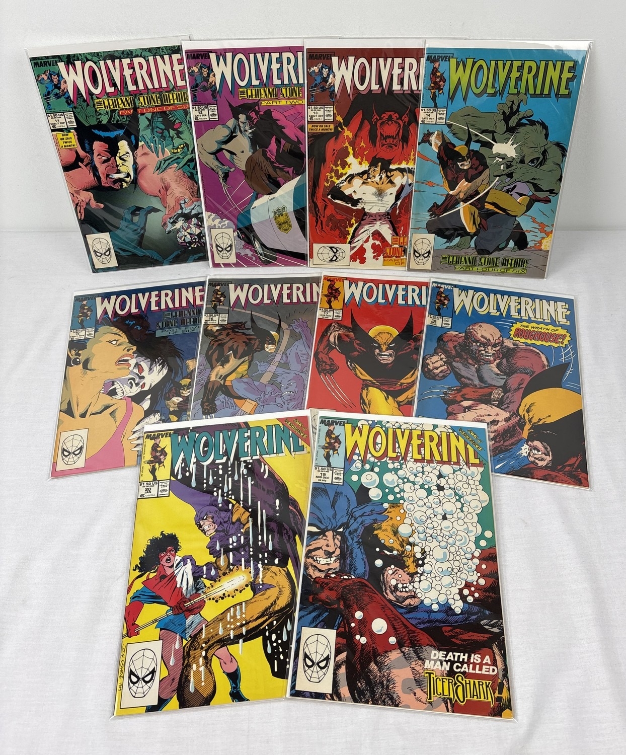 A run of 10 vintage issues of Wolverine comic book from Marvel, from volume 2 (1989-90). Issues 11-20, to include The Gehenna Stone Affair 6 part mini series #11-16, #17 with John Byrne cover art and #19 & 20 Acts of Vengeance.