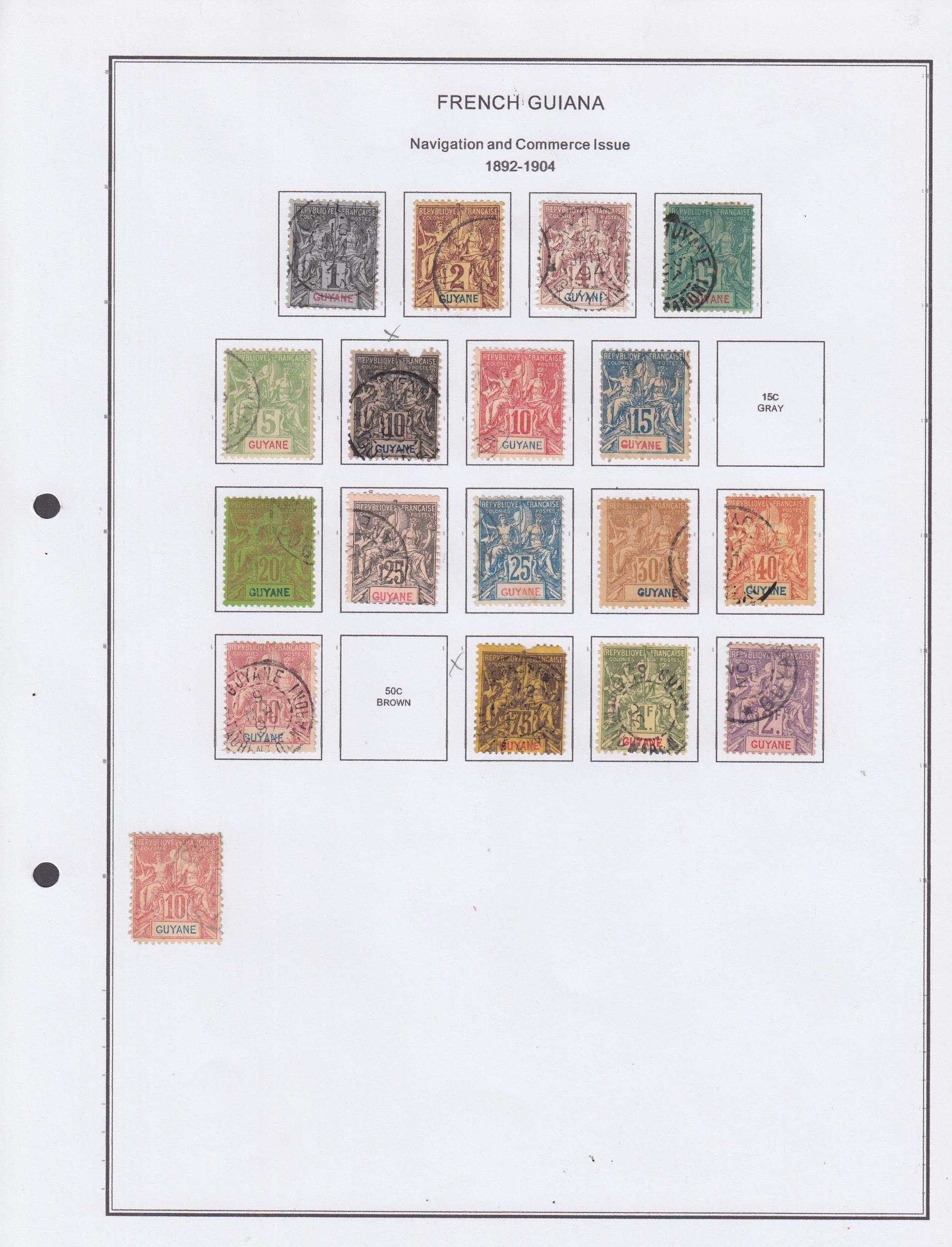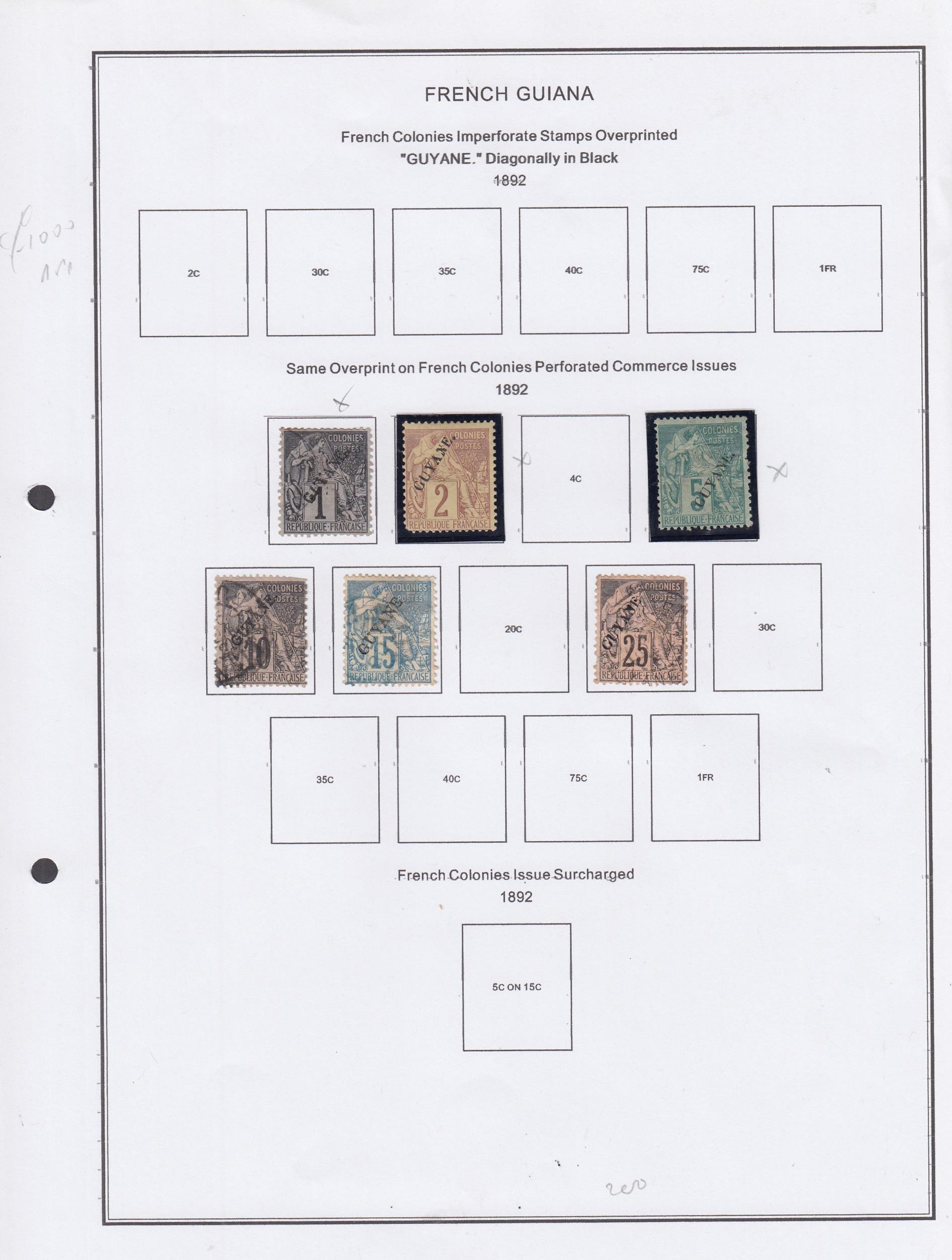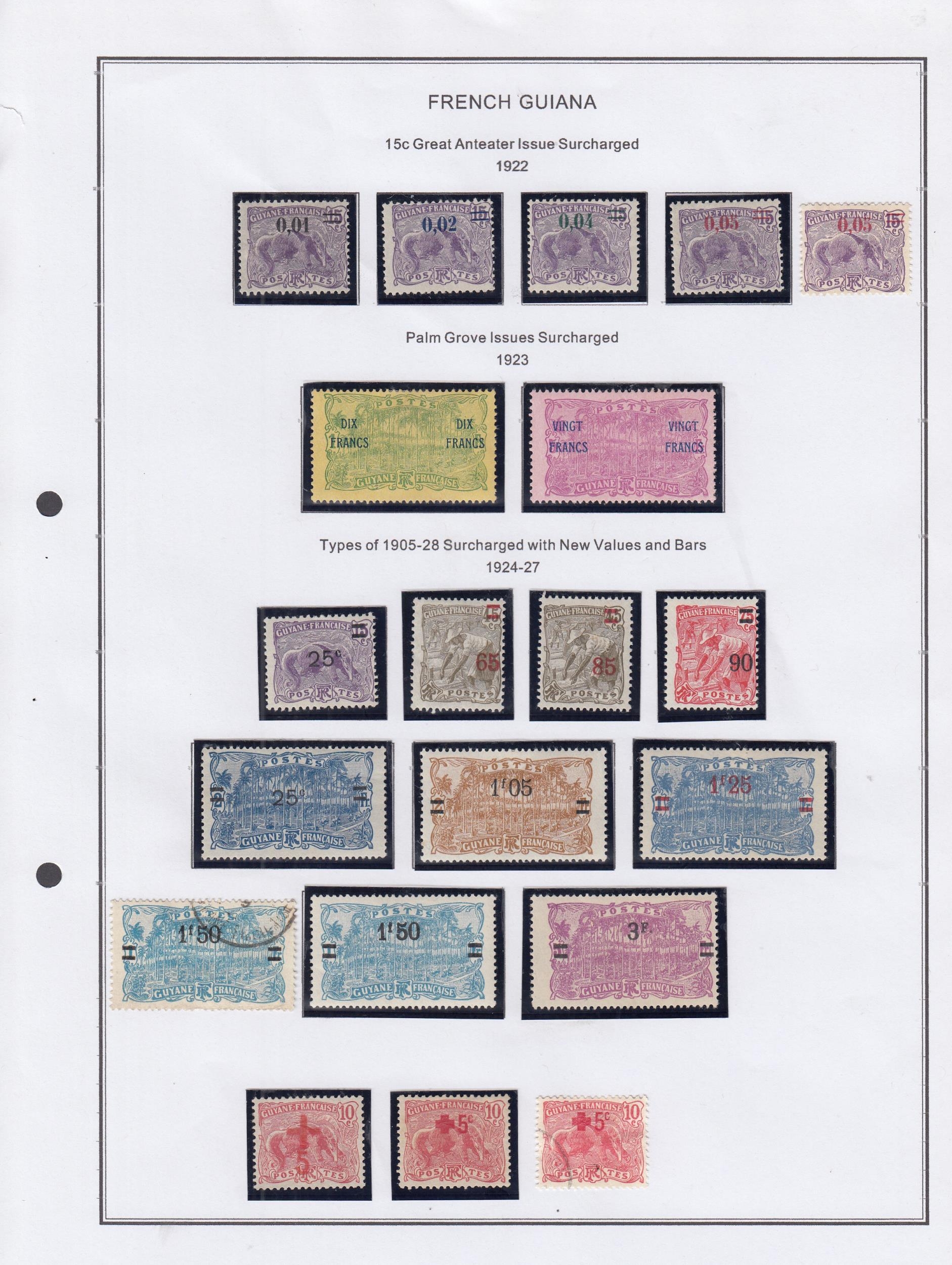 Guiana - 1892/1947 mostly mint collection on printed pages with 1892 10c, 15c, 25c overprinted, 1892/1904 vals to 75c M & 2f U, 1904/7 vals to 5f, various surcharges, 1929 vals to 20f, various commems, Vichy issues, Airs, Postage Dues, mostly good/fine, stc £1000 approx. (qty)